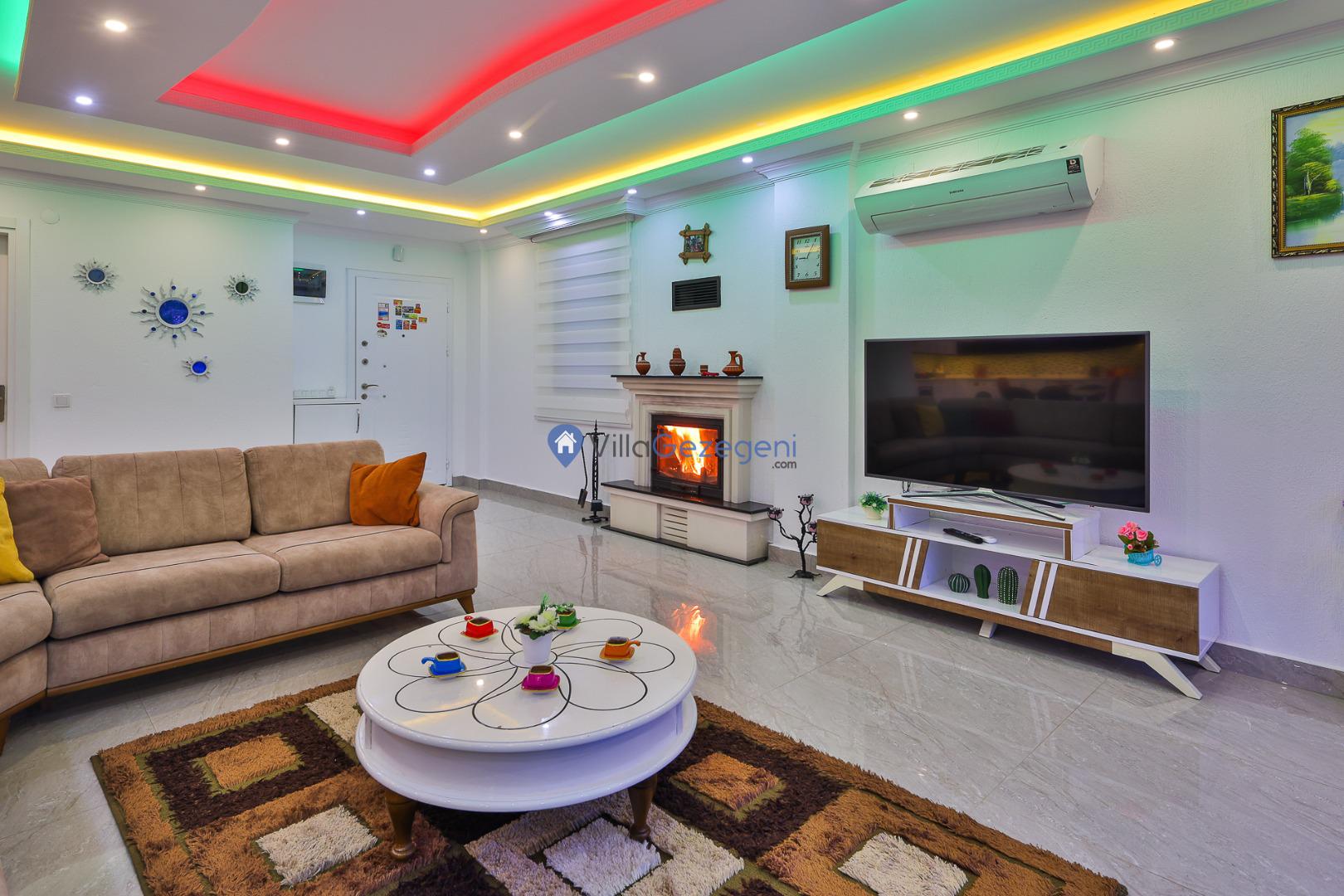 Salon: Televizyon, Uydu alıcı, Vcd oynatıcı, Klima, Oturma gurubu ve sehbası