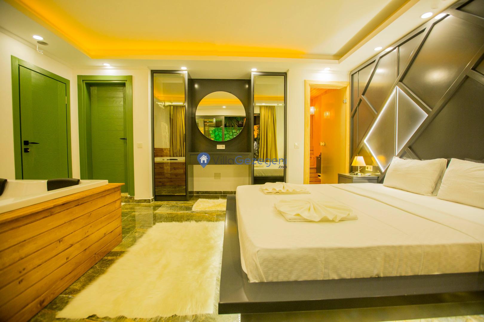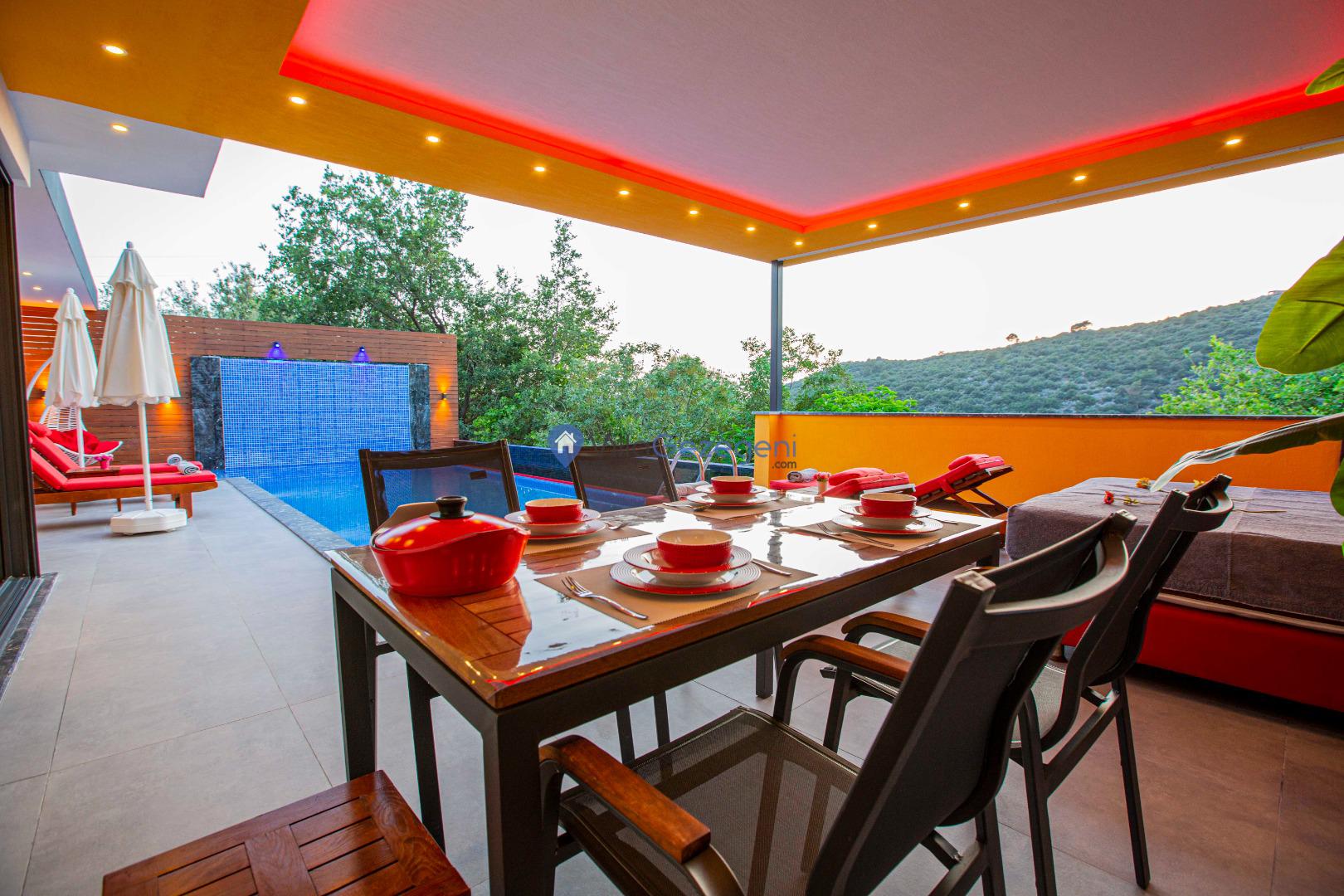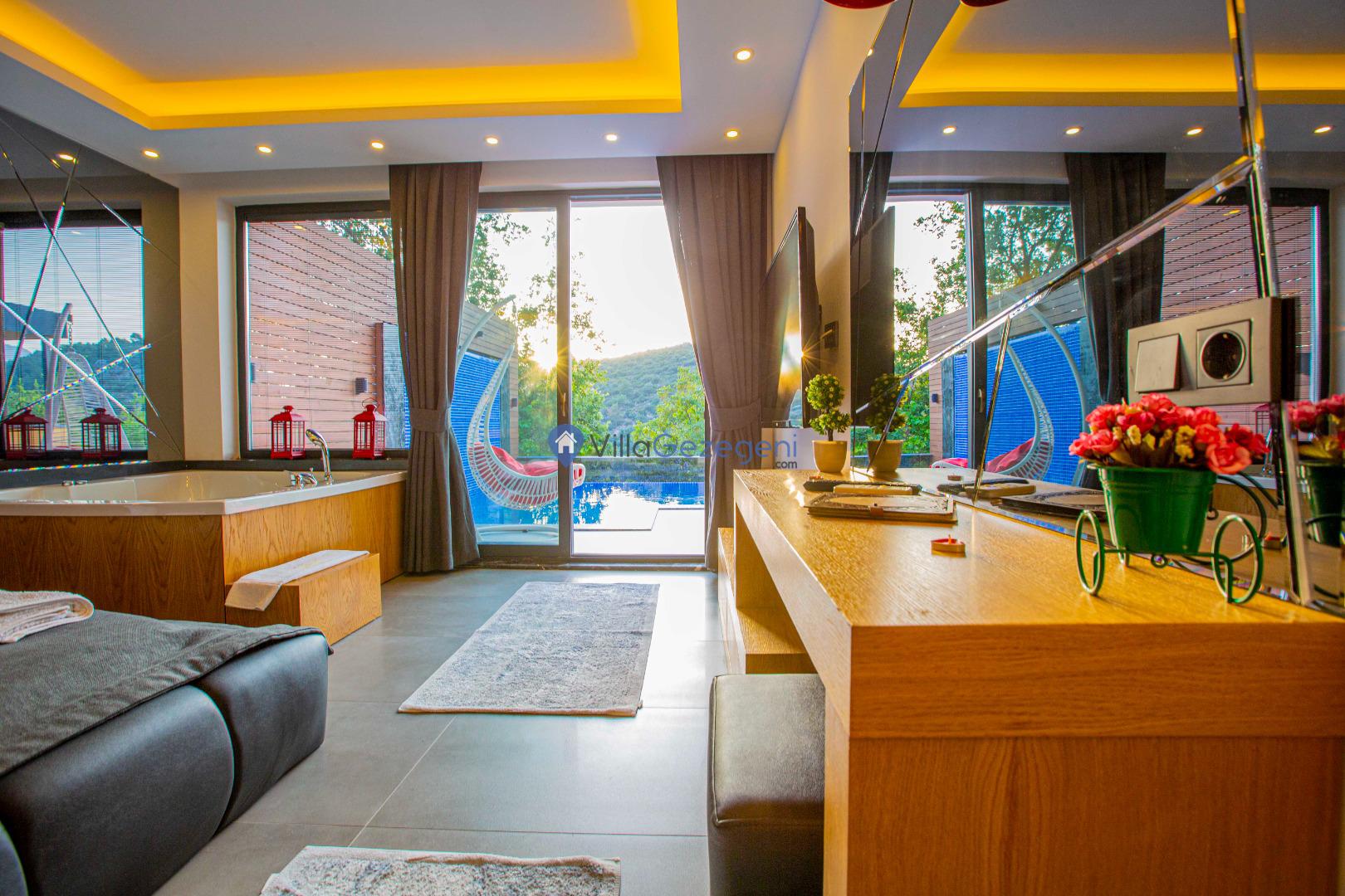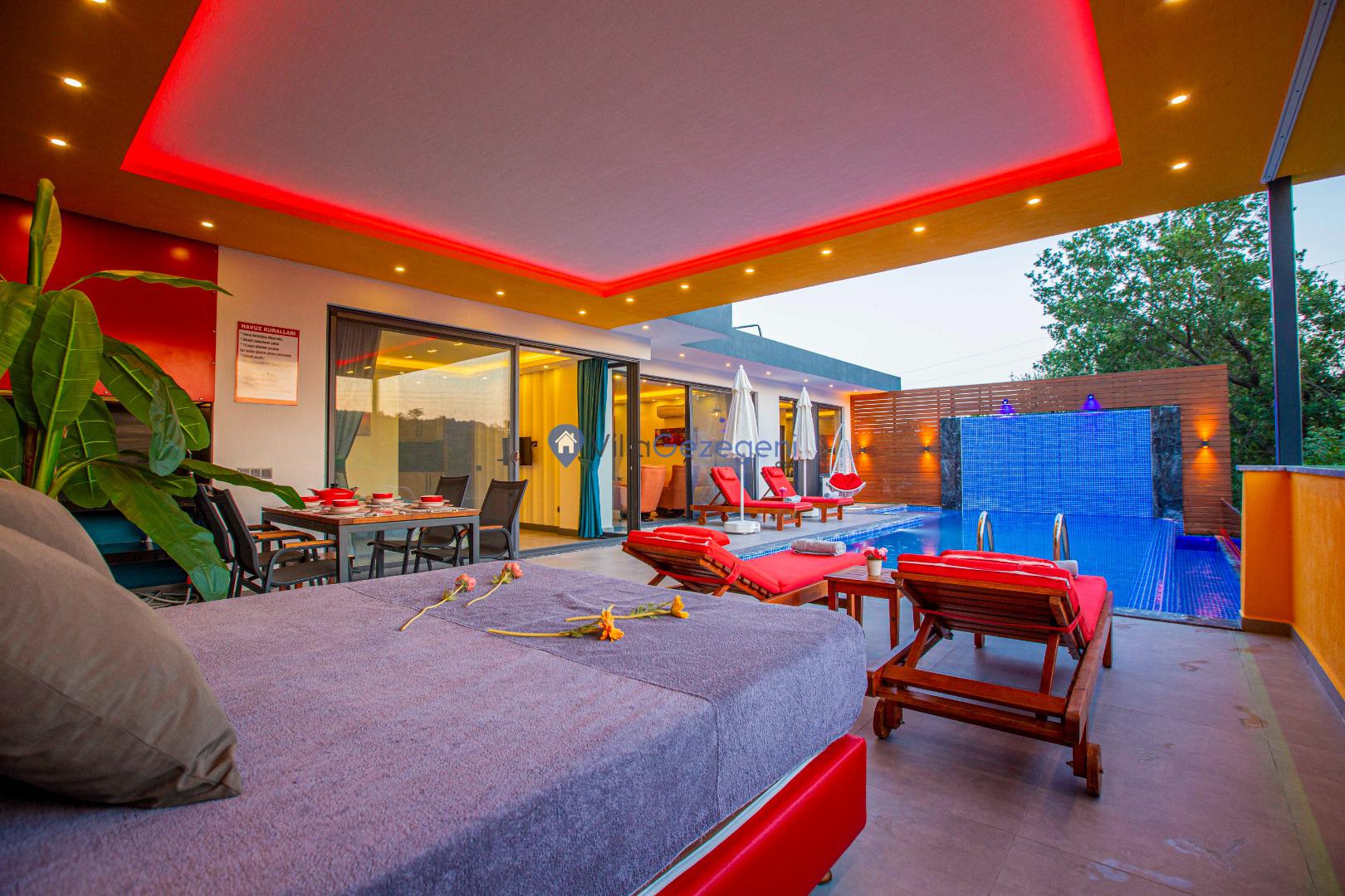 Kimsenin sizleri rahatsız edemeyeceği ve dışarıdan villa havuzunun etrafı görünmeyecek şekilde muhafazakar balayı villası kiralayabilirsiniz. Yüksek koruyucu duvar ve kapanabilen tenteler ile hem güneşten hem de yabancı gözlerden korunun.