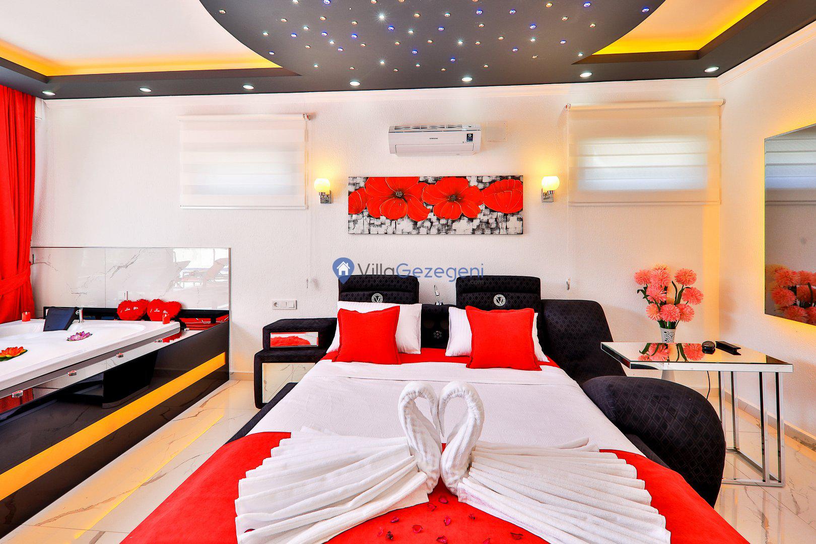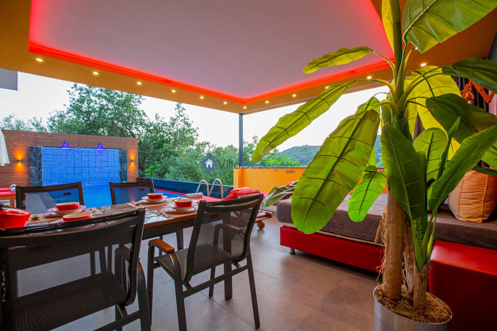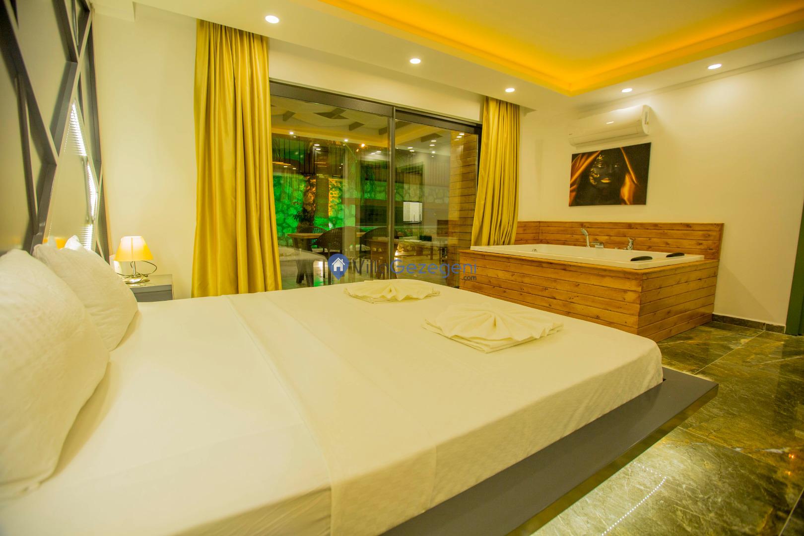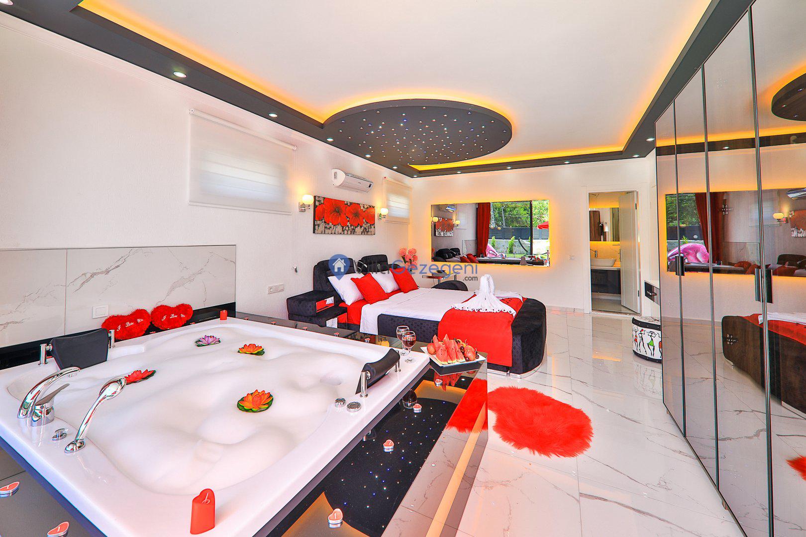 Kimsenin sizleri rahatsız edemeyeceği ve dışarıdan villa havuzunun etrafı görünmeyecek şekilde muhafazakar balayı villası kiralayabilirsiniz. Yüksek koruyucu duvar ve kapanabilen tenteler ile hem güneşten hem de yabancı gözlerden korunun.