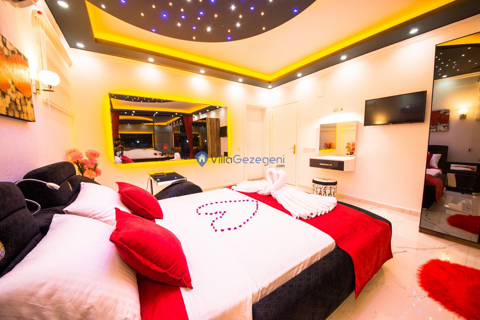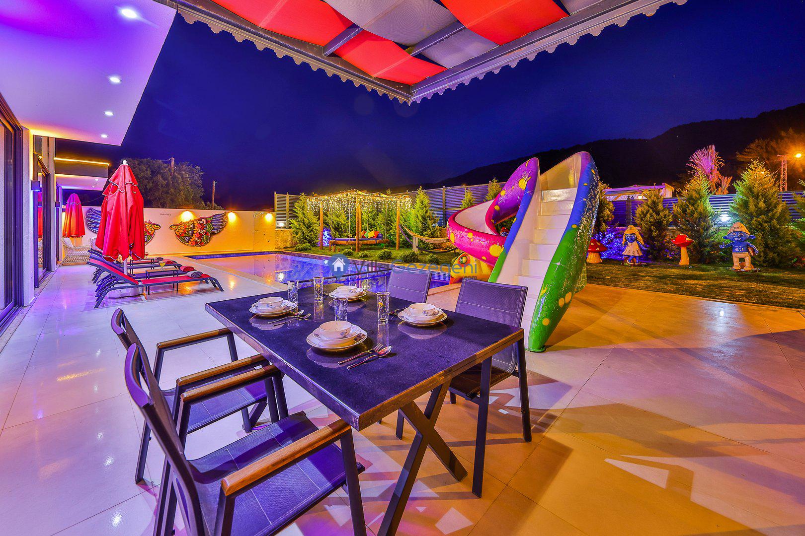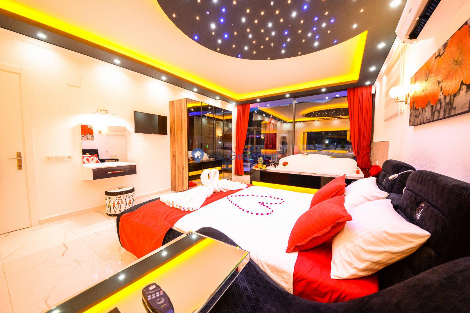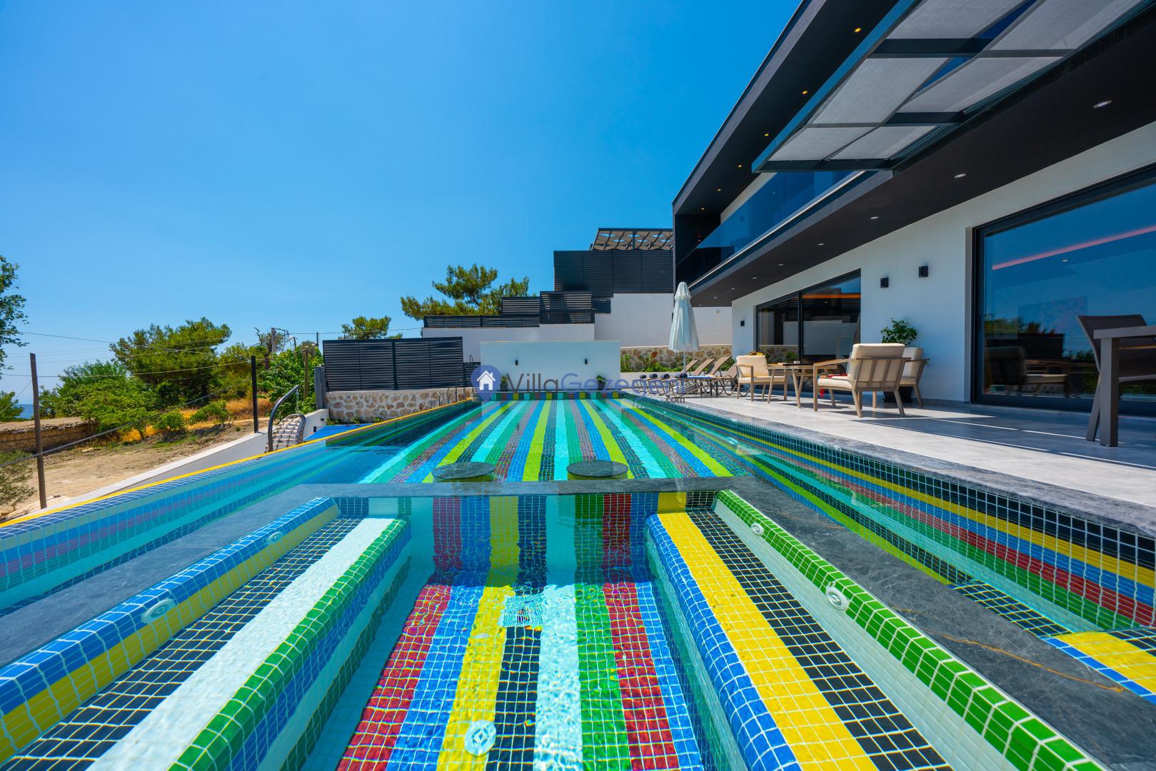 Kimsenin sizleri rahatsız edemeyeceği ve dışarıdan villa havuzunun etrafı görünmeyecek şekilde muhafazakar balayı villası kiralayabilirsiniz. Yüksek koruyucu duvar ve kapanabilen tenteler ile hem güneşten hem de yabancı gözlerden korunun.