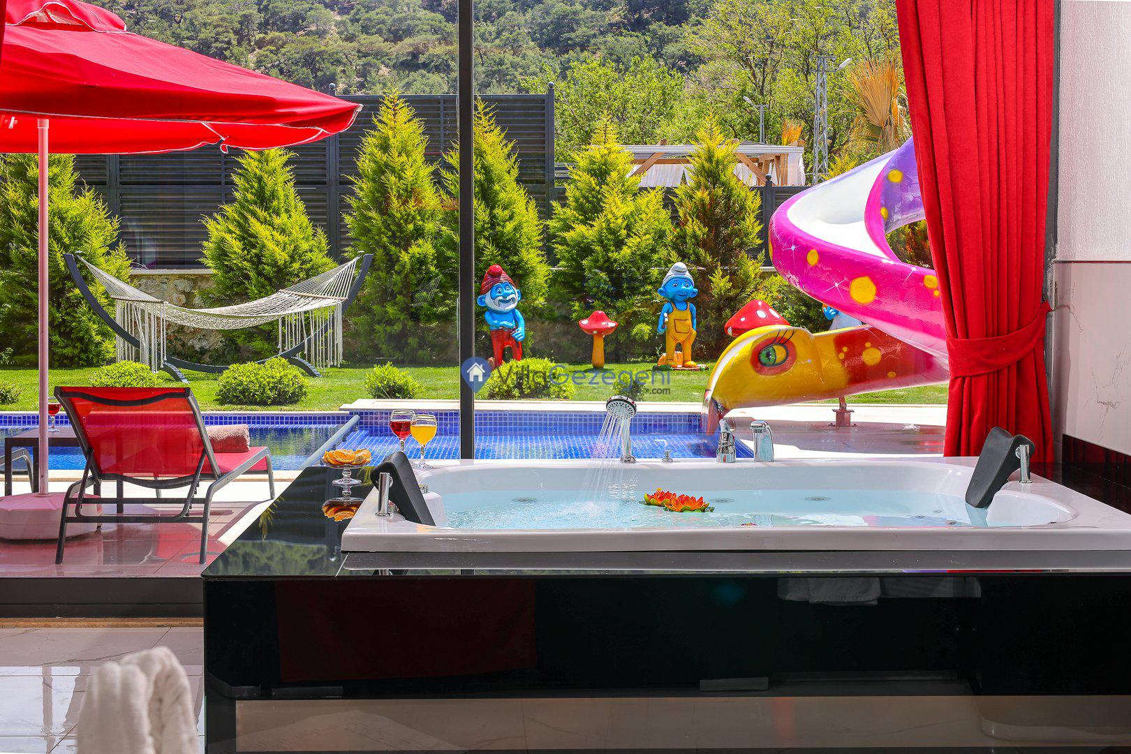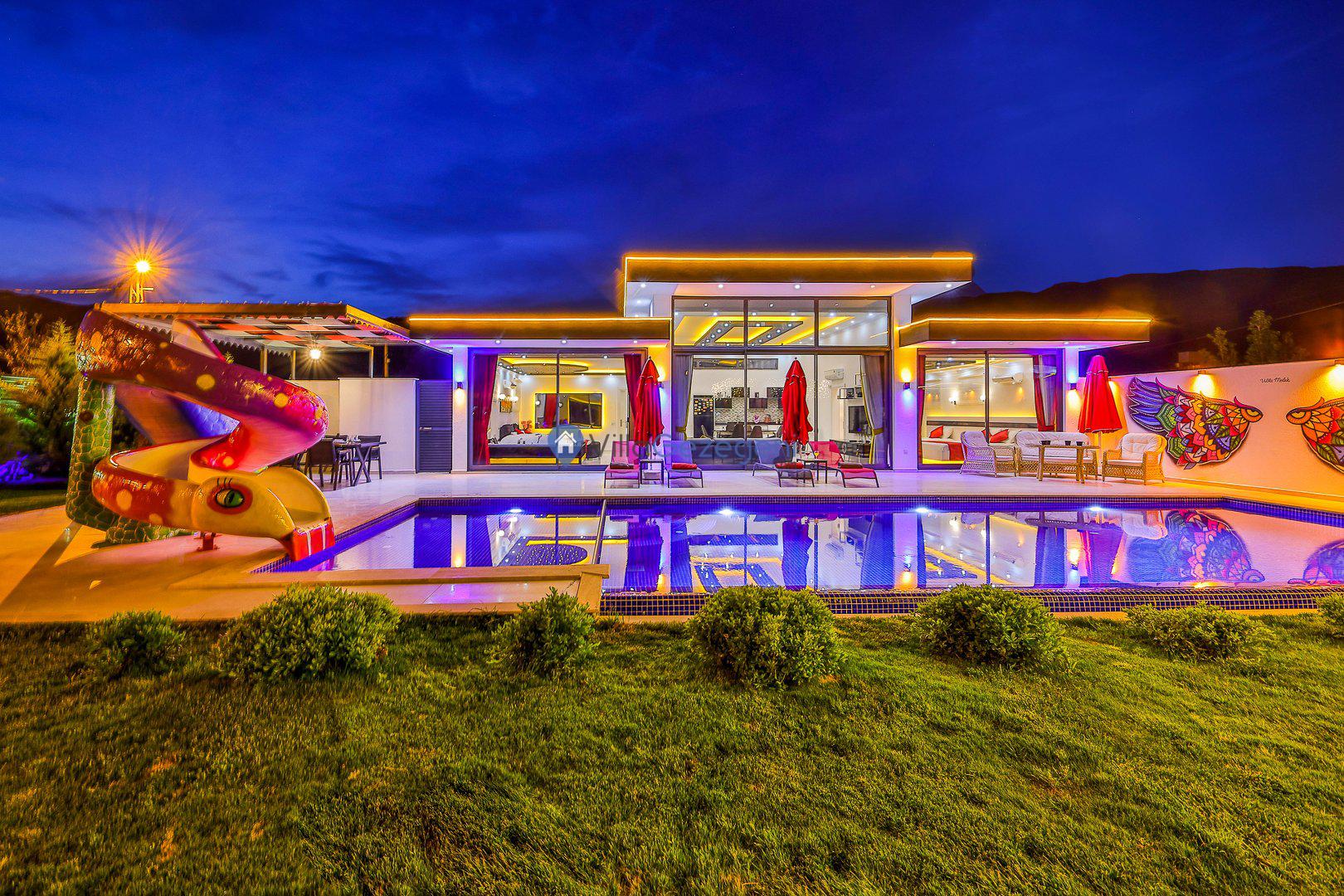 2-7 Ağustos tarihinde bu muhteşem villada tatil yaptım.Villa gezegeni çalışanlarına öncelikle Onur Bey''e yardımından, ilgisinden, güleryüzlü duruşundan dolayı çok ama çok teşekkür ediyorum. Ayrıca villa görevlisi Mehmet Bey''e de ilgisi ve alakasından dolayı çok teşekkür ediyorum. Villaya gelince herşey en ince detayına kadar düşünülmüş aşırı temiz pırıl pırıldı.Marketlere yakınlığı havasının olağanüstü güzel olması, villanın dizaynı, o manzarası havuzun mükemmel olması (fotolarda havuz küçük gibi düşünenler aldanıyor kocaman bir havuzu var) Ayrıca villa fotoğraflarda gördüğünüzden çok daha güzel. Tekrardan emeği geçen tüm personele sonsuz teşekkürler. Hem villa ekibine ve hem o muhteşem villaya 5 yıldız değil 5000 yıldız veriyorum.
