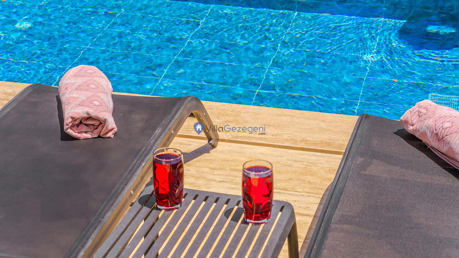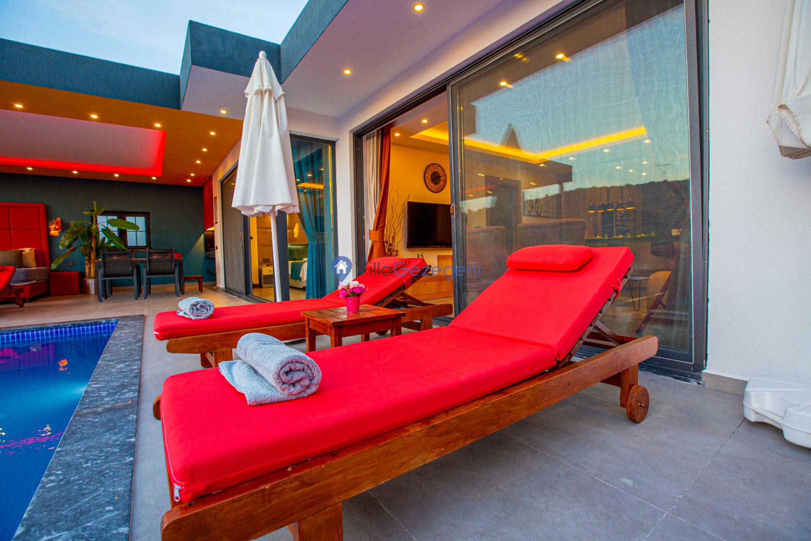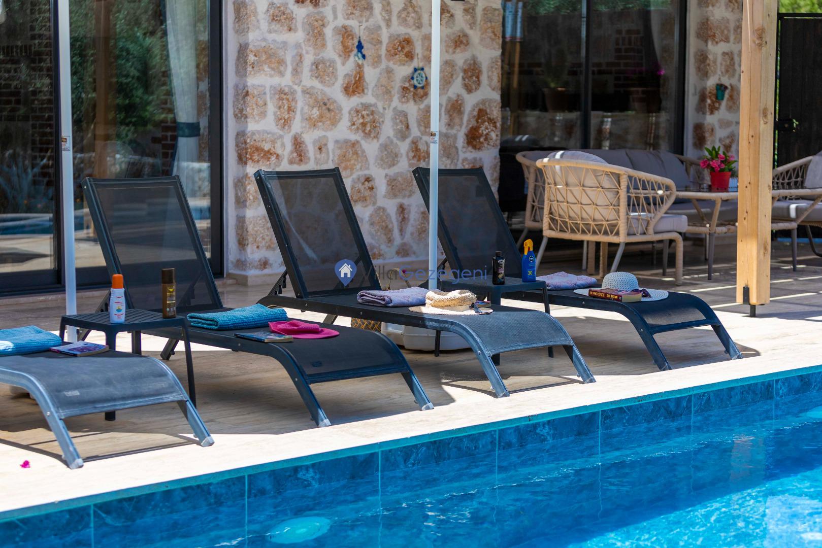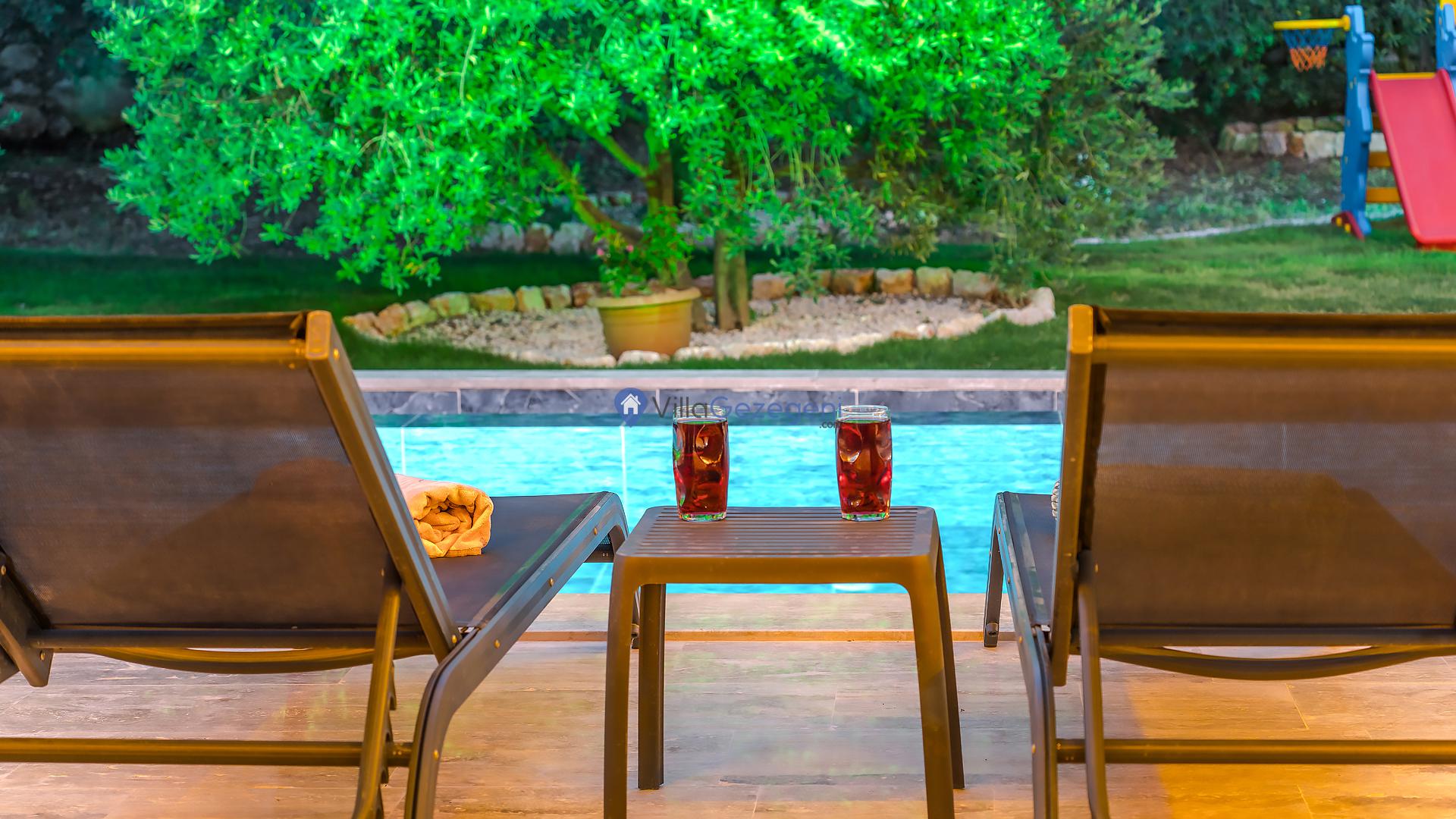 Villalarımız sizlere harika bir tatilin kapılarını açmaktadır. İstediğiniz zaman güneşin kavurucu sıcağında kendinizi buz gibi havuza bırakabilirsiniz. Ayrıca istediğiniz zaman şezlonga uzanarak güneşlenebilirsiniz.