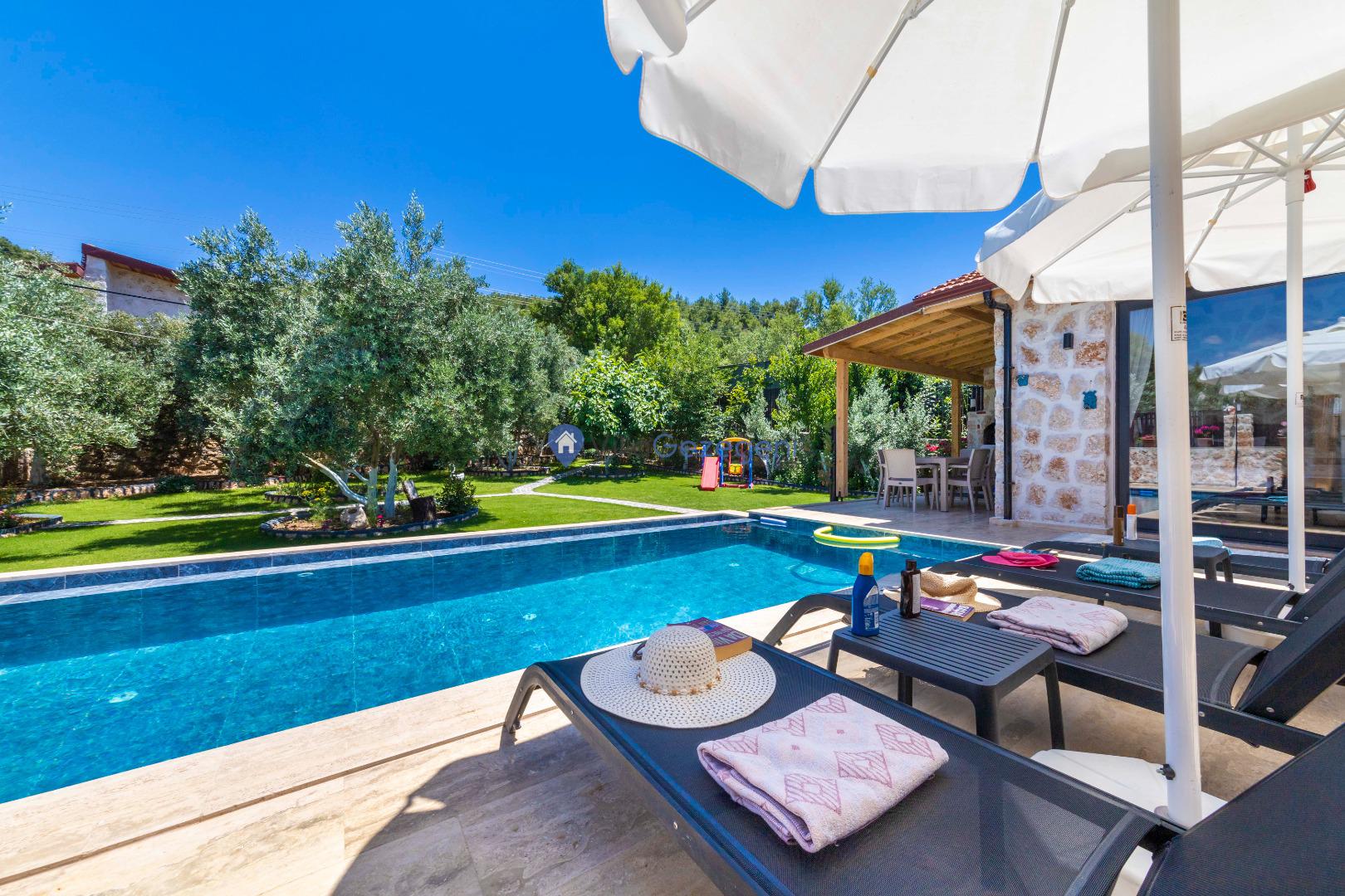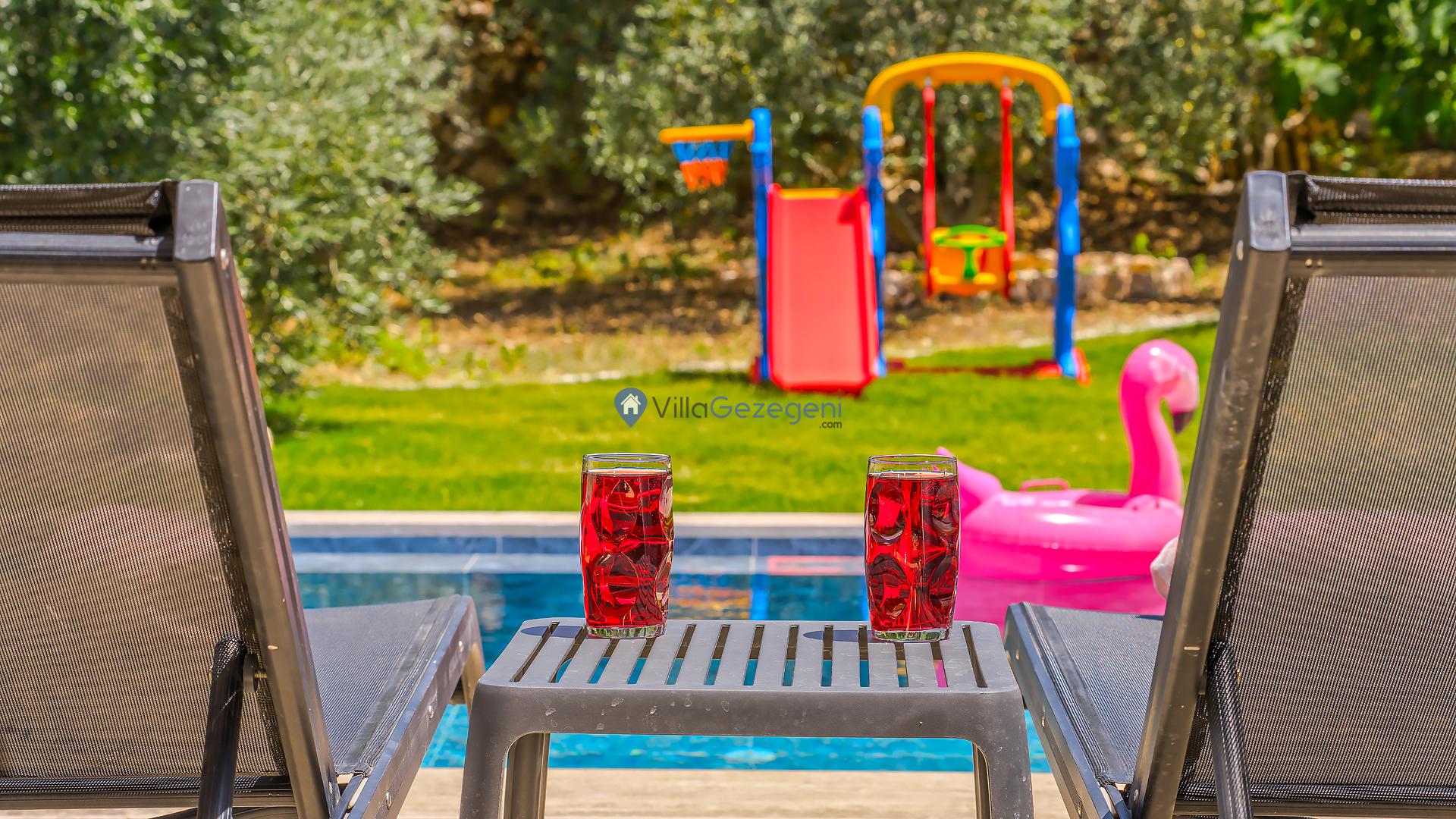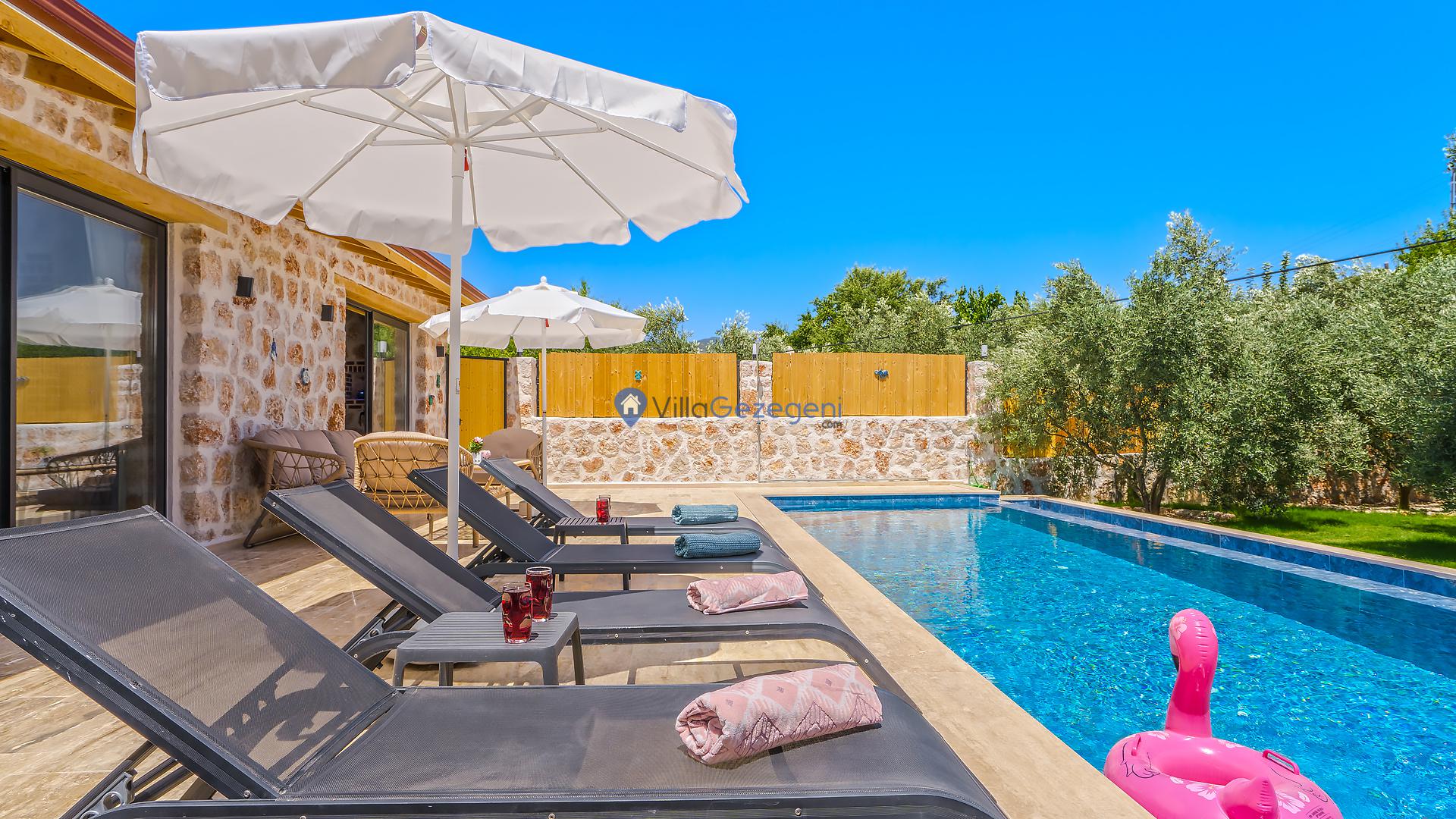 Villalarımız sizlere harika bir tatilin kapılarını açmaktadır. İstediğiniz zaman güneşin kavurucu sıcağında kendinizi buz gibi havuza bırakabilirsiniz. Ayrıca istediğiniz zaman şezlonga uzanarak güneşlenebilirsiniz.