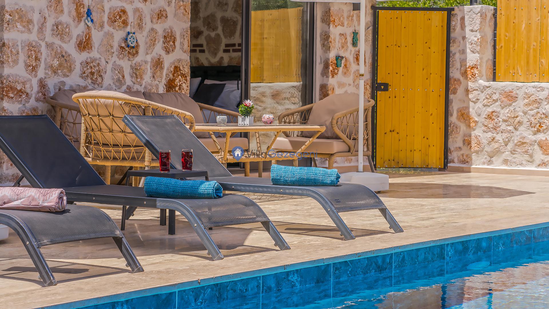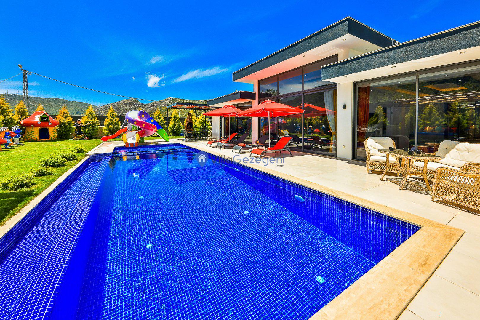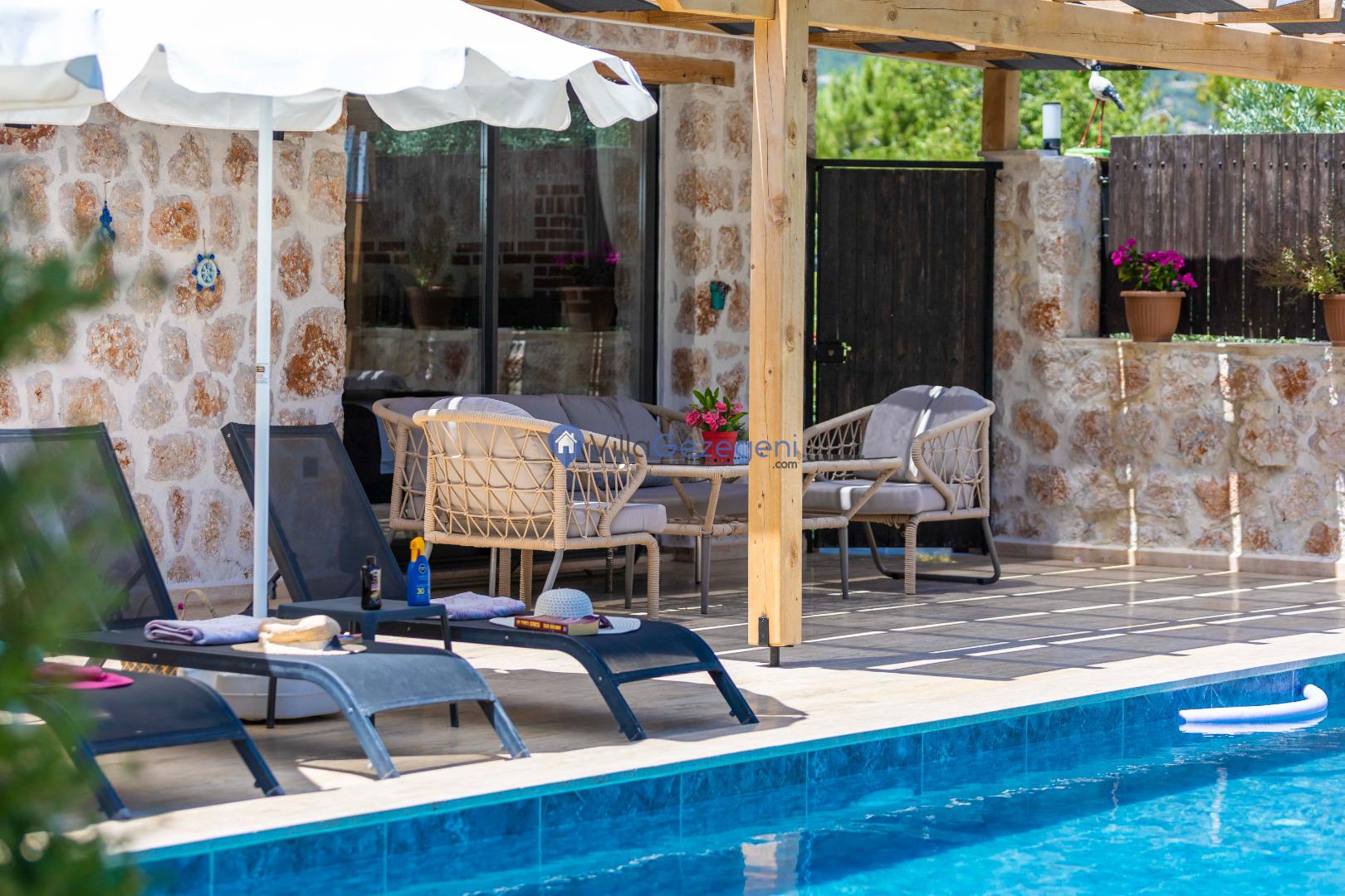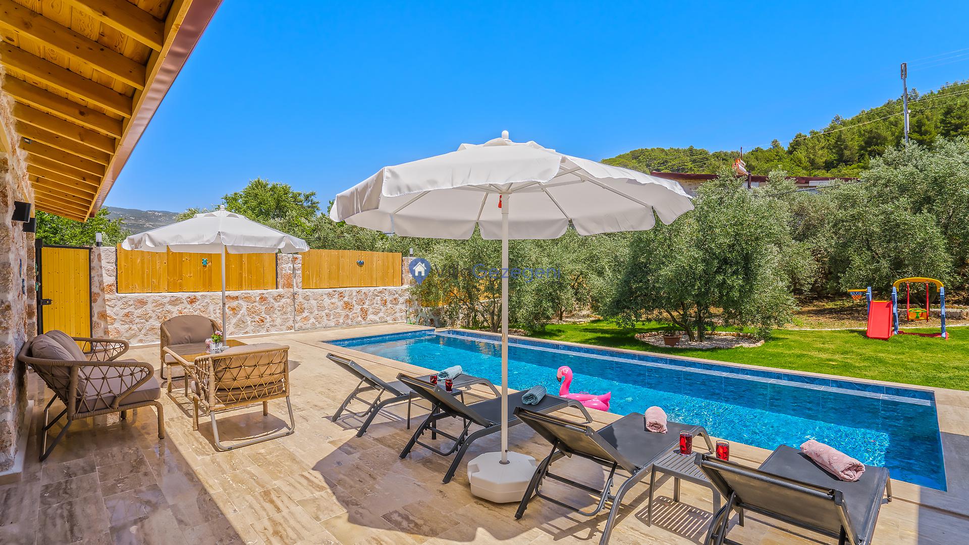 Villalarımız sizlere harika bir tatilin kapılarını açmaktadır. İstediğiniz zaman güneşin kavurucu sıcağında kendinizi buz gibi havuza bırakabilirsiniz. Ayrıca istediğiniz zaman şezlonga uzanarak güneşlenebilirsiniz.