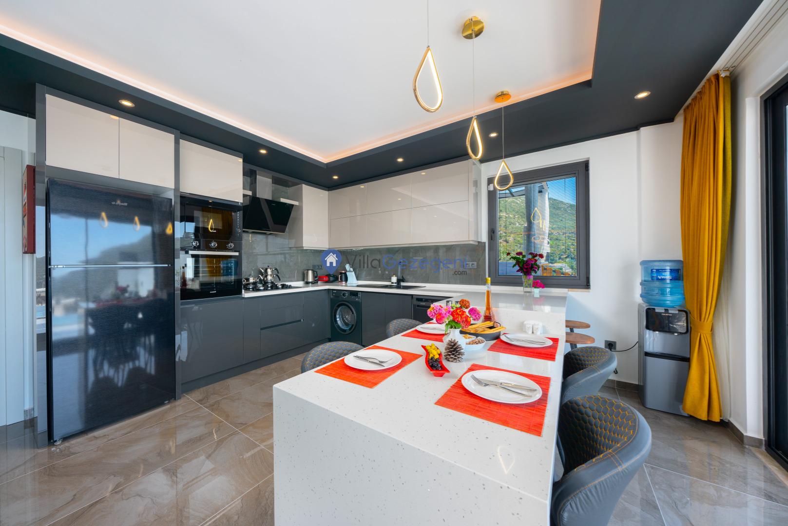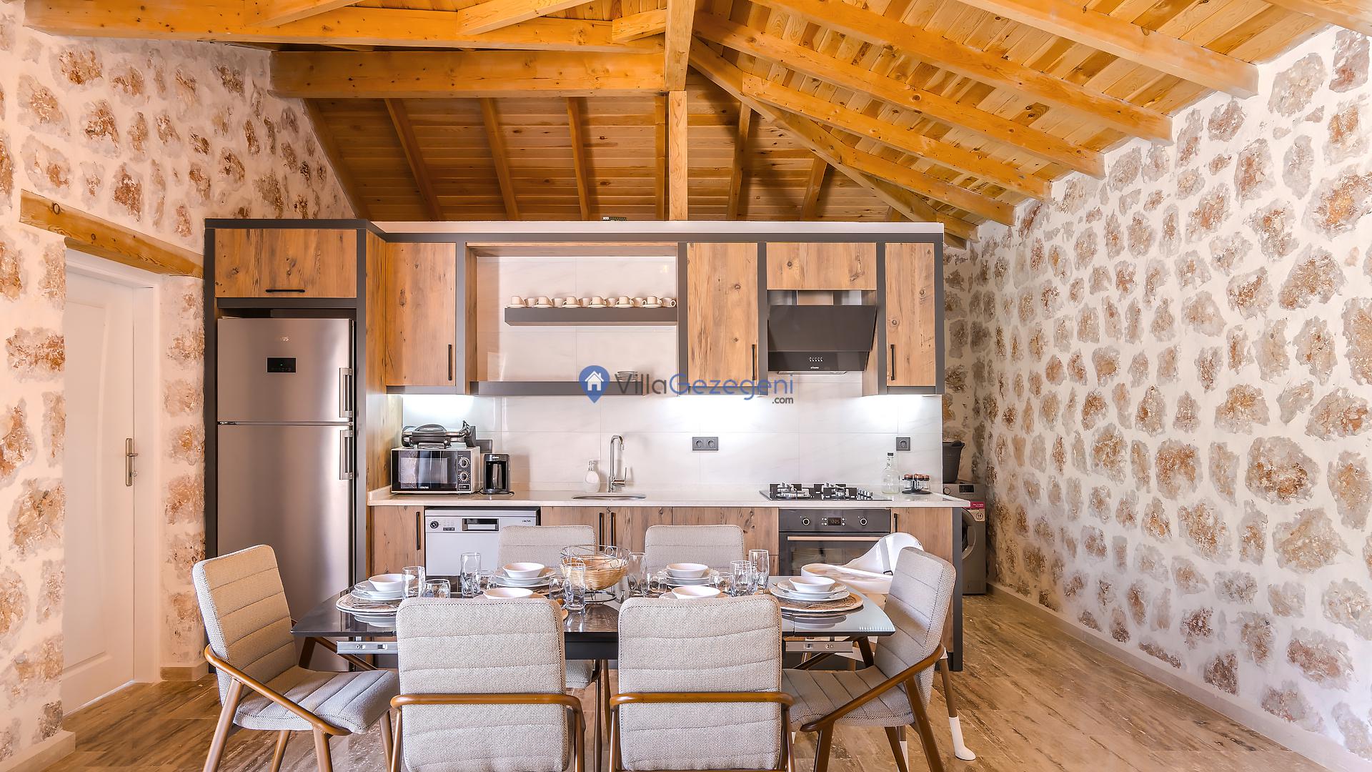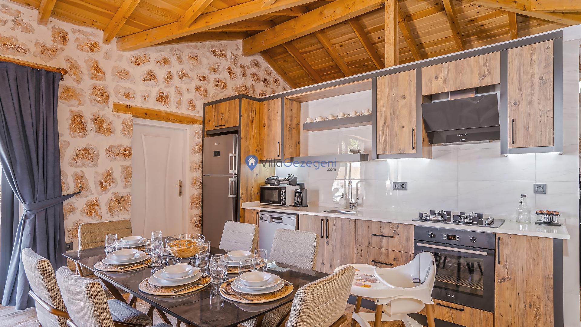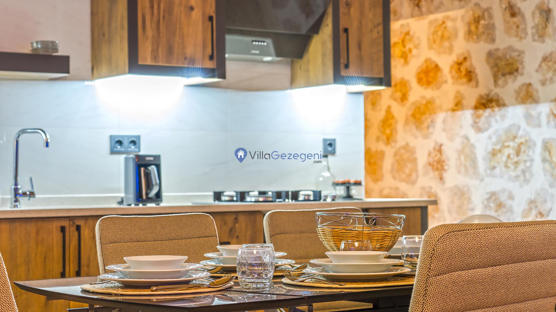 Mutfak: Buz dolabı, Bulaşık Makinesi, Fırın, Ocak, Su ısıtıcı, En az Konaklayacak Kişi sayısına eşit Yiyecek ve içecek takımı