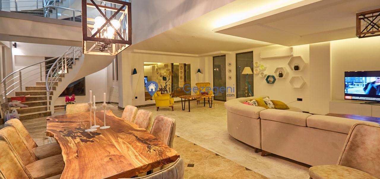 5 yatak odalı ultralüks jakuzili,kapalı havuzlu merkeze ve denize yakın kiralık yazlık villa.