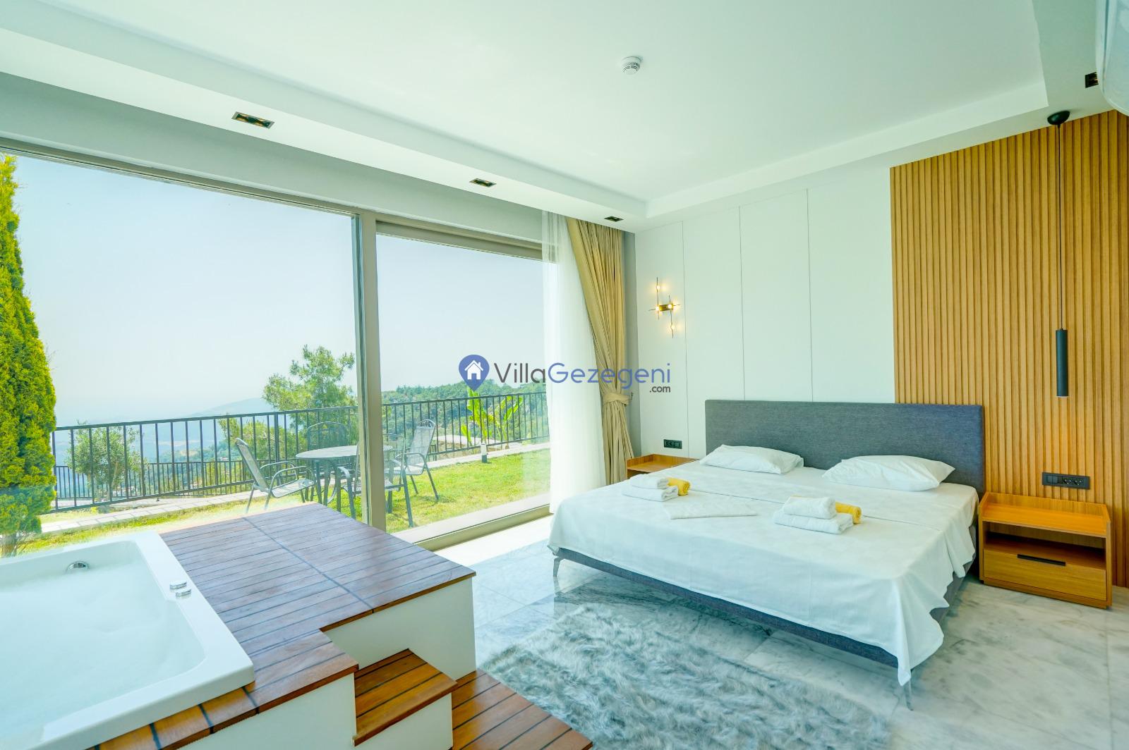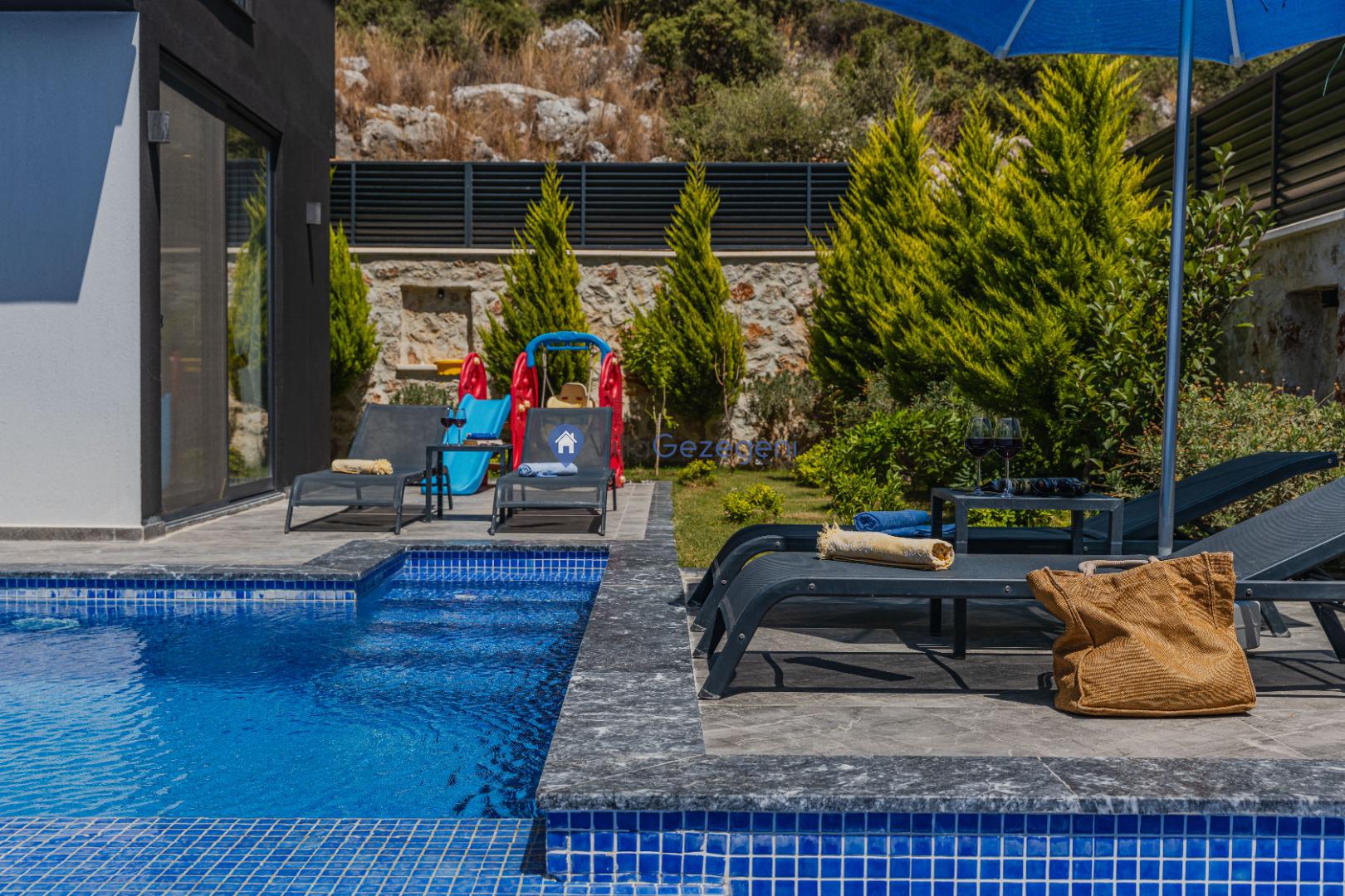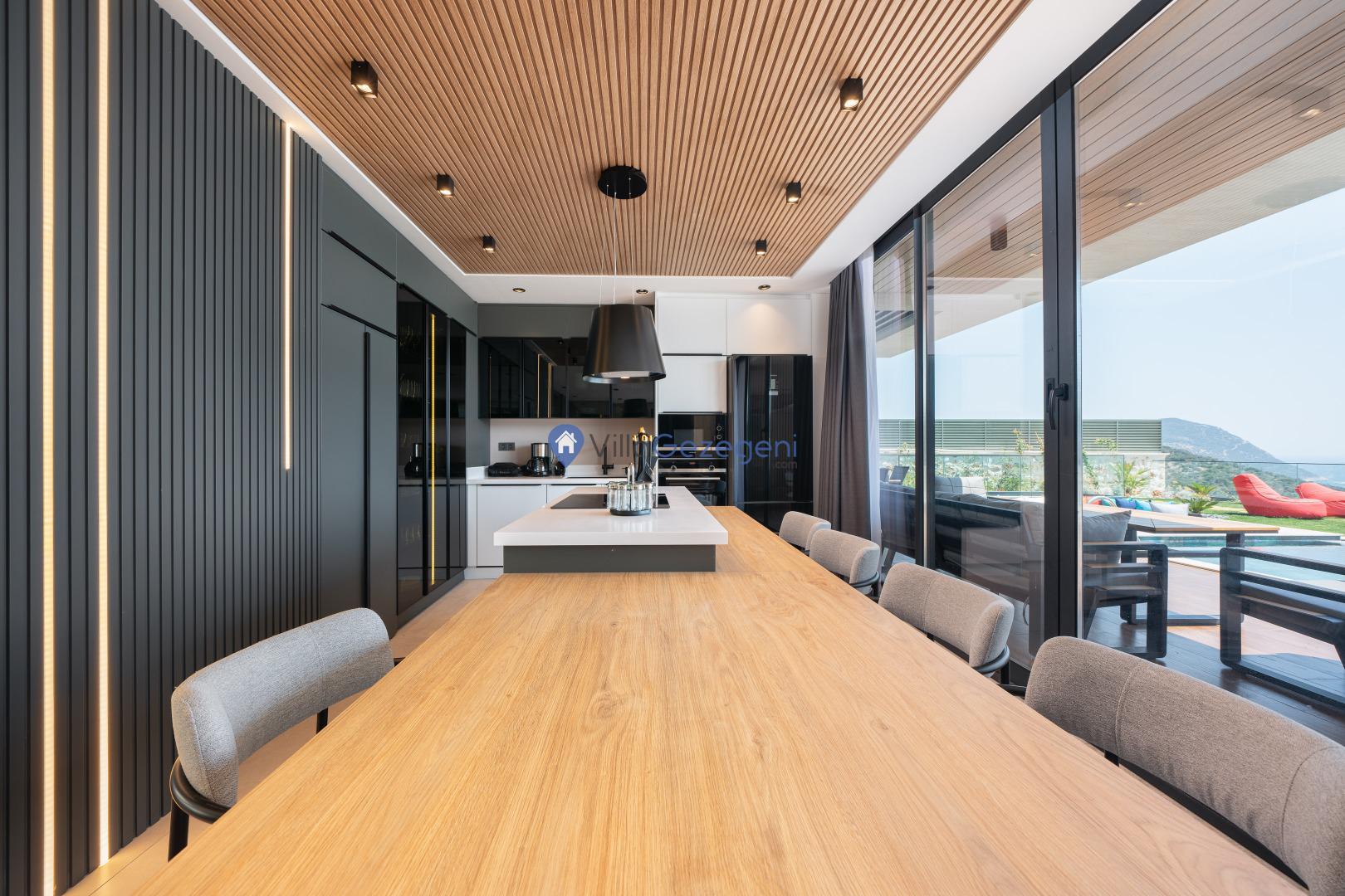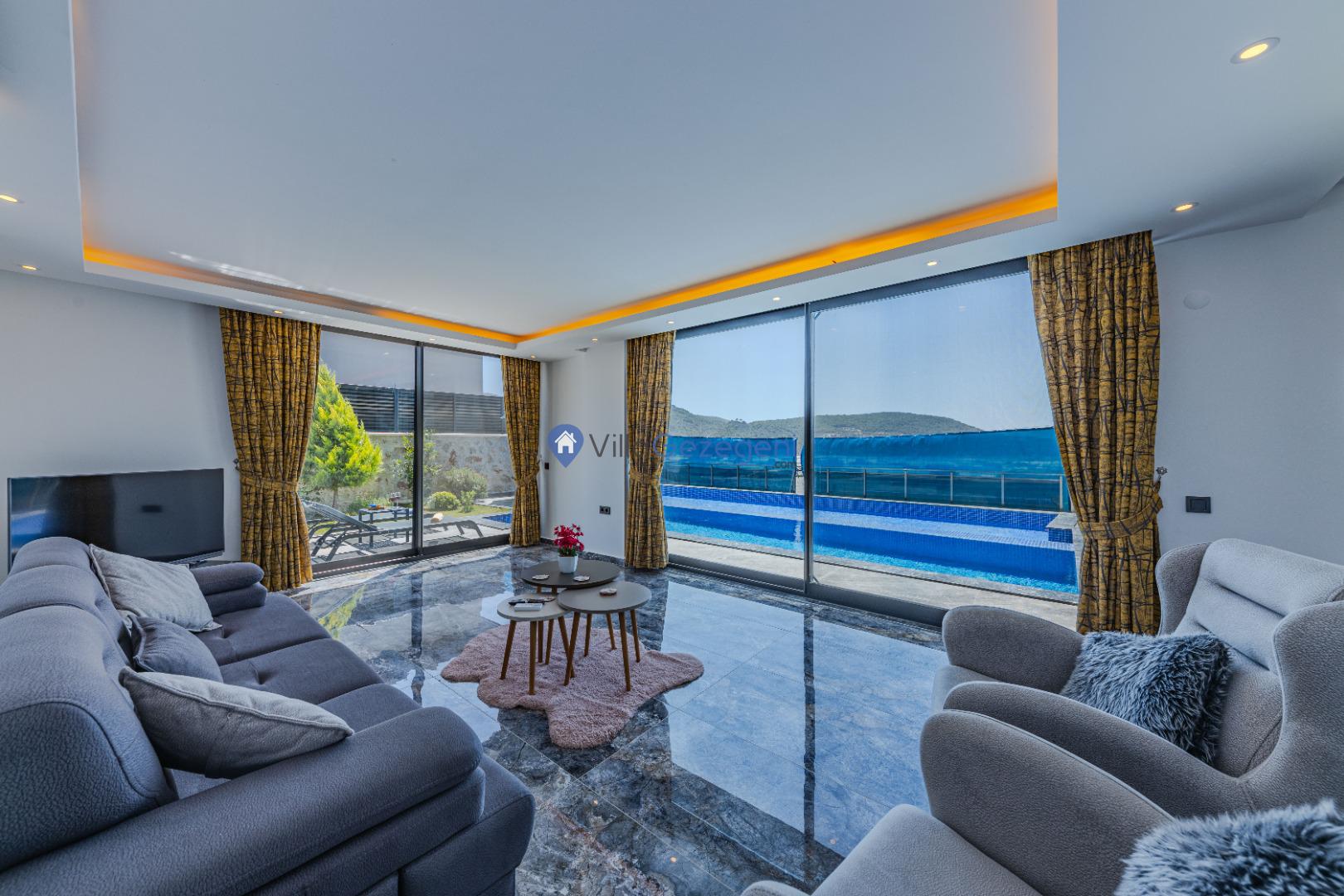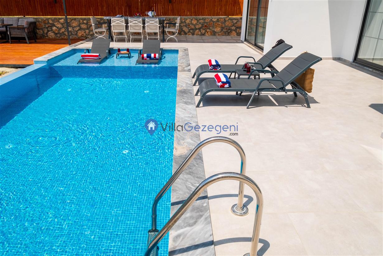 Kalkan'ın Kalamar mevkiisinde bulunan 3 odalı 6 kişilik lüks tasarıma sahip deniz manzaralı kiralık villa