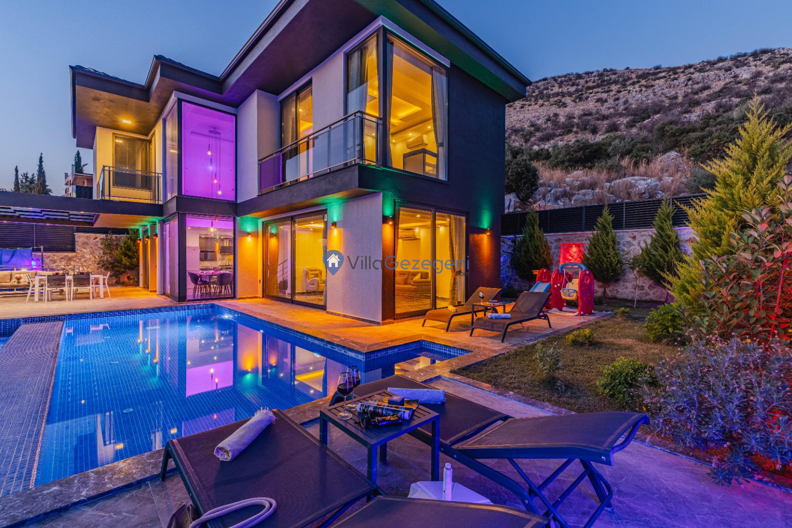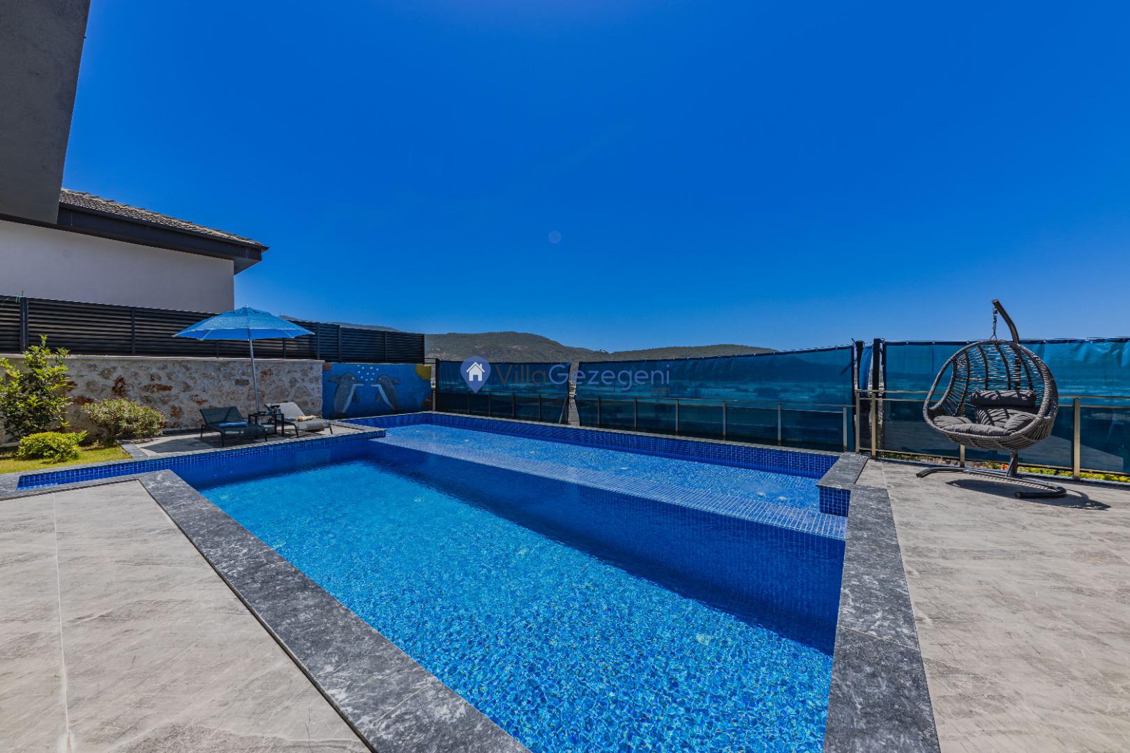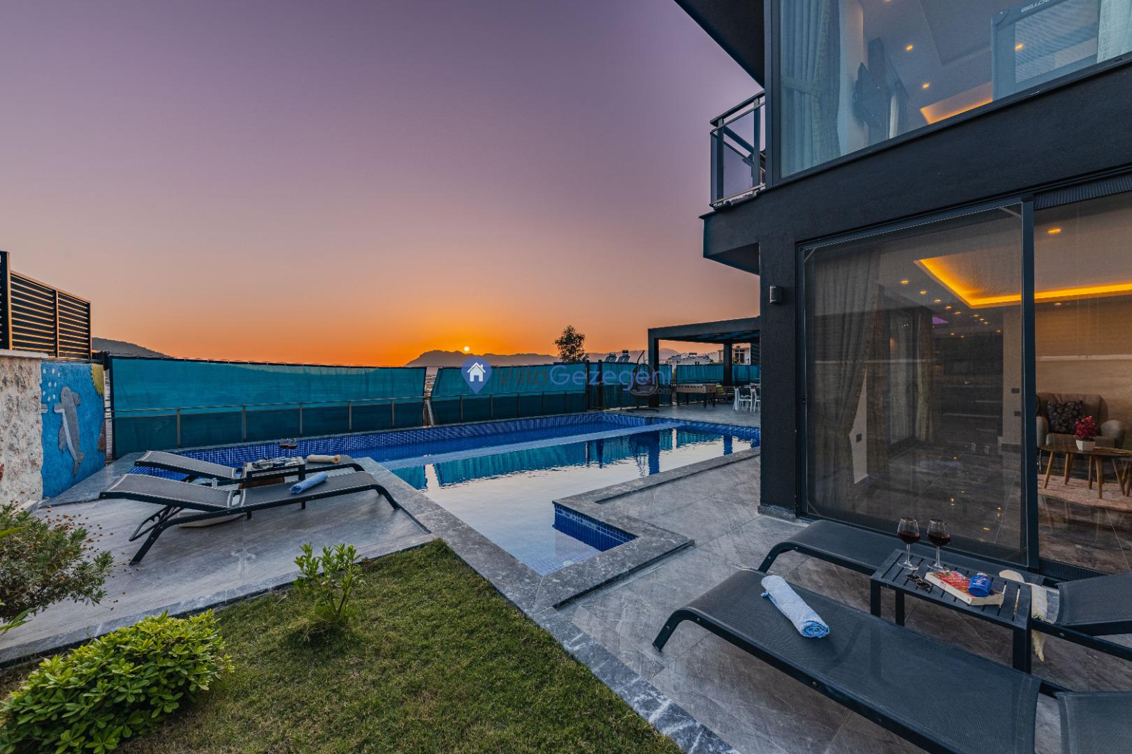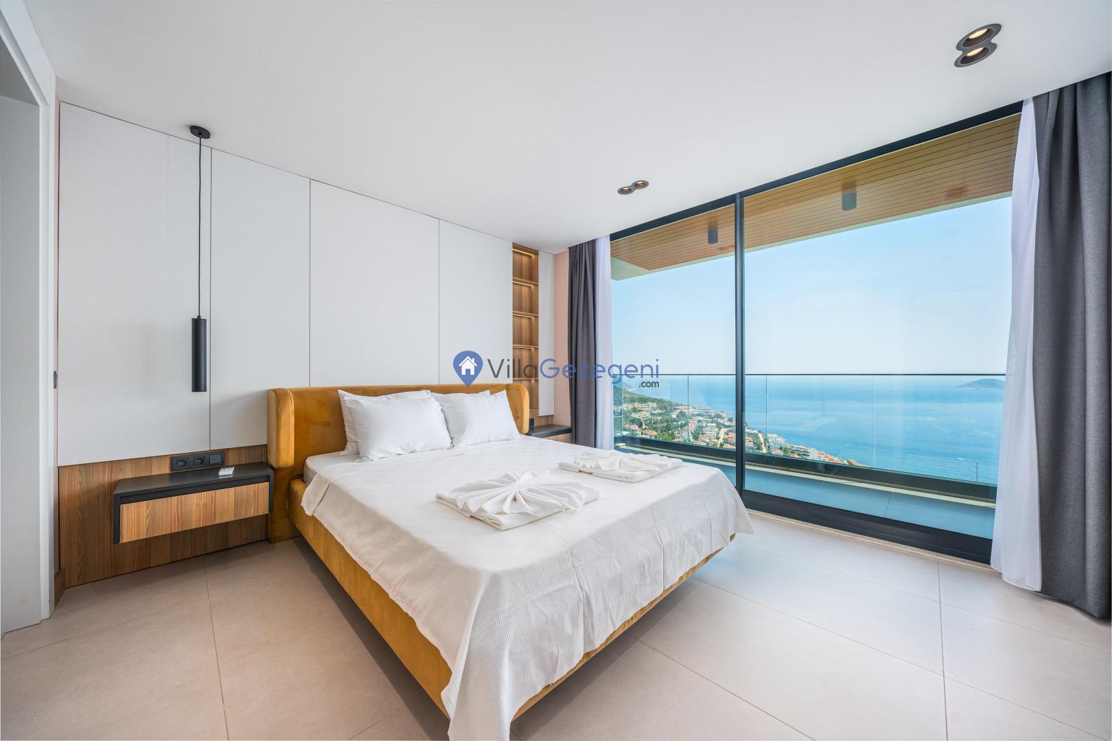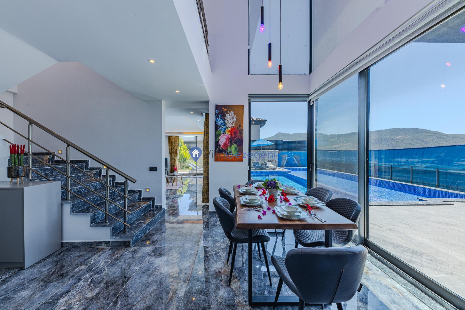 Kalkan'ın Kalamar mevkiisinde bulunan 3 odalı 6 kişilik lüks tasarıma sahip deniz manzaralı kiralık villa