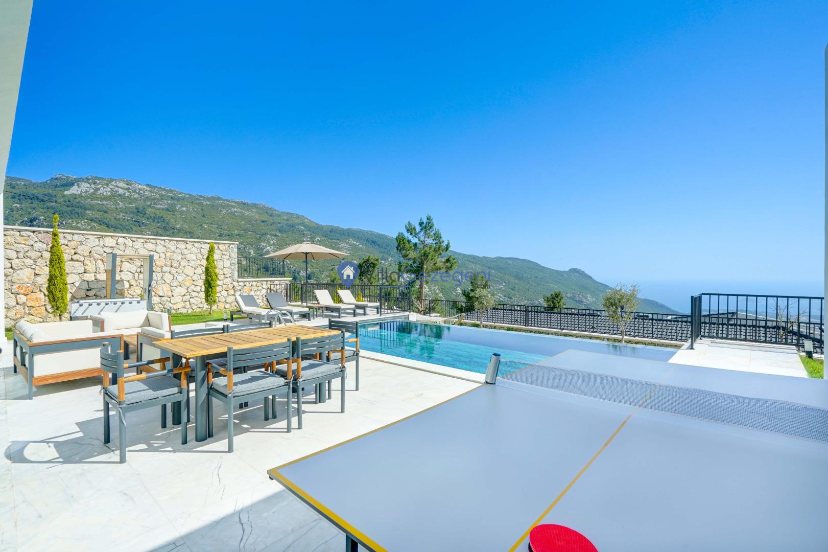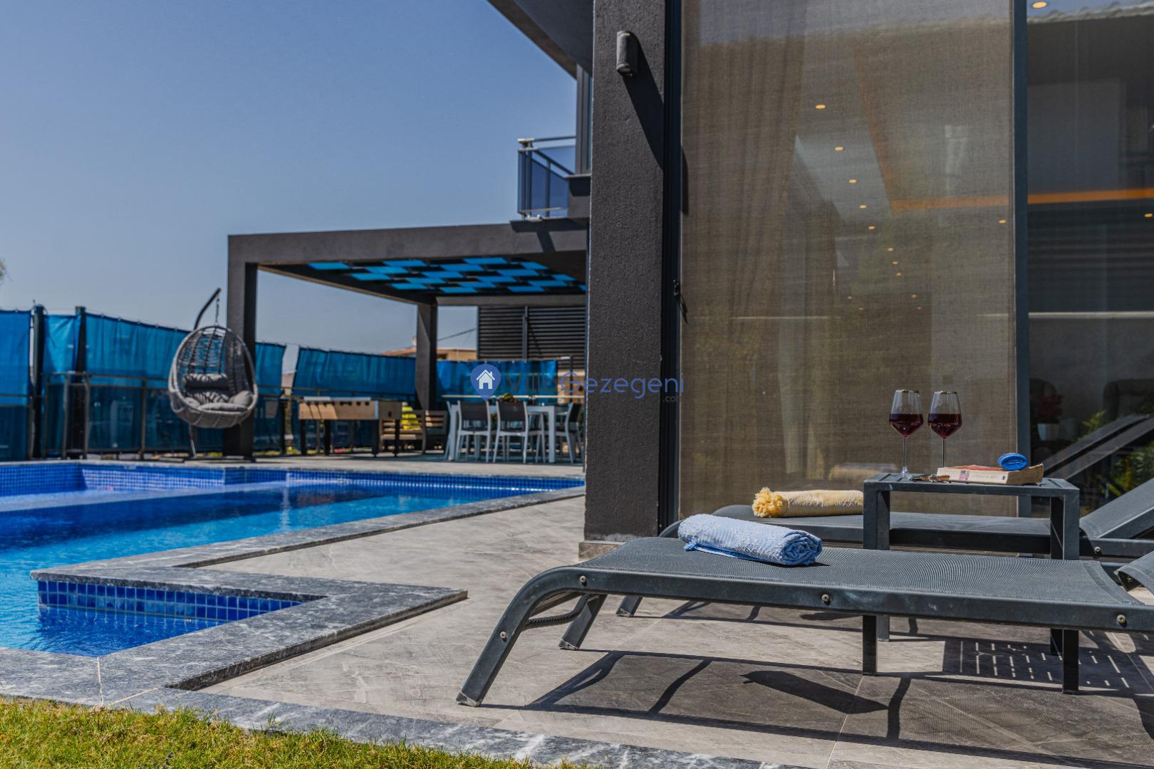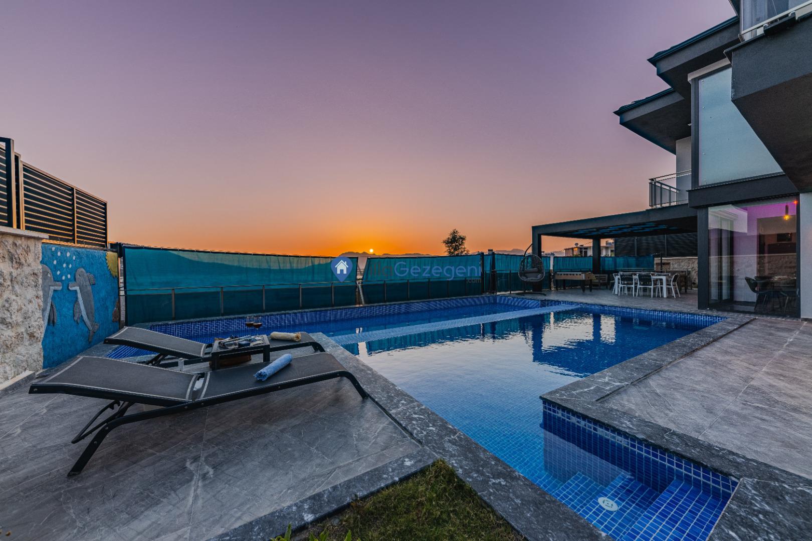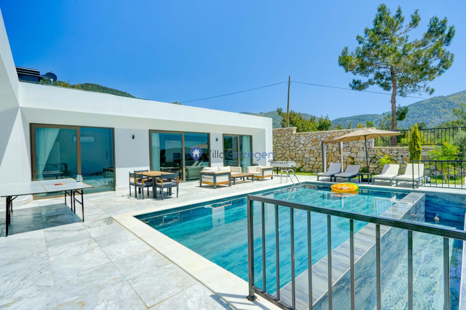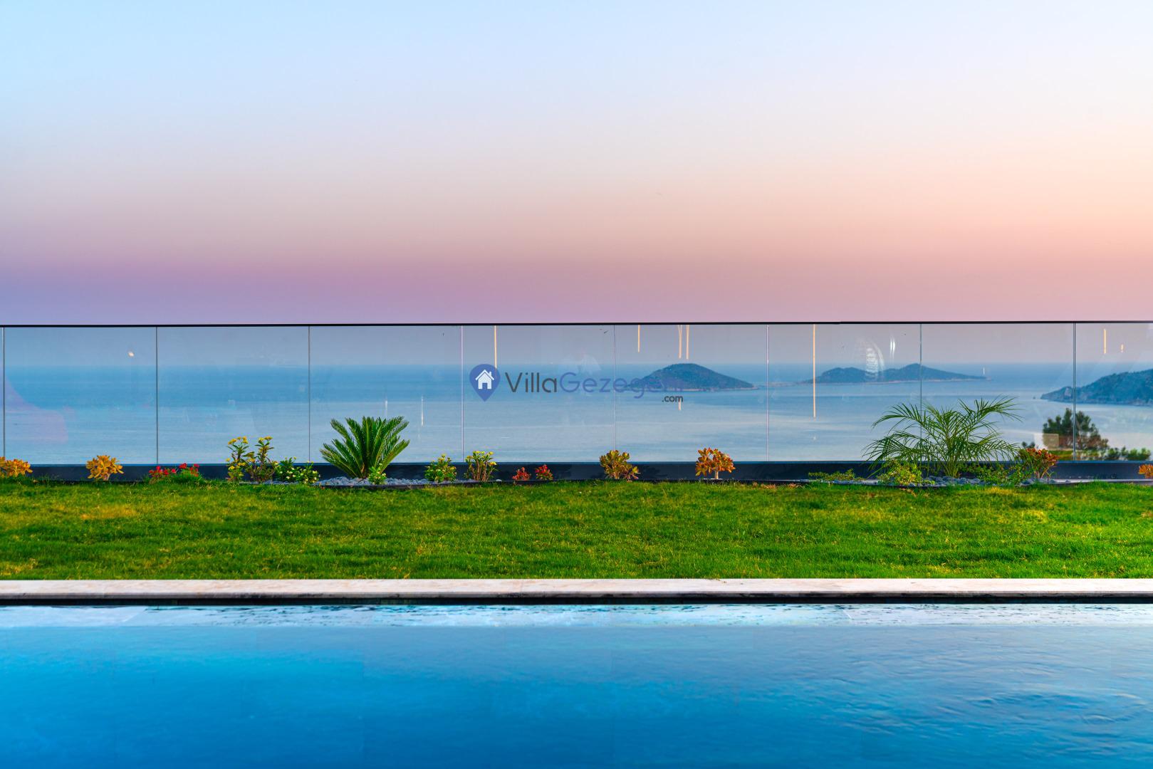 Kalkan'ın Kalamar mevkiisinde bulunan 3 odalı 6 kişilik lüks tasarıma sahip deniz manzaralı kiralık villa