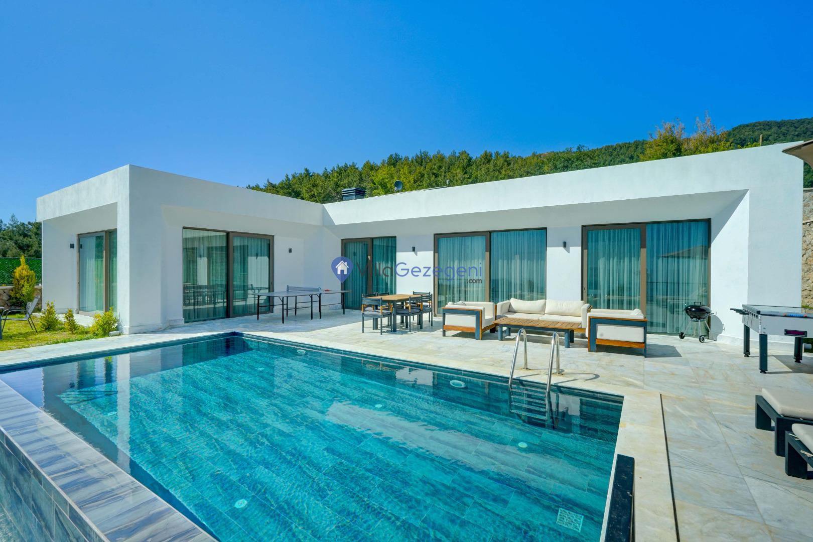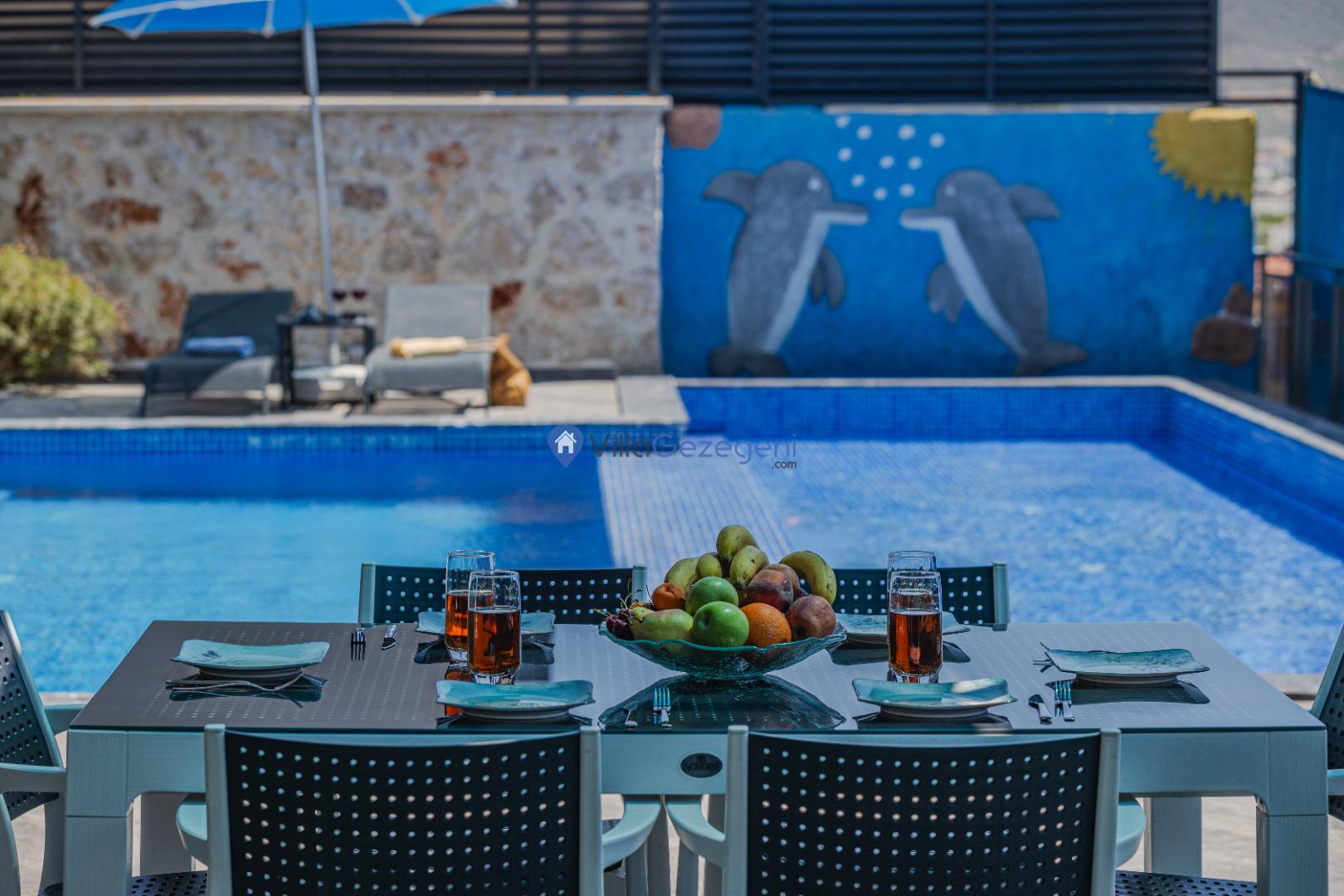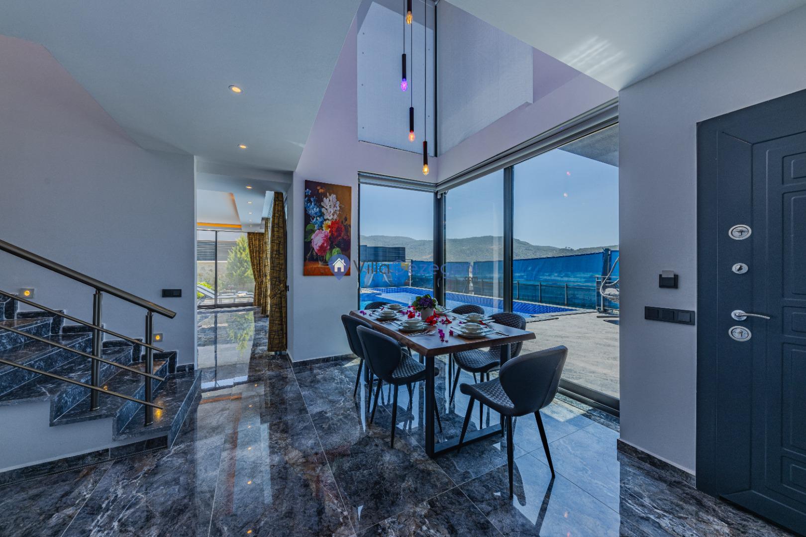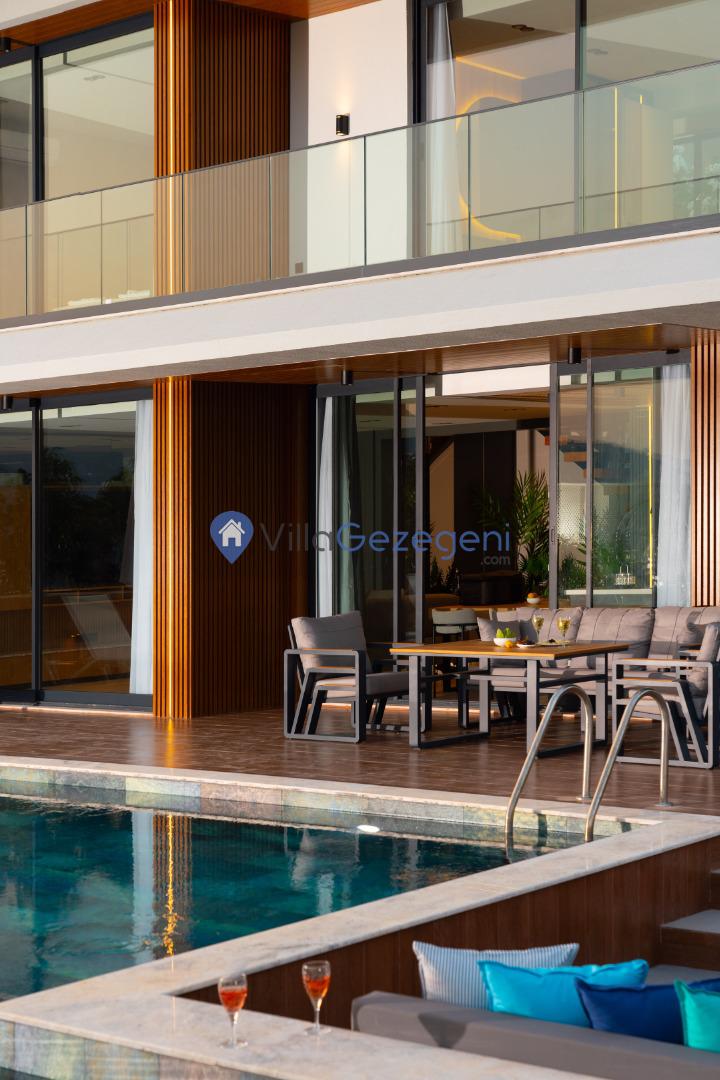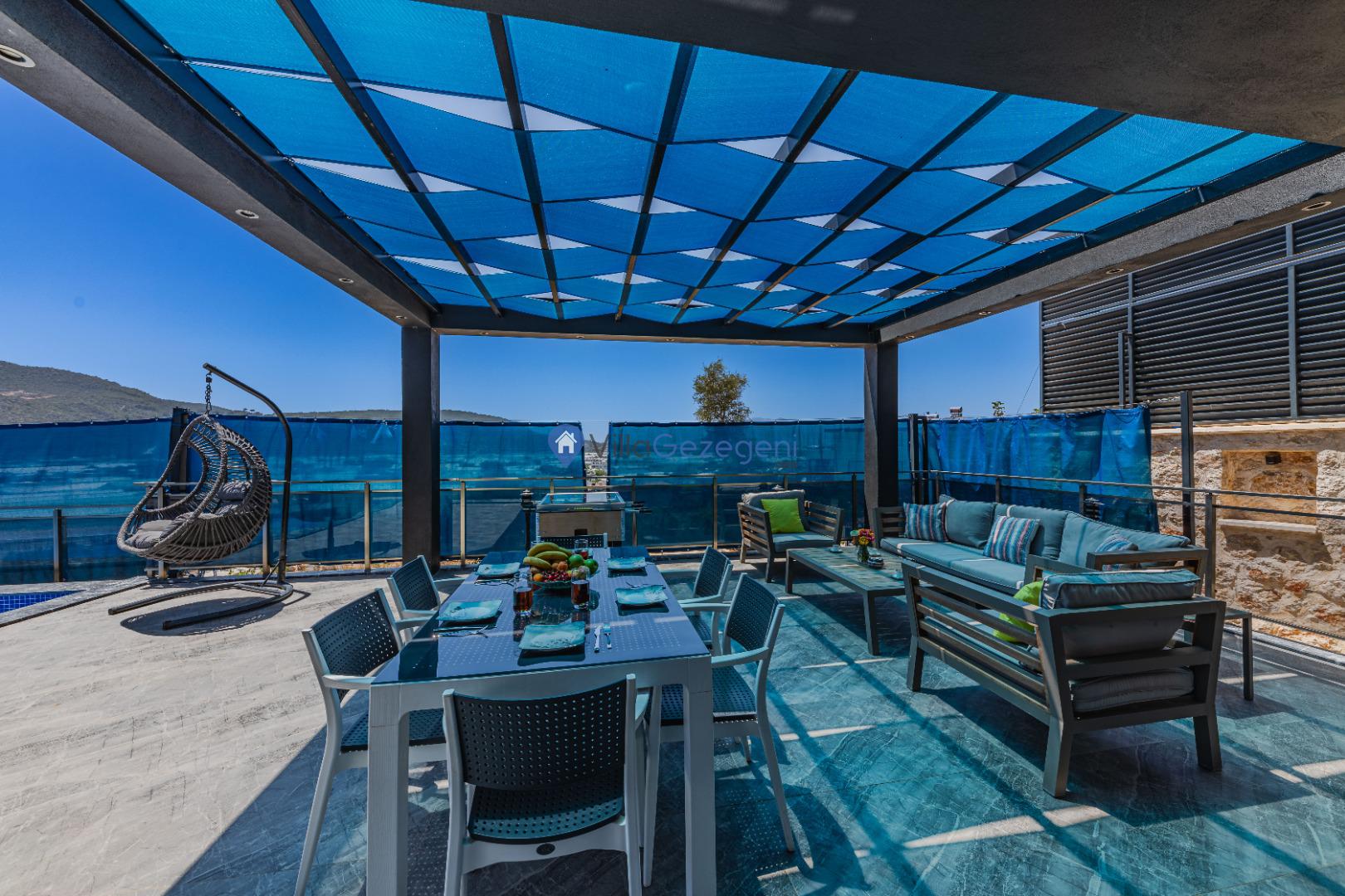 Kalkan'ın Kalamar mevkiisinde bulunan 3 odalı 6 kişilik lüks tasarıma sahip deniz manzaralı kiralık villa