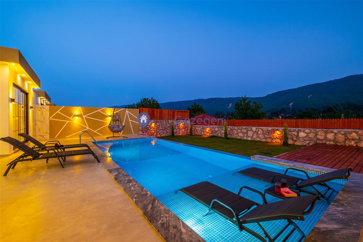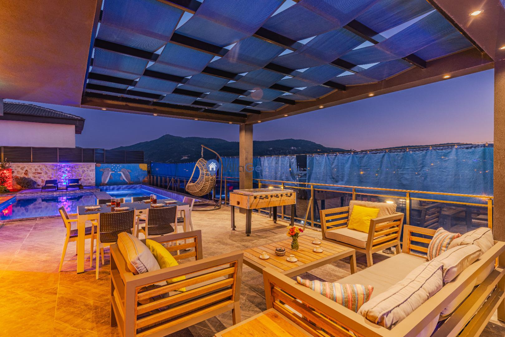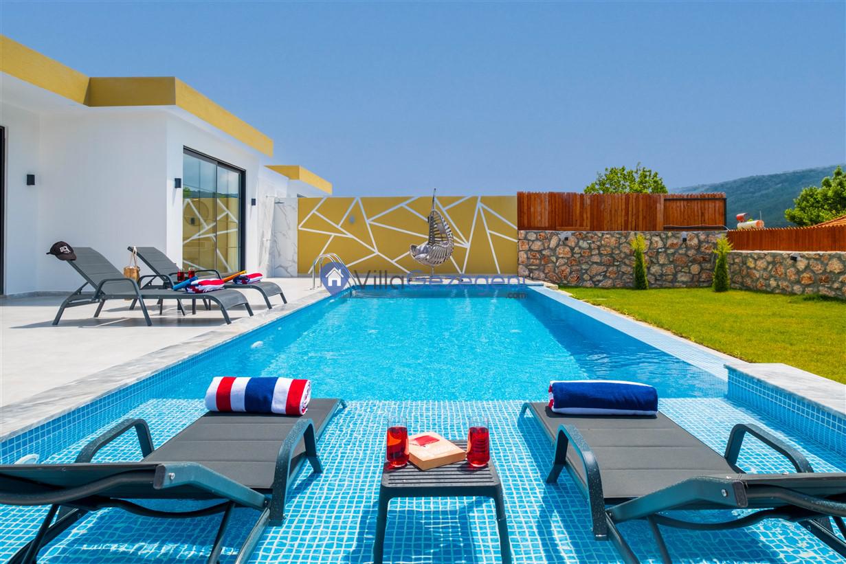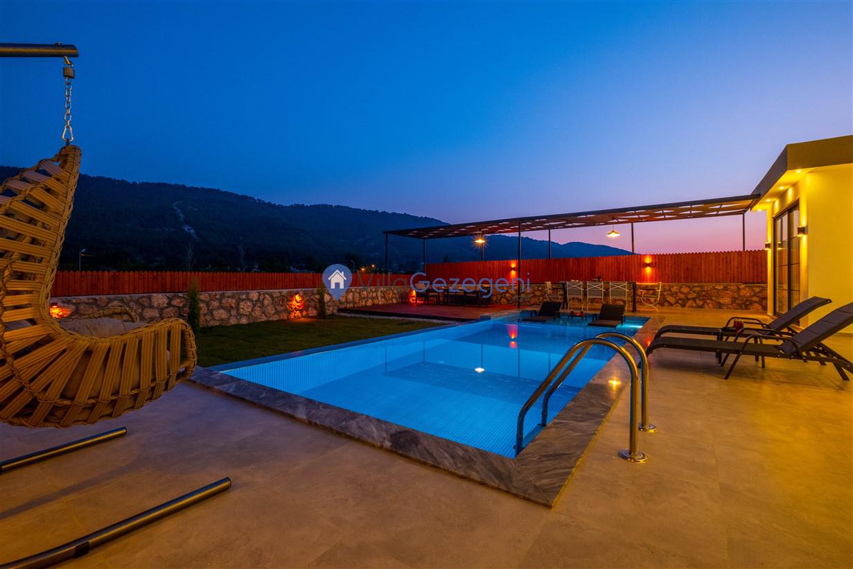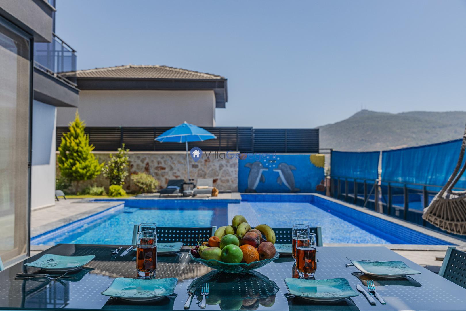 Villa Golden 1 Sarıbelen, Kalkan Sarıbelen'de 6 kişilik, doğa içerisinde, kalabalık gruplara uygun, jakuzili, salıncaklı, muhafazakar kiralık villa.