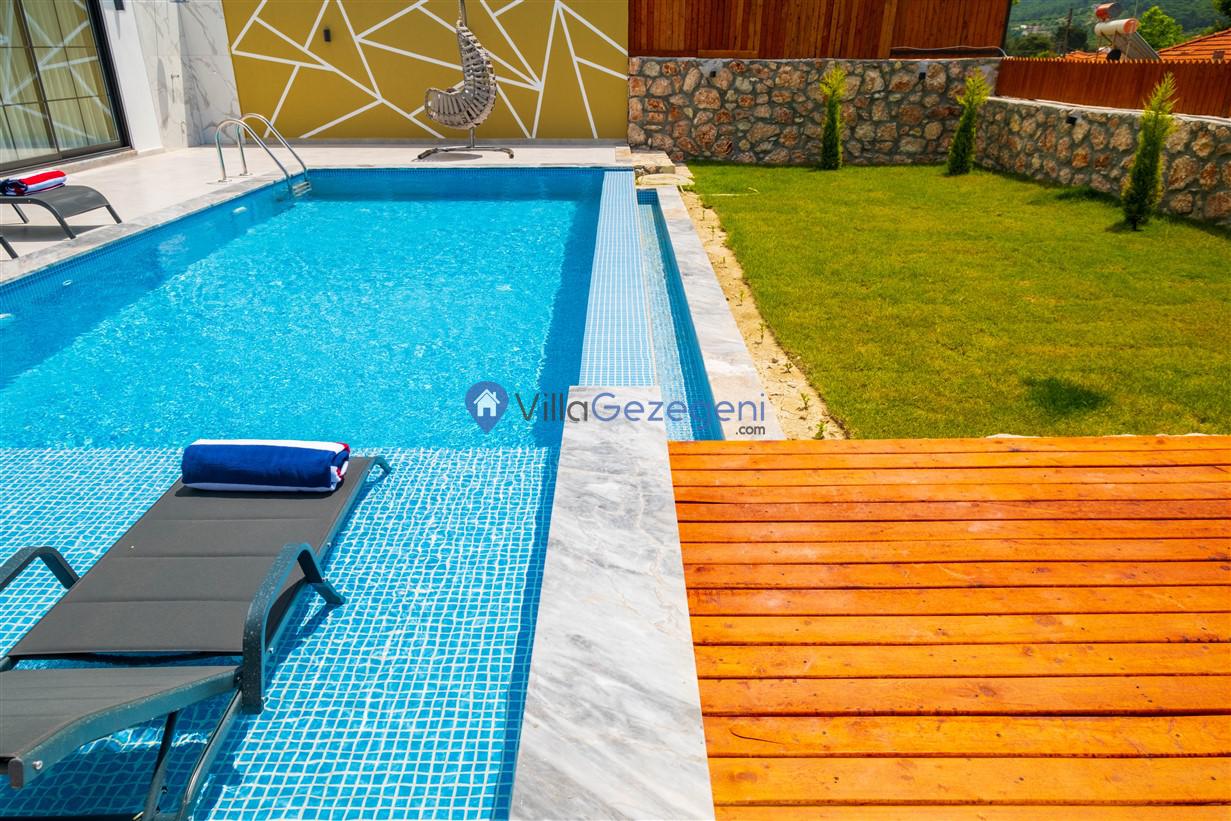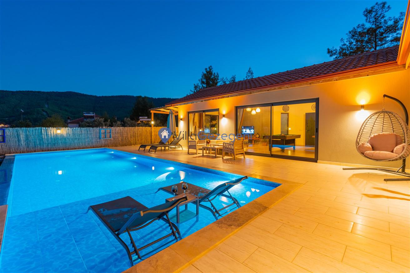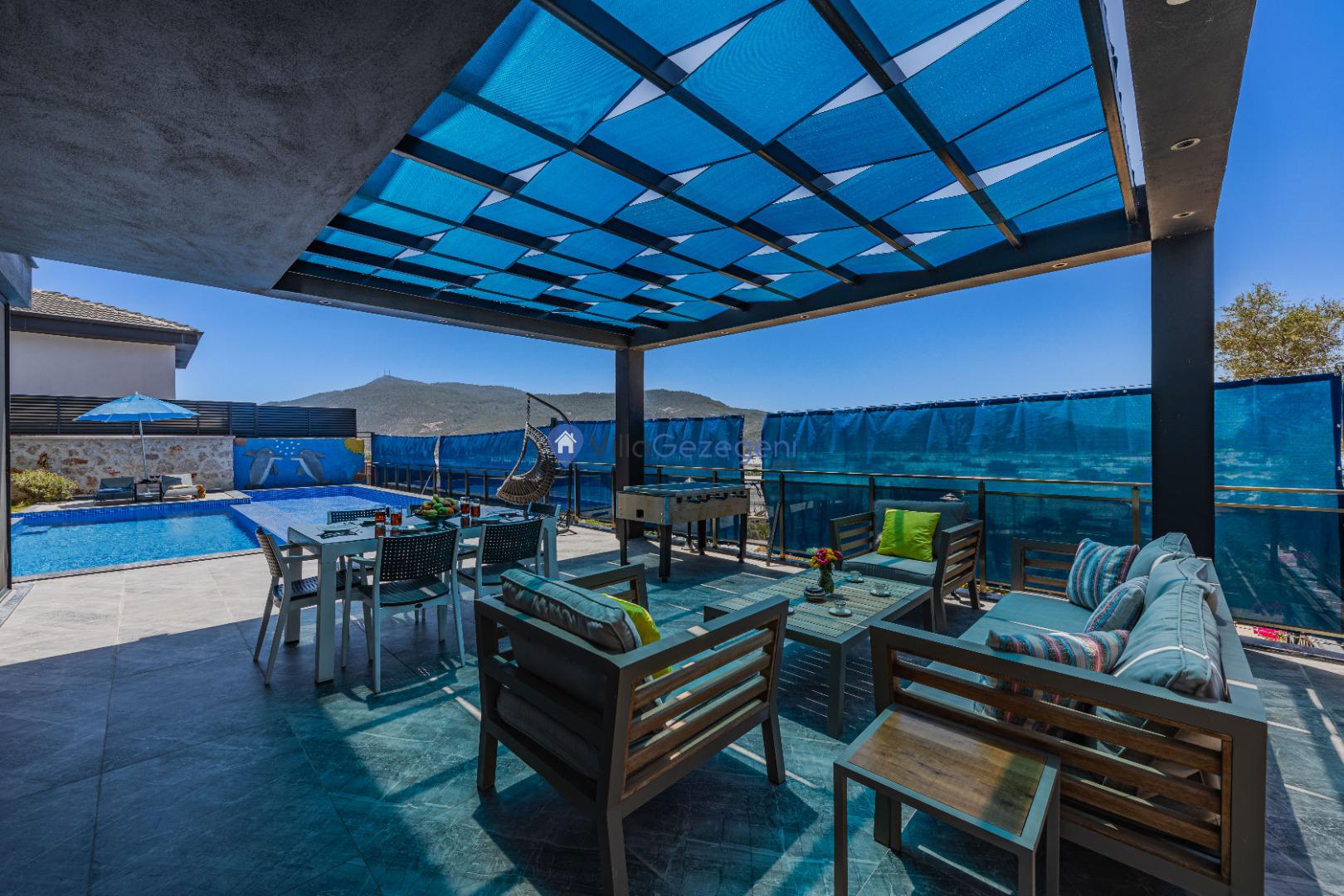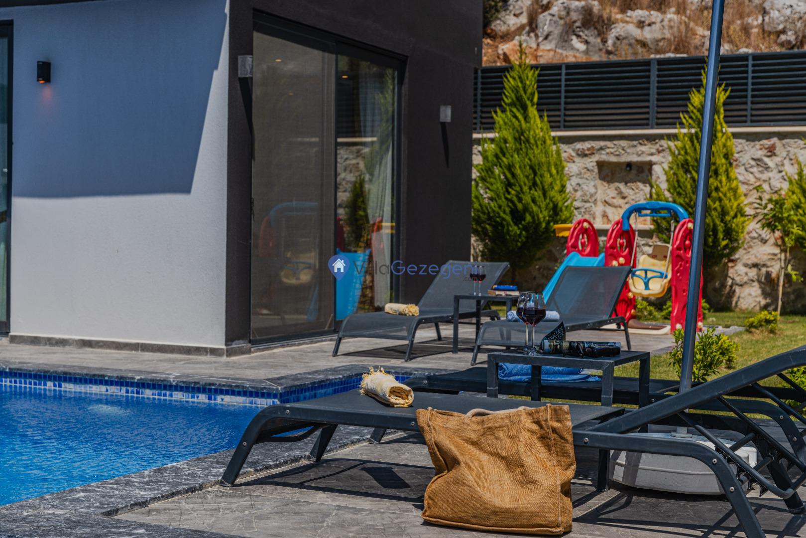 Villa Golden 1 Sarıbelen, Kalkan Sarıbelen'de 6 kişilik, doğa içerisinde, kalabalık gruplara uygun, jakuzili, salıncaklı, muhafazakar kiralık villa.