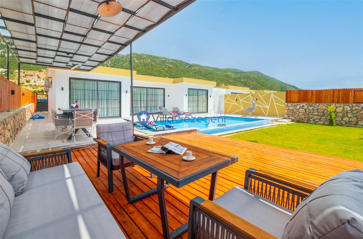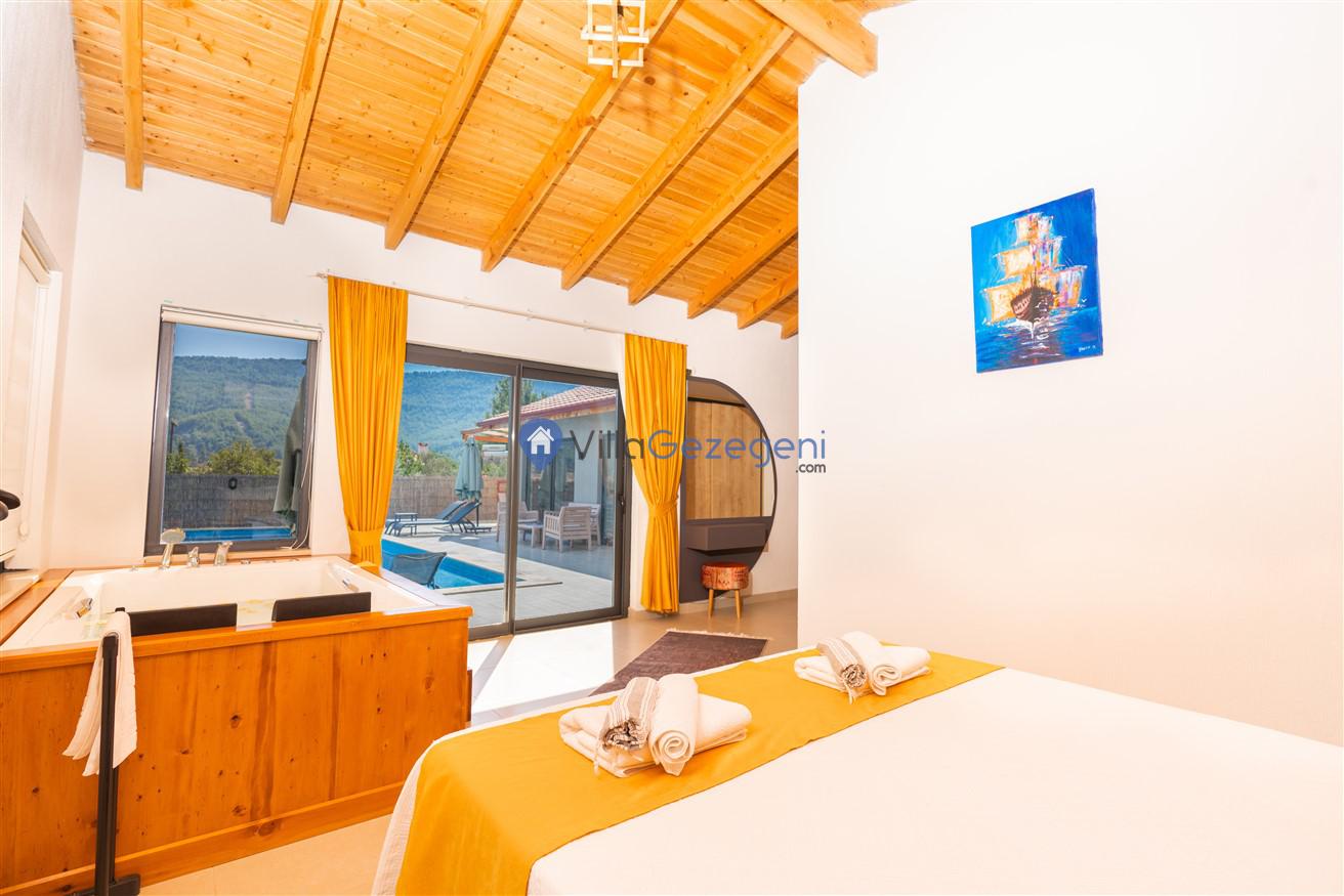 Villa Golden 2 Sarıbelen, Kalkan Sarıbelen'de 6 kişilik, doğa içerisinde, jakuzili, muhafazakar, kiralık villa.