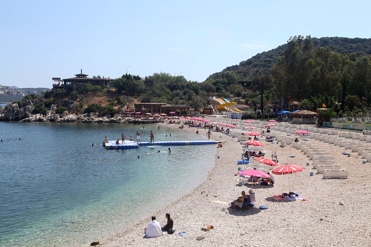 Kalkan’ın iklimi sayesinde yılın dokuz ayı denize girmeniz mümkündür. Plajda bulunan şezlong ve şemsiyeleri kiralayarak gün boyu denizin ve güneşin tadını çıkarabilirsiniz.