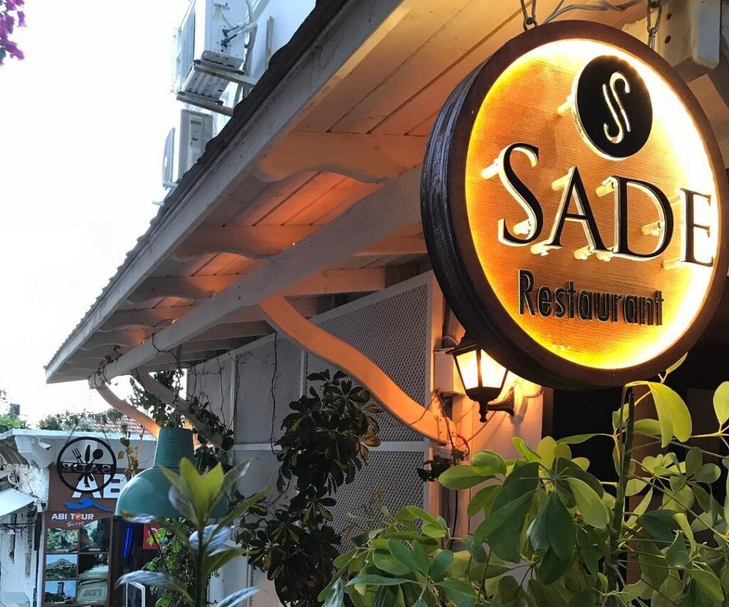 Sade Terrace Restaurant, teras manzarası ve ortamı ile birçok müşterinin ilgi odağı olmuştur. Kalkan’da kaliteli, iyi et yiyebileceğiniz bir restauranttır. Sebzeli acı soslu steak, risotto steak, beyaz çikolatalı suflesi en özel lezzetleri olarak ön plana çıkmaktadır. Mekan ferah, keyifli teras tasarımı ve sunduğu lezzetli etlerle özellikle steak konusunda Kalkan’ın en iyilerinden biri haline gelmiştir. Kalkan’a olan ziyaretinizde steak yemeyi planlıyorsanız listenizde bulunması gereken yerler arasındadır.
