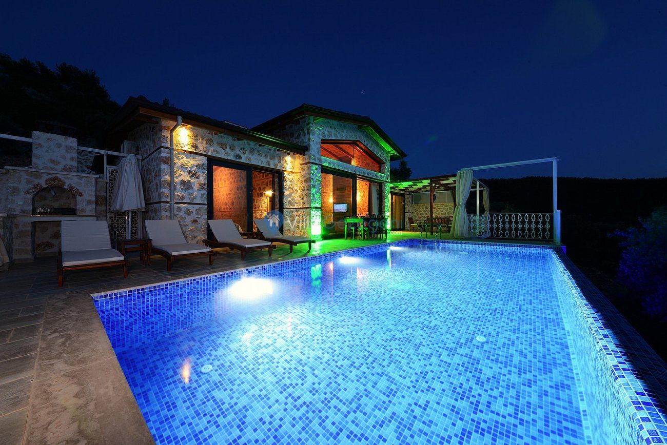 Kalkan’ın Üzümlü mevkiinde yer almaktadır. Bunun yanında 2 yatak odalı olup 4 kişilik konaklama kapasitesine sahip olan villamız balayına çıkacak olan çiftlere ve çekirdek aileler için dizayn edilmiştir. Villamız yazlıktır ama kışın rezervasyon veren müşterilerimize havuz üstü kapalı olup villamızda kış ayında ısıtma gideri fiyata dahil bir şekilde hizmet vermektedir. Ayrıca yazlık olan villamız kalkan merkeze 15 dk olup ihtiyaçlarınızı karşılayabileceğiniz Üzümlü Köy merkezine 5 dk sürüş mesafesindedir. Bununla birlikte doğayla iç içe olan yapısı ve masmavi deniziyle içinizi açacak ve unutulmaz bir tatil imkanı sunacaktır.