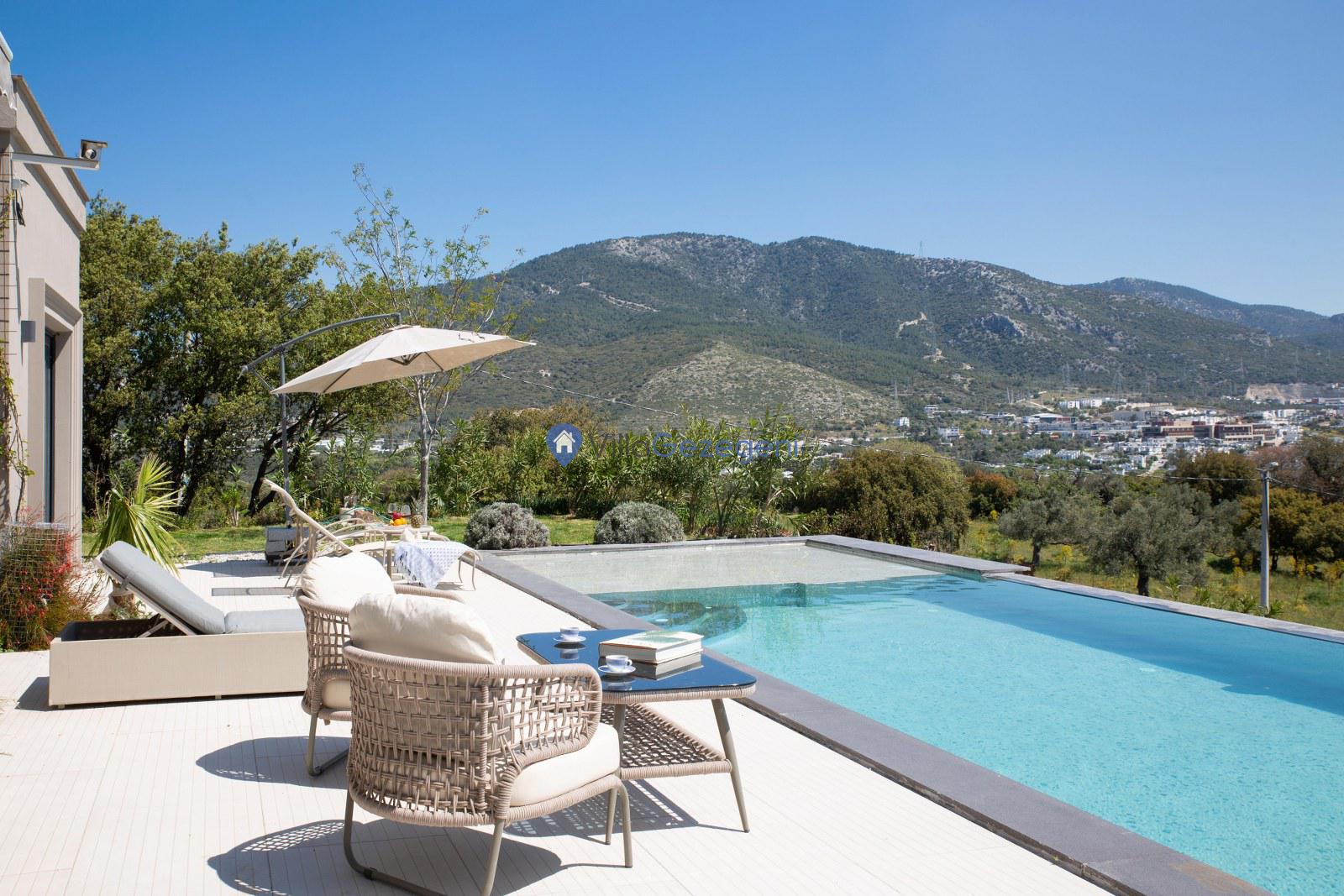 Villa Vg 4131 ; 3 yatak odalı 6 Kişi Kapasiteli,özel havuzlu, doğa manzaralı, bahçeli Kiralık Tatil Villasıdır.