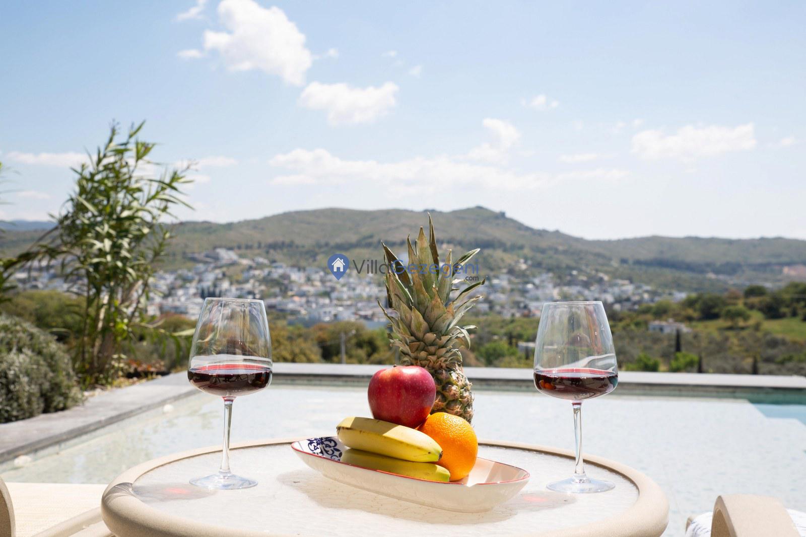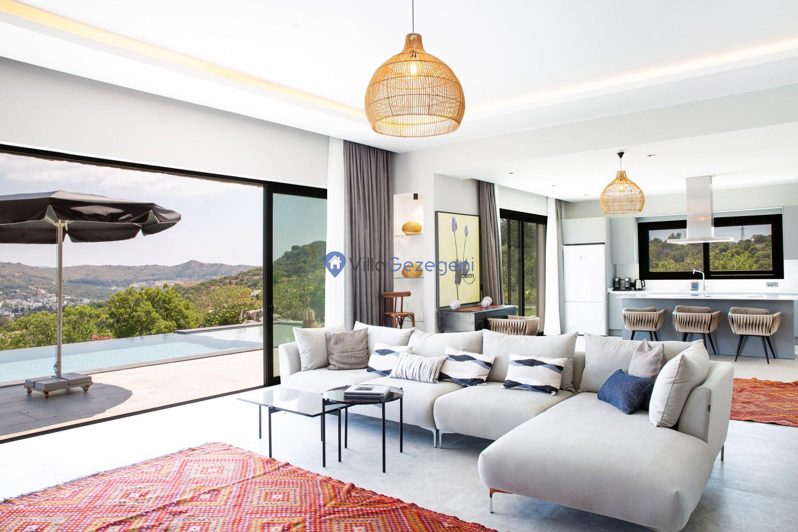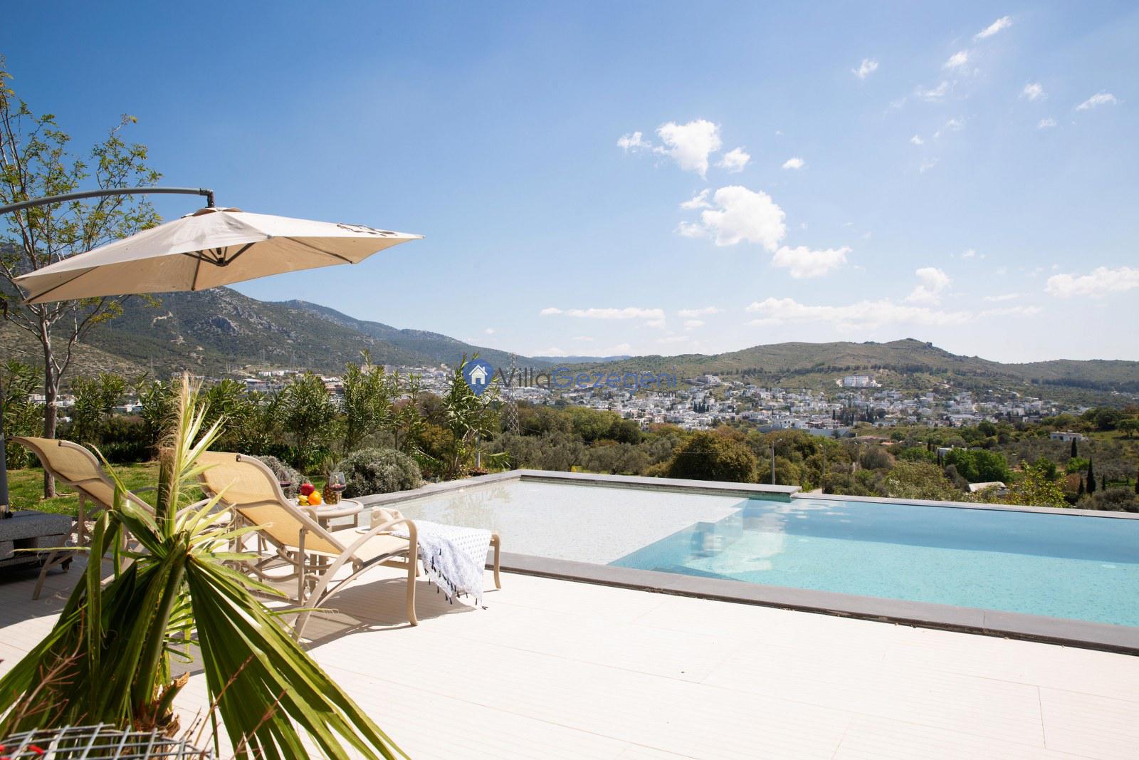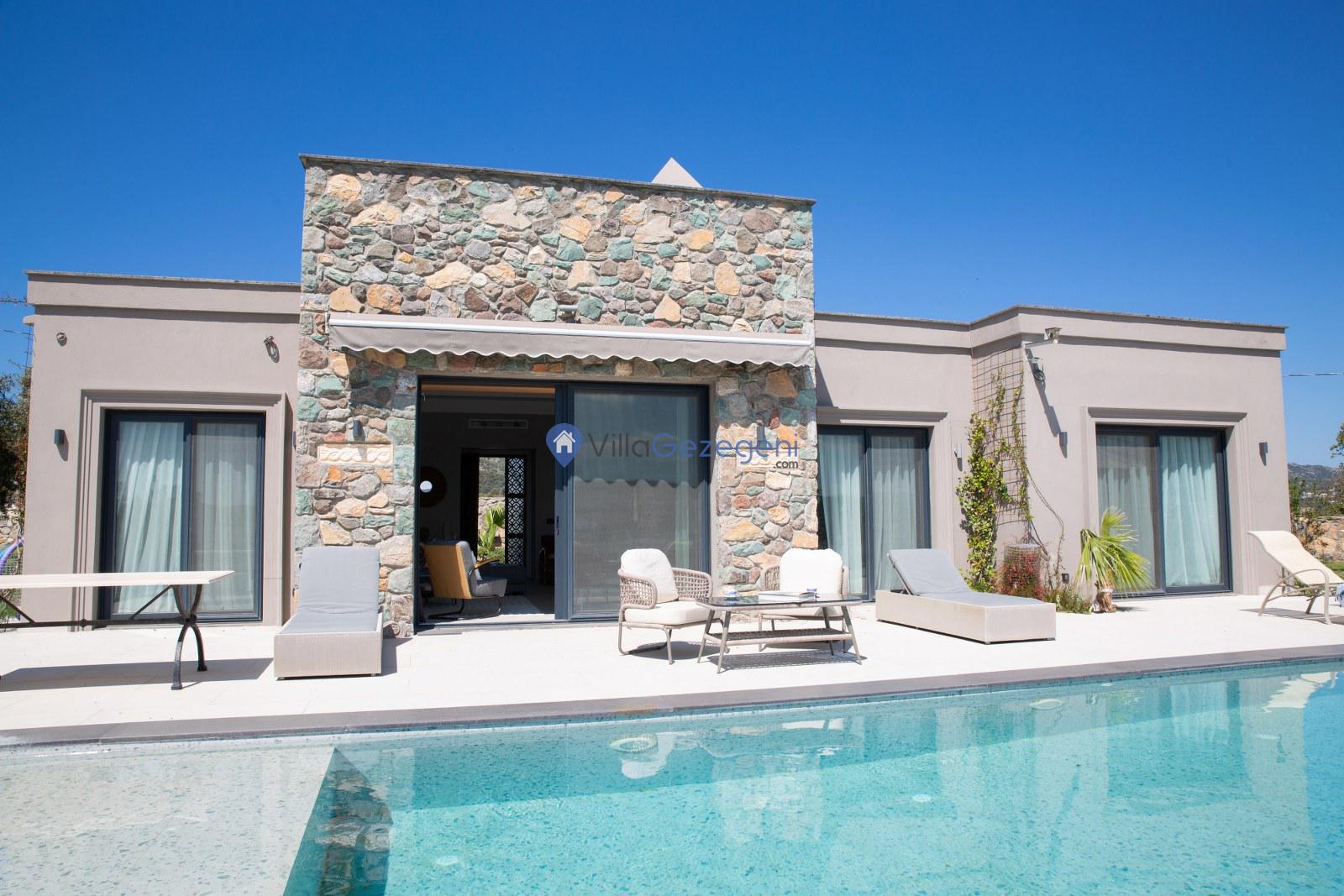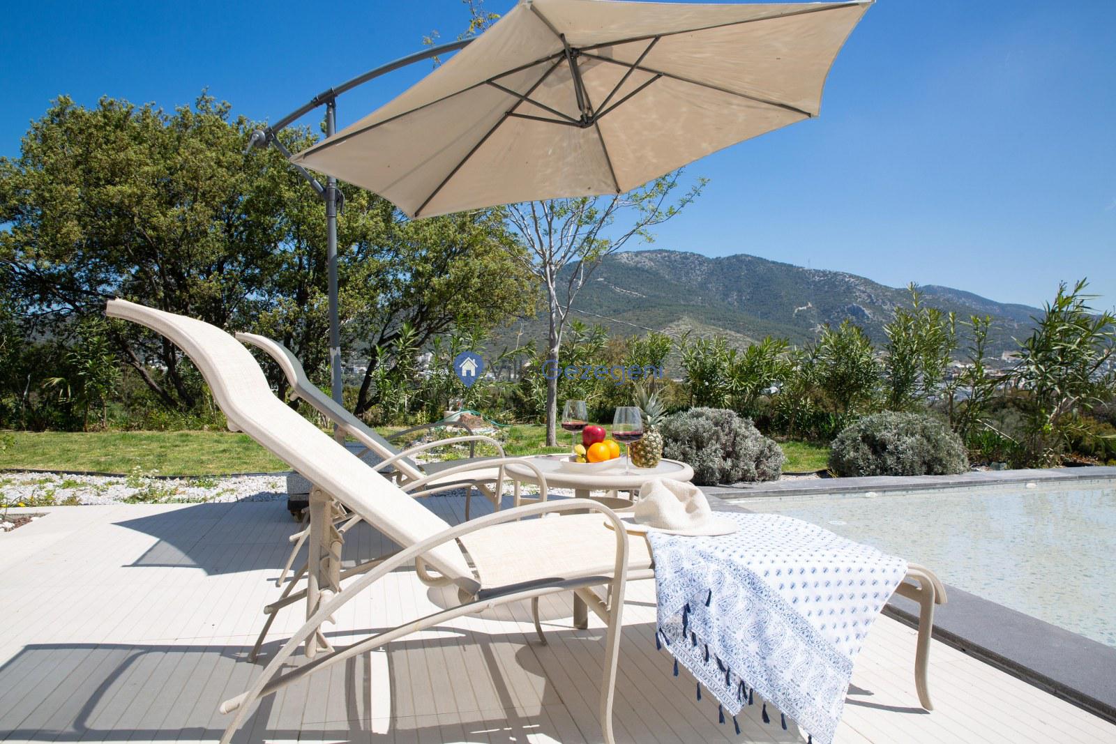 Villa Vg 4132 ; 3 yatak odalı 6 Kişi Kapasiteli,özel havuzlu, doğa manzaralı, bahçeli Kiralık Tatil Villasıdır.