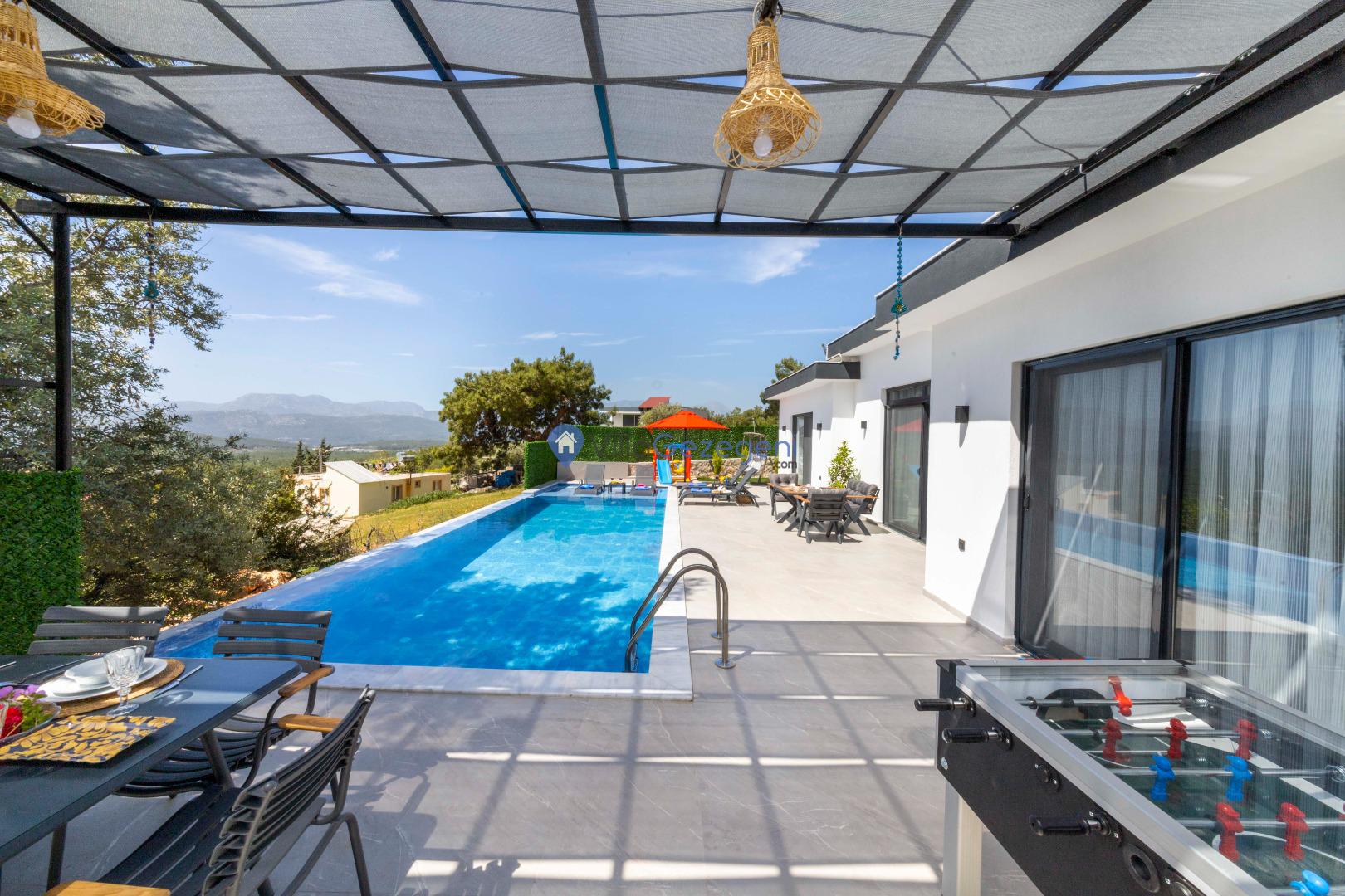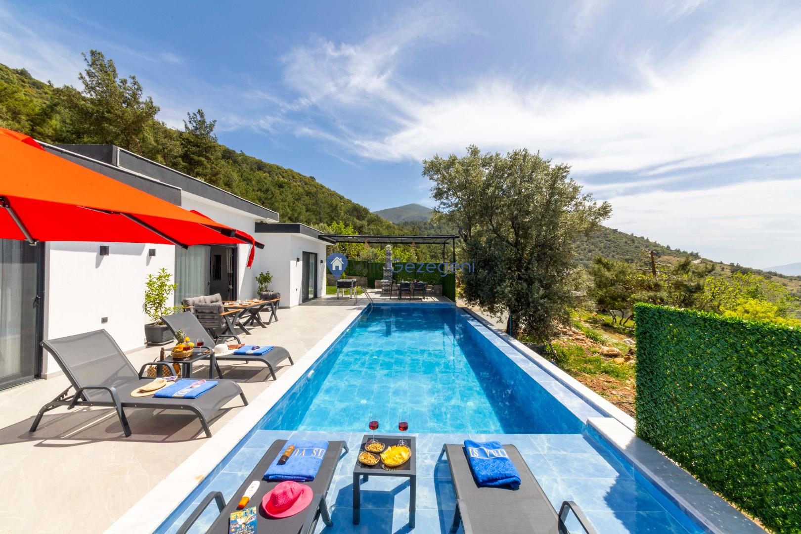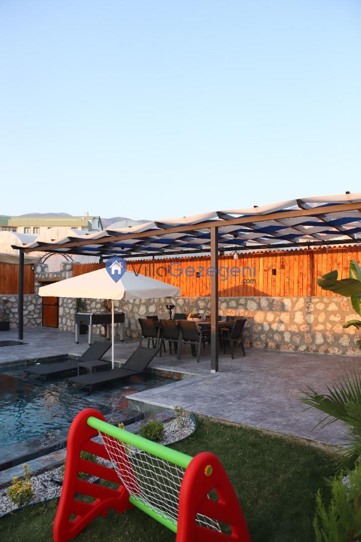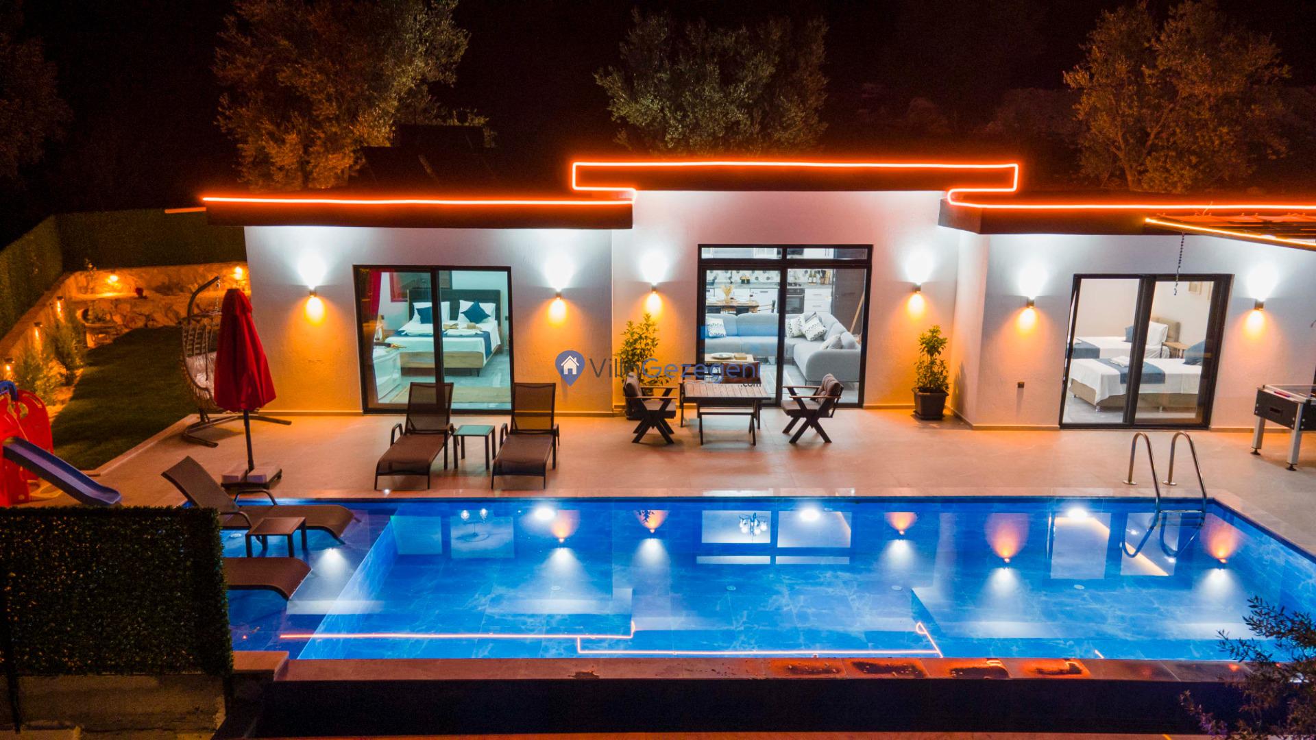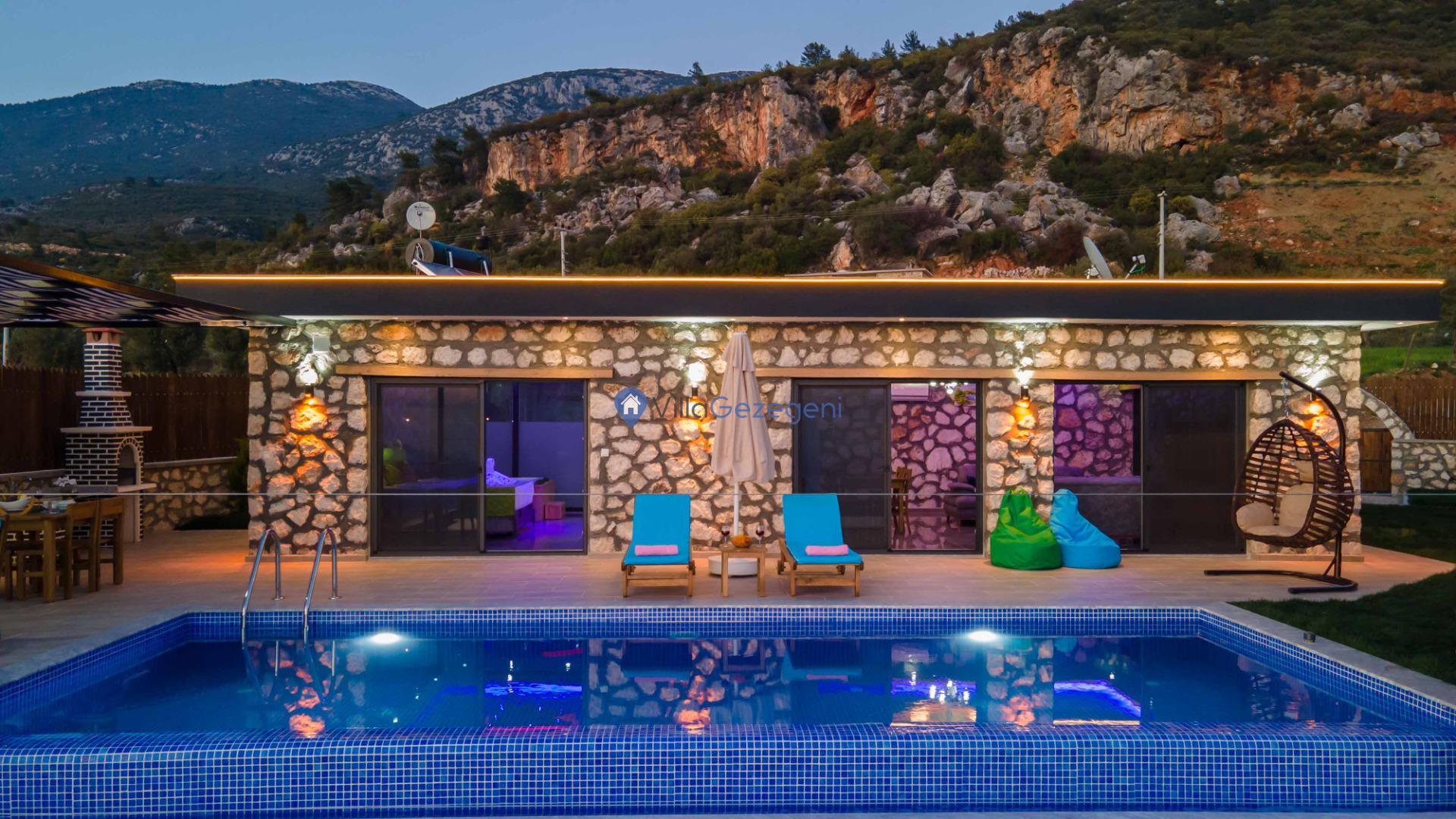 Kalkan Çavdır bölgesinde yer alan 5 yatak odalı 10 kişilik havuzu korunaklı,doğa içerisinde Geniş Aile ve Arkadaş Grupları İçin kiralık villası.