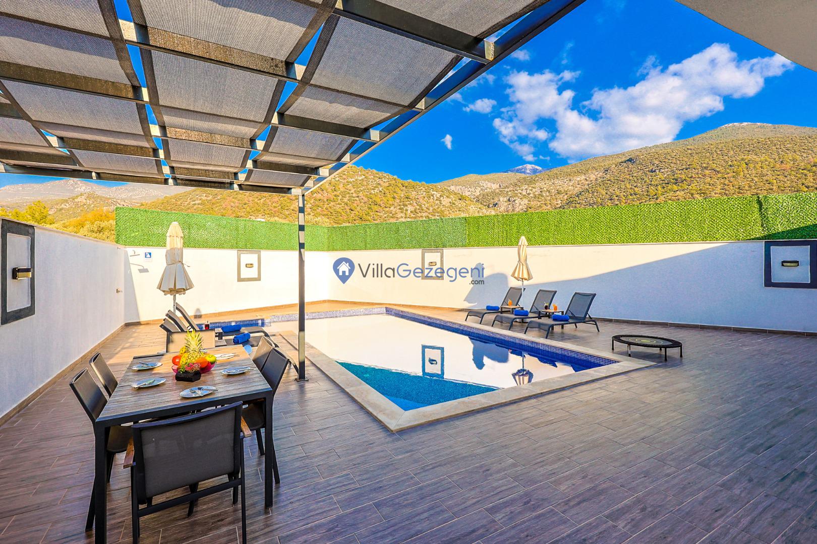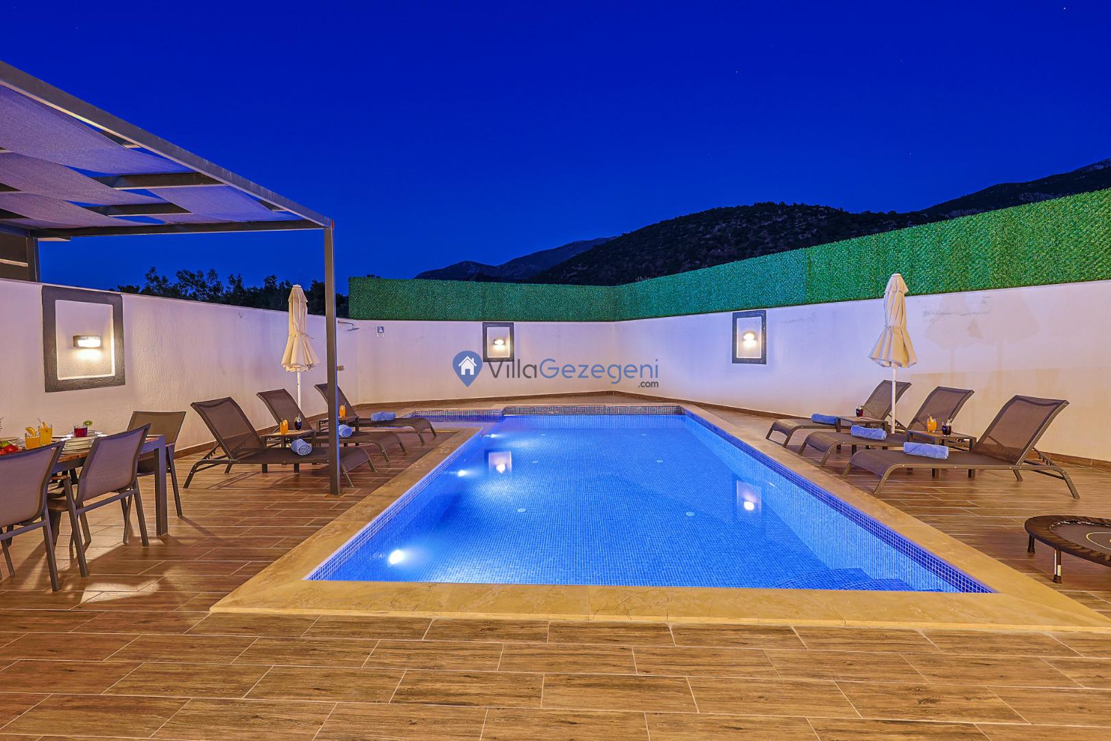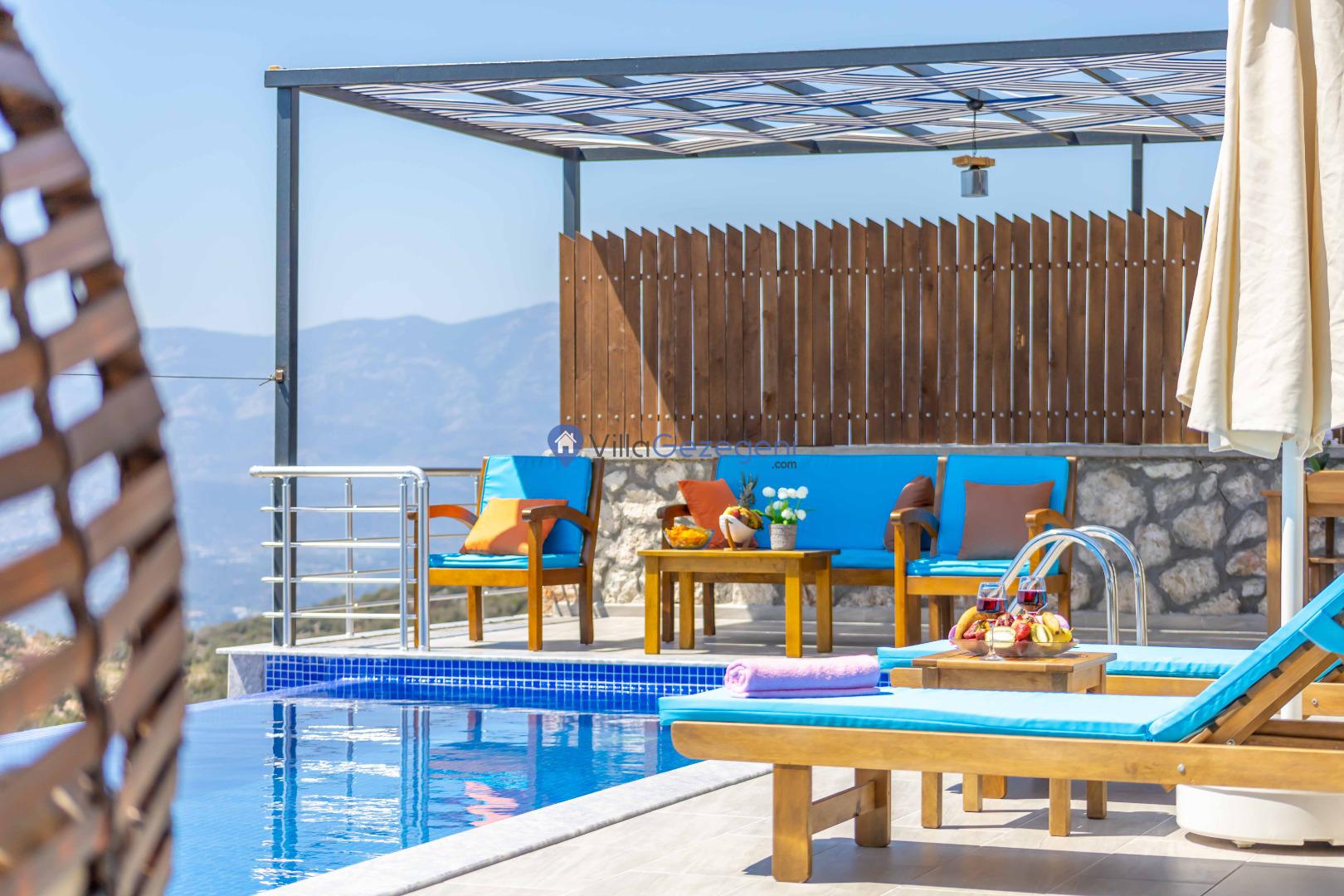 Villa Elena 1,Kalkan Çavdır bölgesinde bulunan 4 kişilik, havuz alanı tam korunaklı kiralık balayı villası
