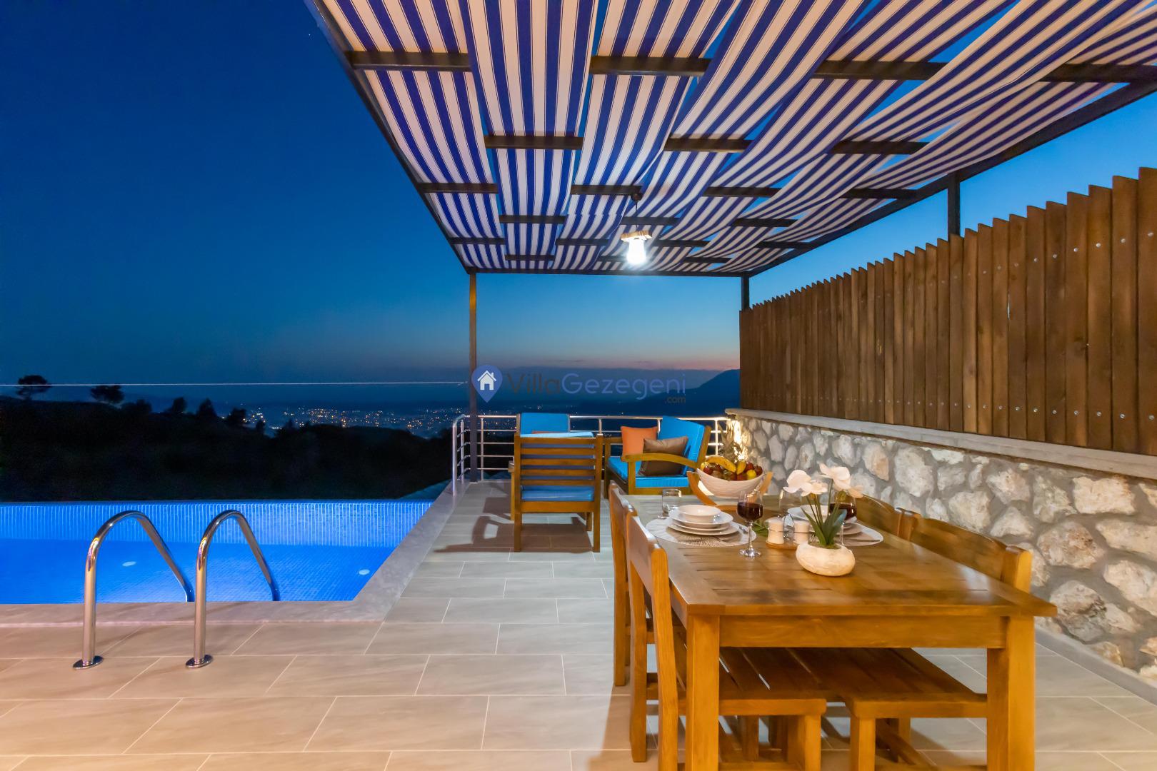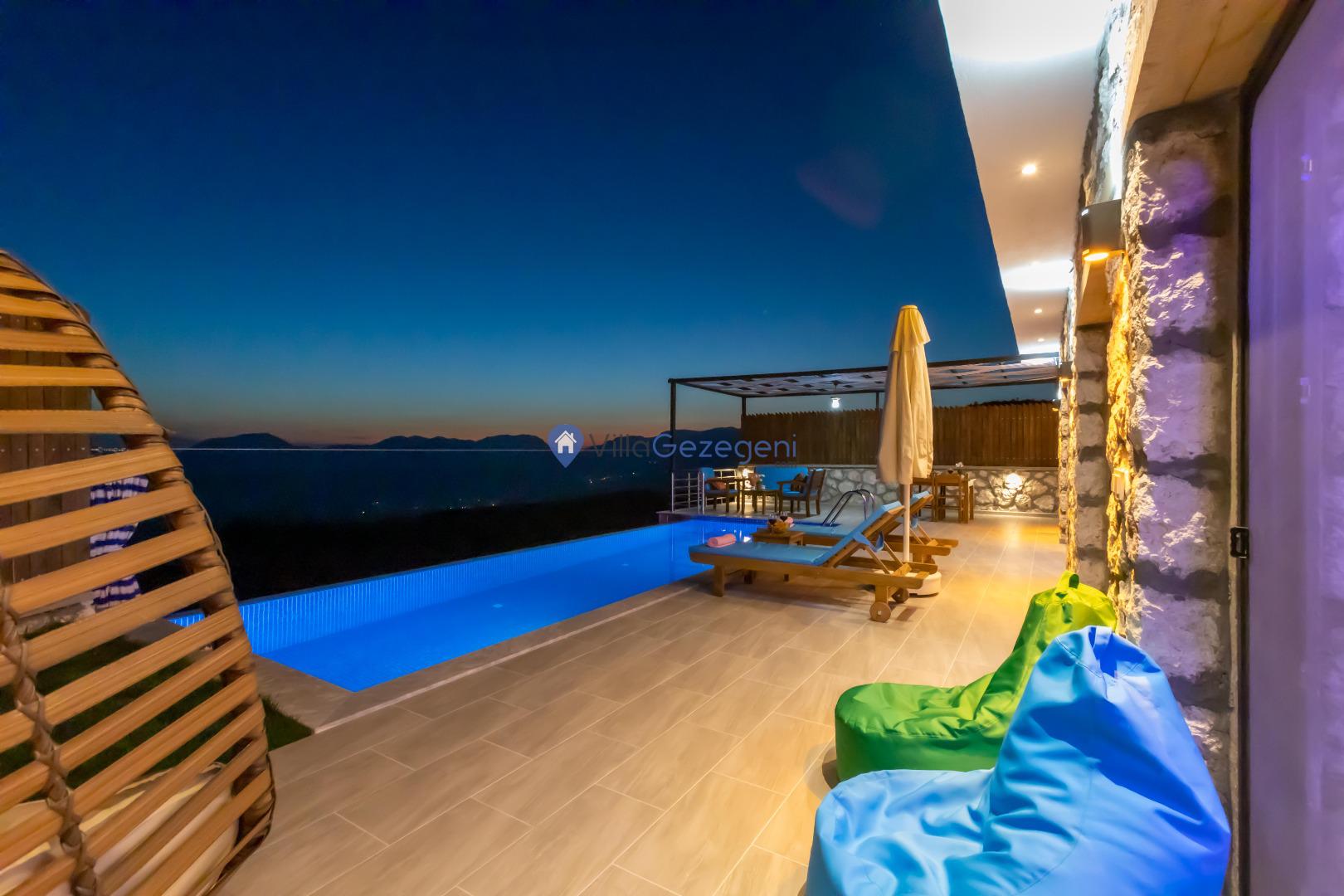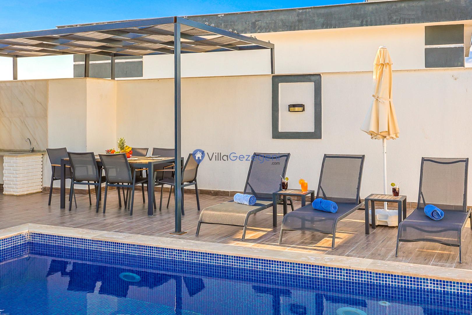Villa Elena 1,Kalkan Çavdır bölgesinde bulunan 4 kişilik, havuz alanı tam korunaklı kiralık balayı villası