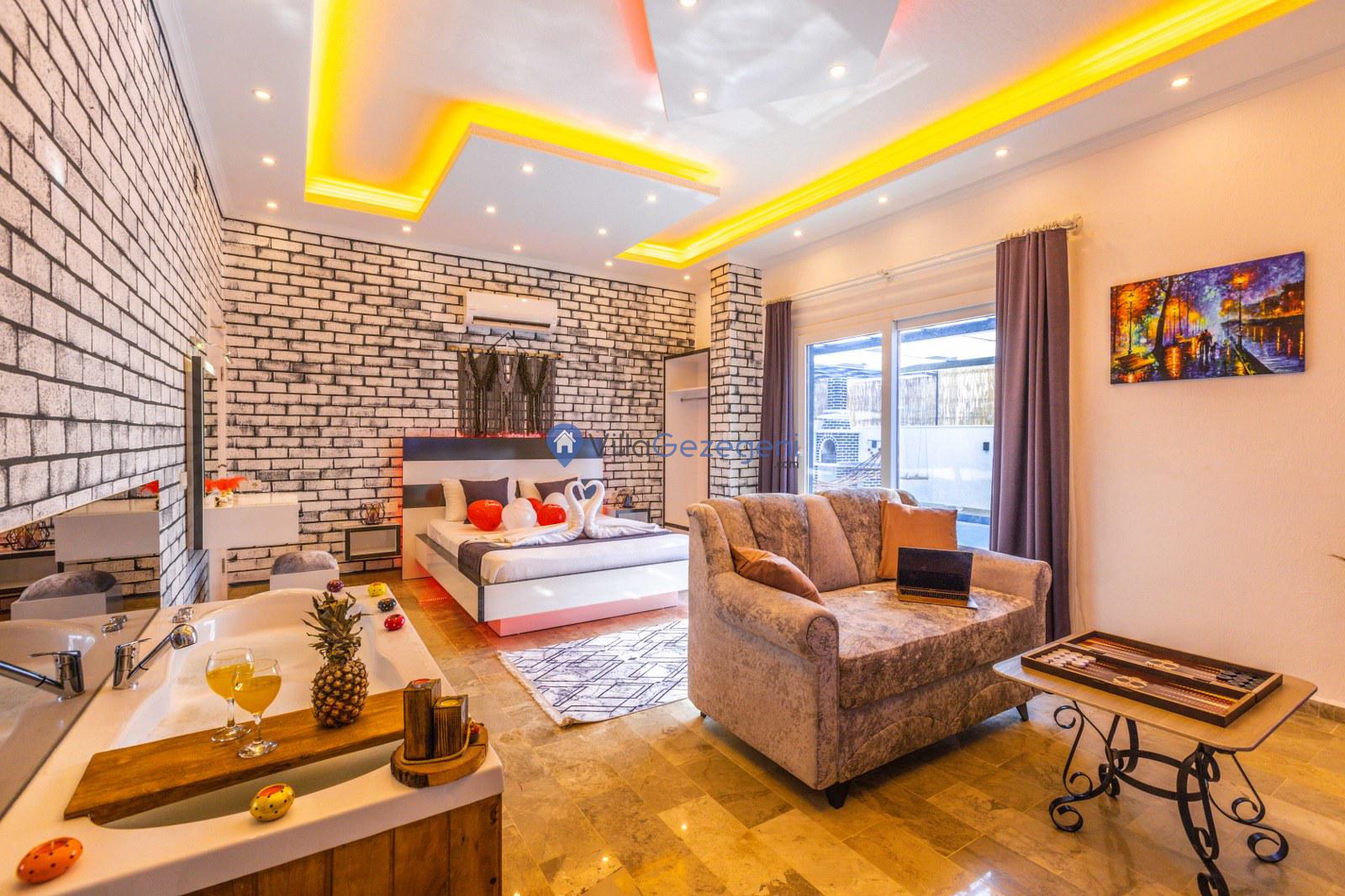 Kalkan Çavdır' da tek yatak odalı 2 kişilik kiralık balayı villası