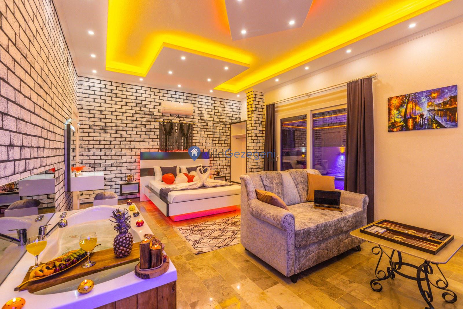 Çavdır'da bulunan 2 odalı jakuzili muhafazakar kiralık balayı villası