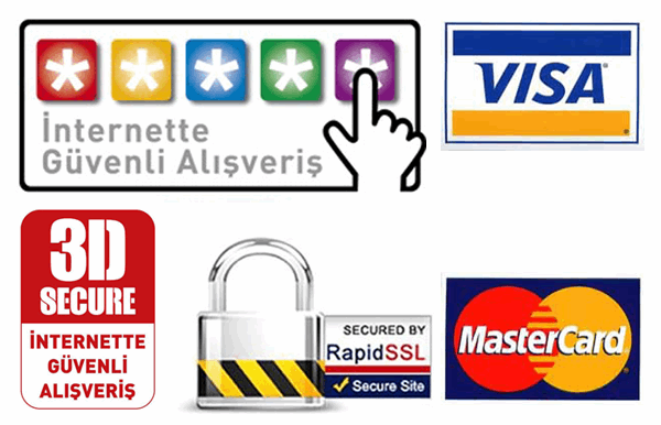 Kredi kartı ve parola gibi gizli bilgiler internet üzerinden aktarılırken SSL protokolü şifreleme sistemi (Çözülmesi İmkansız) ile korunmaktadir.