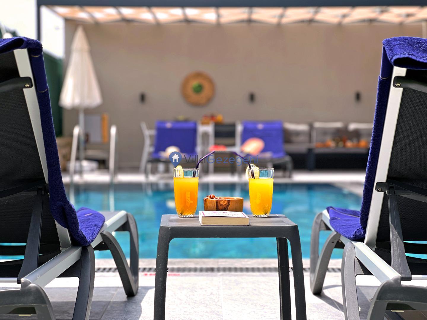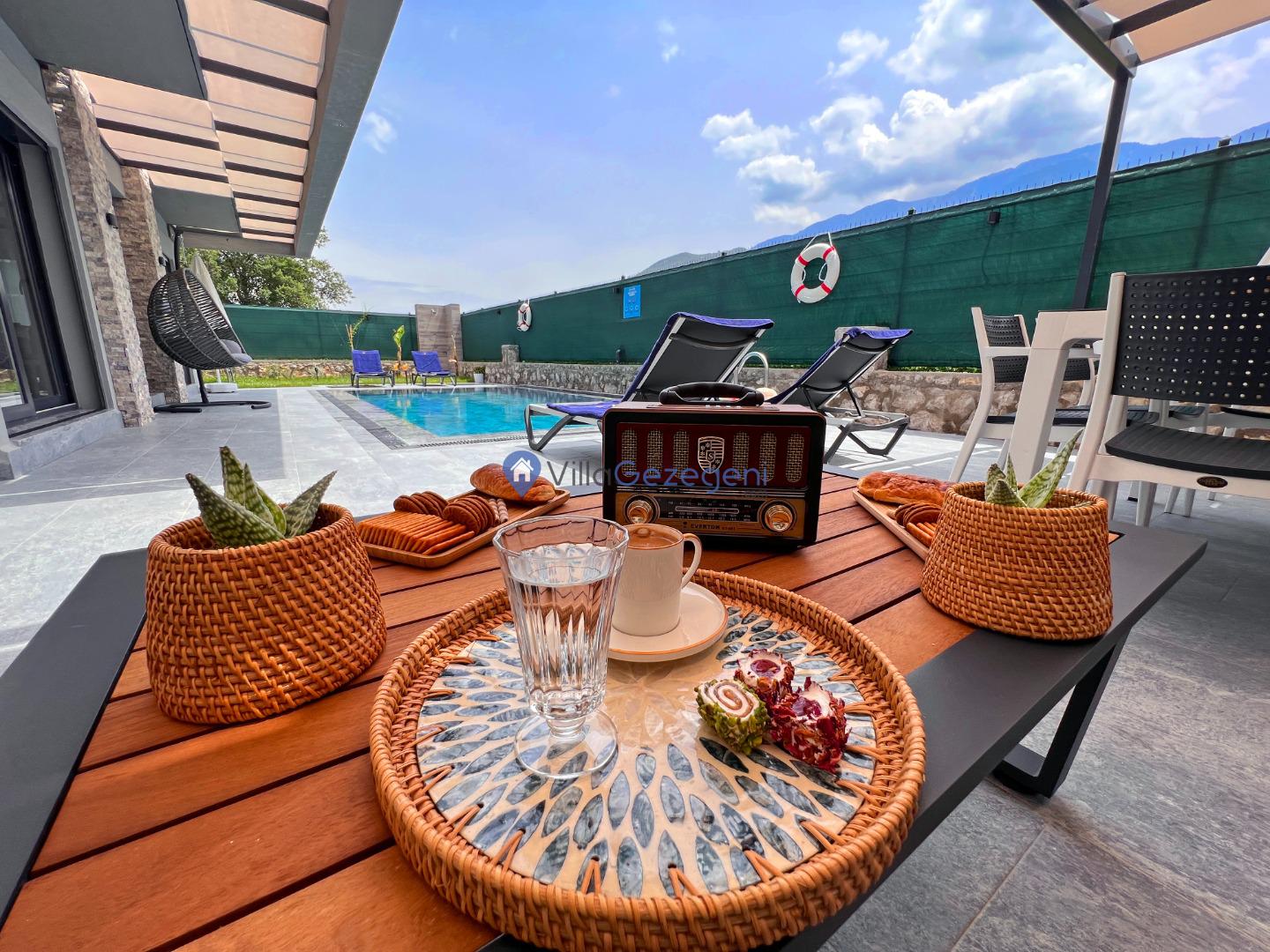 Villa Enbaem ; 4 yatak odalı, lüks markete ve restauranta yakın,özel havuzlu, doğa manzaralı, bahçeli kiralık geniş aile ve arkadaş grubu villası.