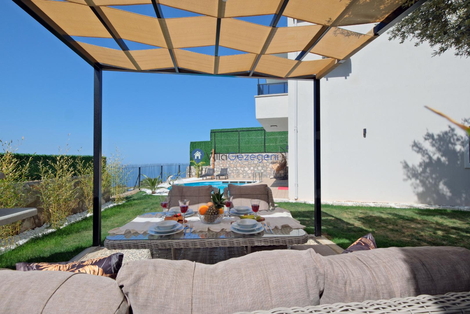 Villa Sonsuz ; 4 yatak odalı, lüks markete ve restauranta yakın,özel havuzlu, deniz manzaralı, bahçeli kiralık geniş aile ve arkadaş grubu villası.