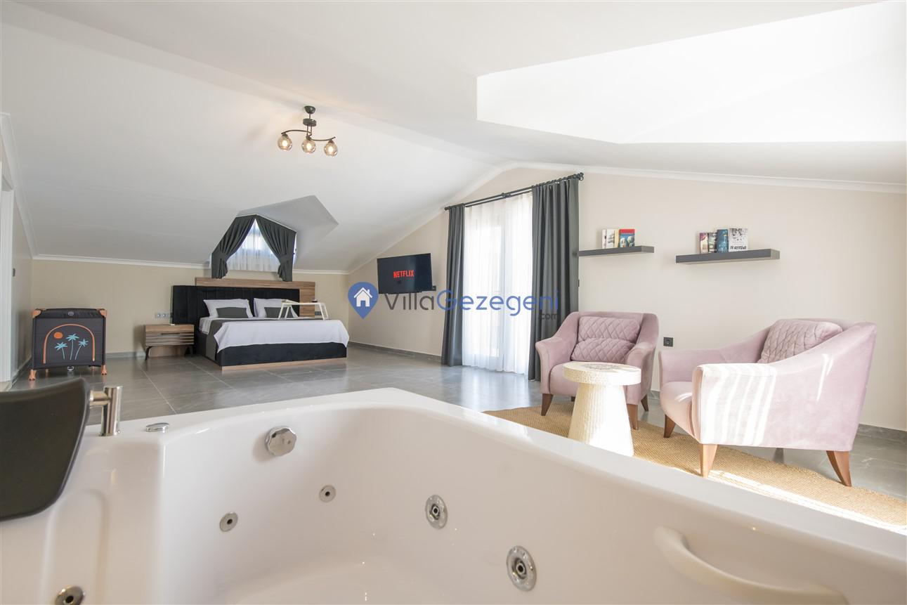 Fethiye Çamköy bölgesinde bulunan 6 kişi kapasiteli geniş aile ve arkadaş grupları için uygun kiralık villası.