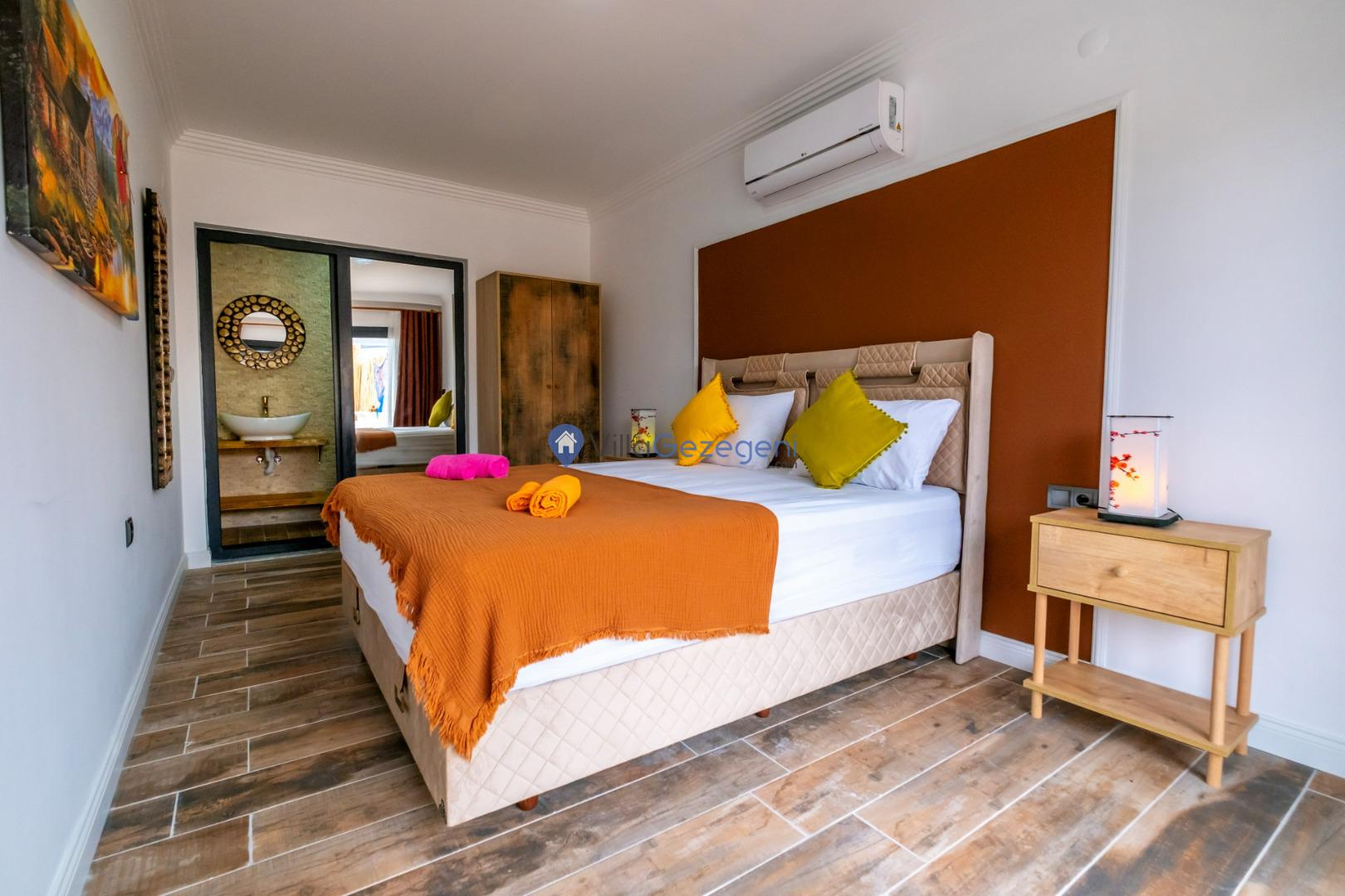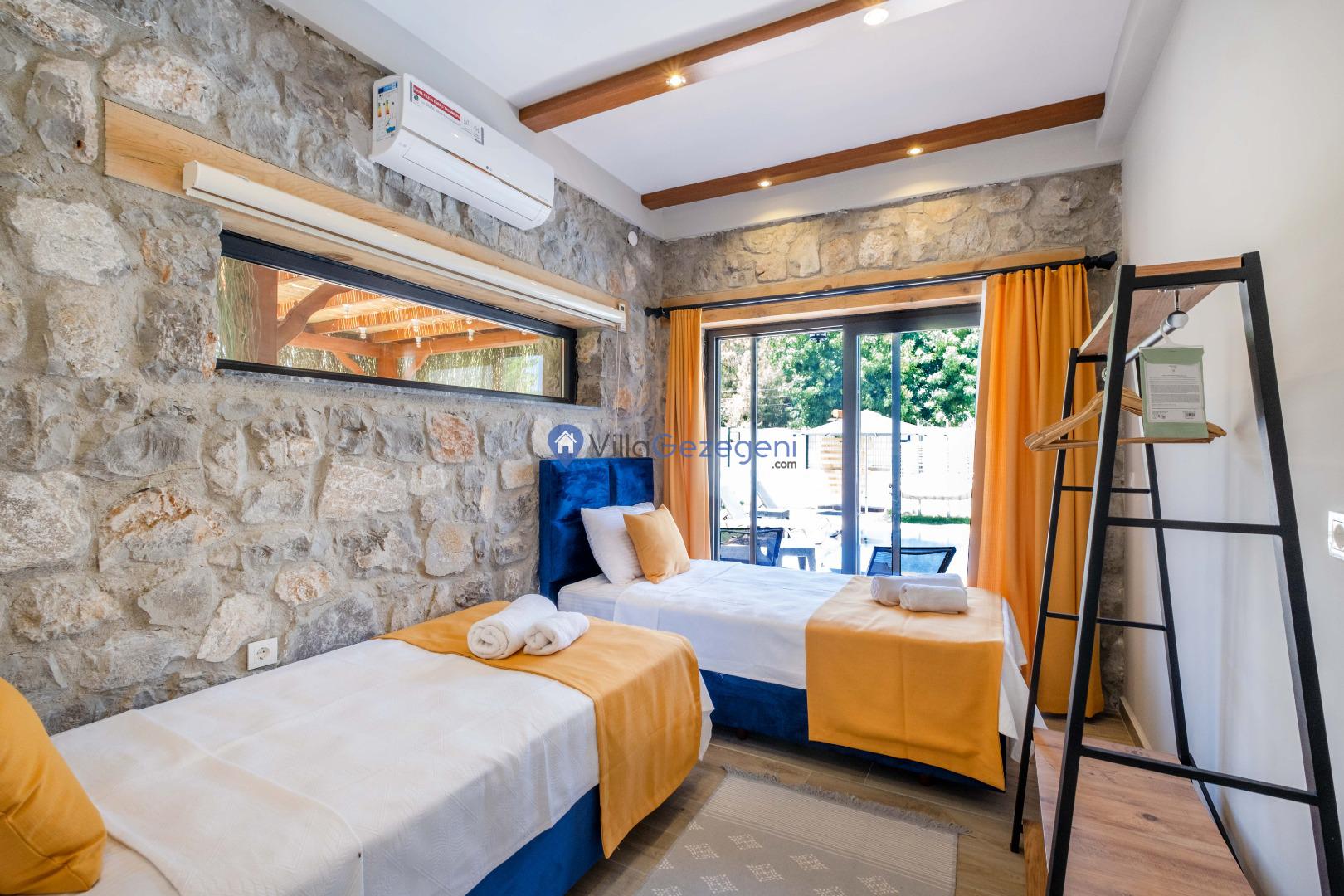 Muğla/Fethiye/Çiftlik bölgesinde yer alan 2 yatak odalı 4 kişi kapasiteli tatil villasıdır.