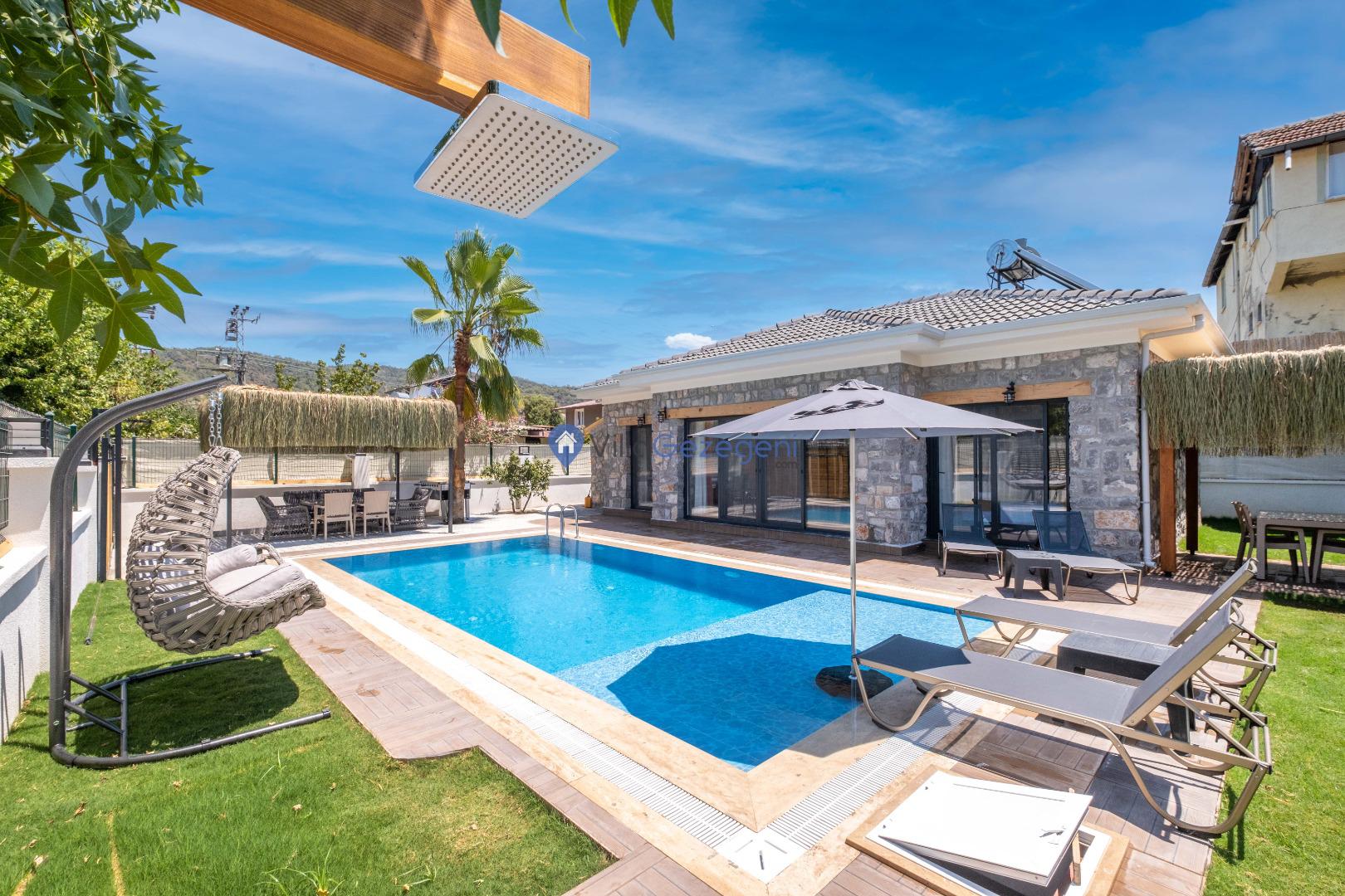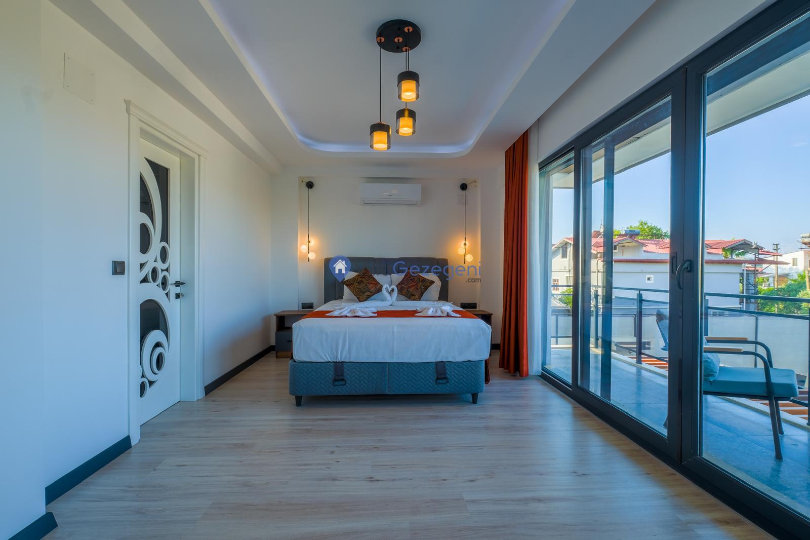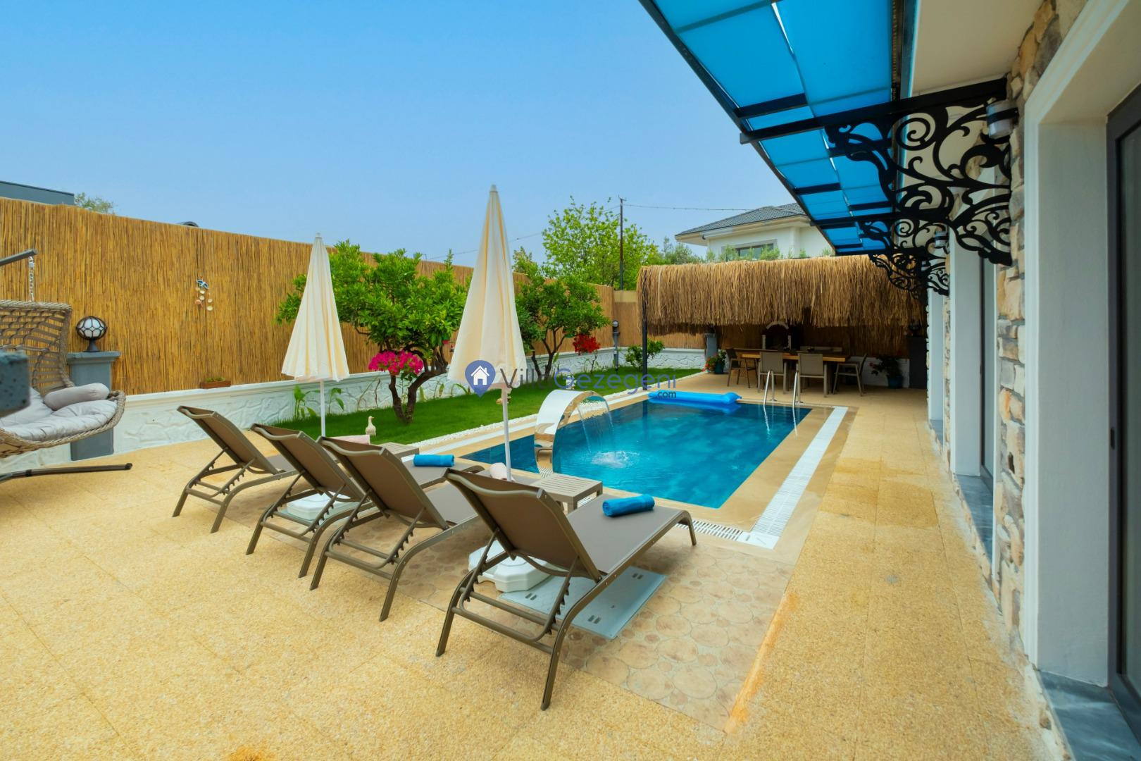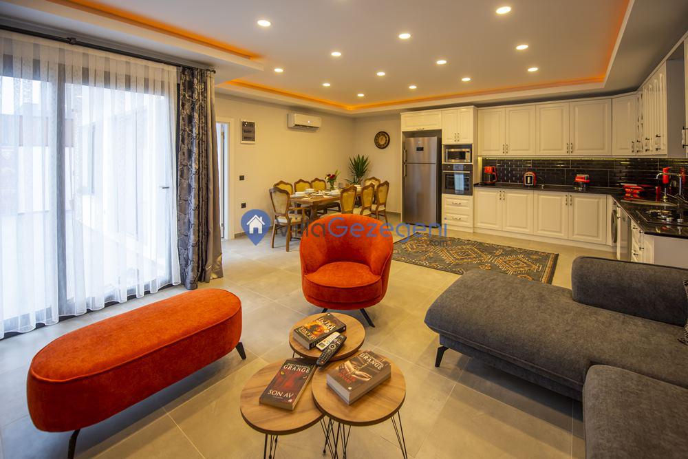 Fethiye/Çiftlik Bölgesinde yer alan 3 yatak odalı 6 kişi kapasiteli geniş aile ve arkadaş grupları için uygun kiralık tatil villası.