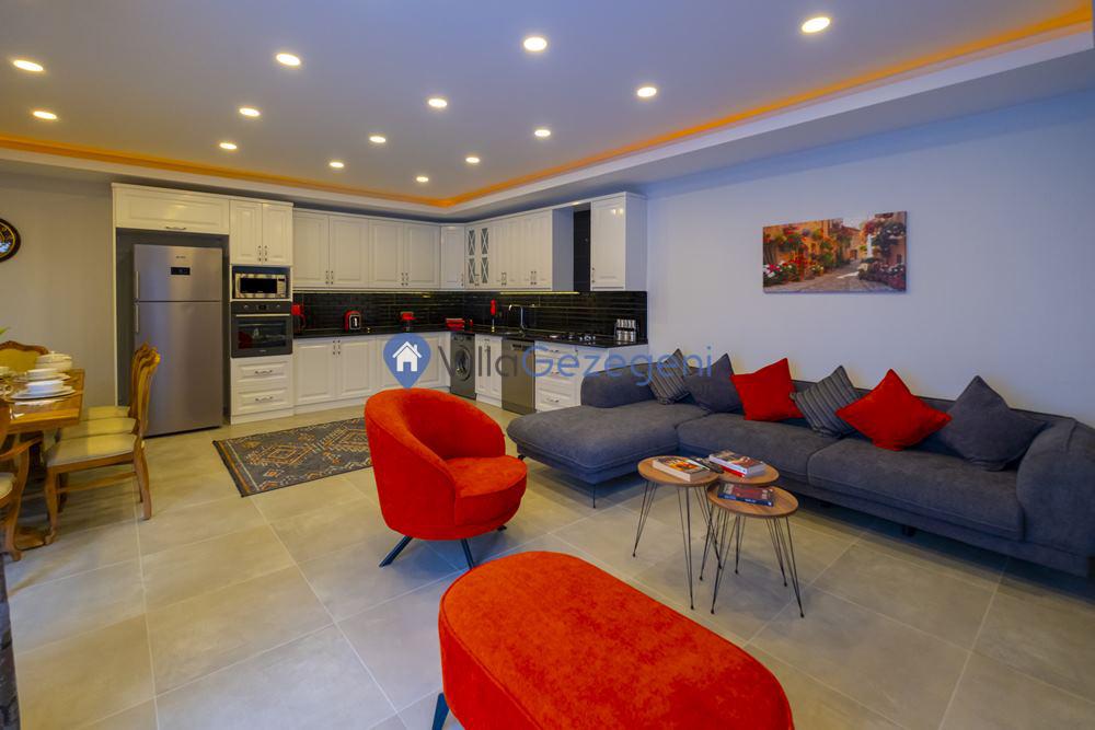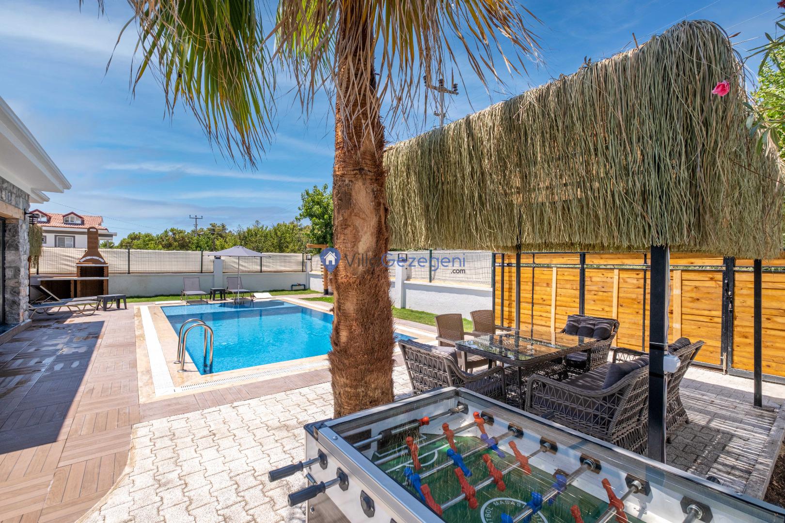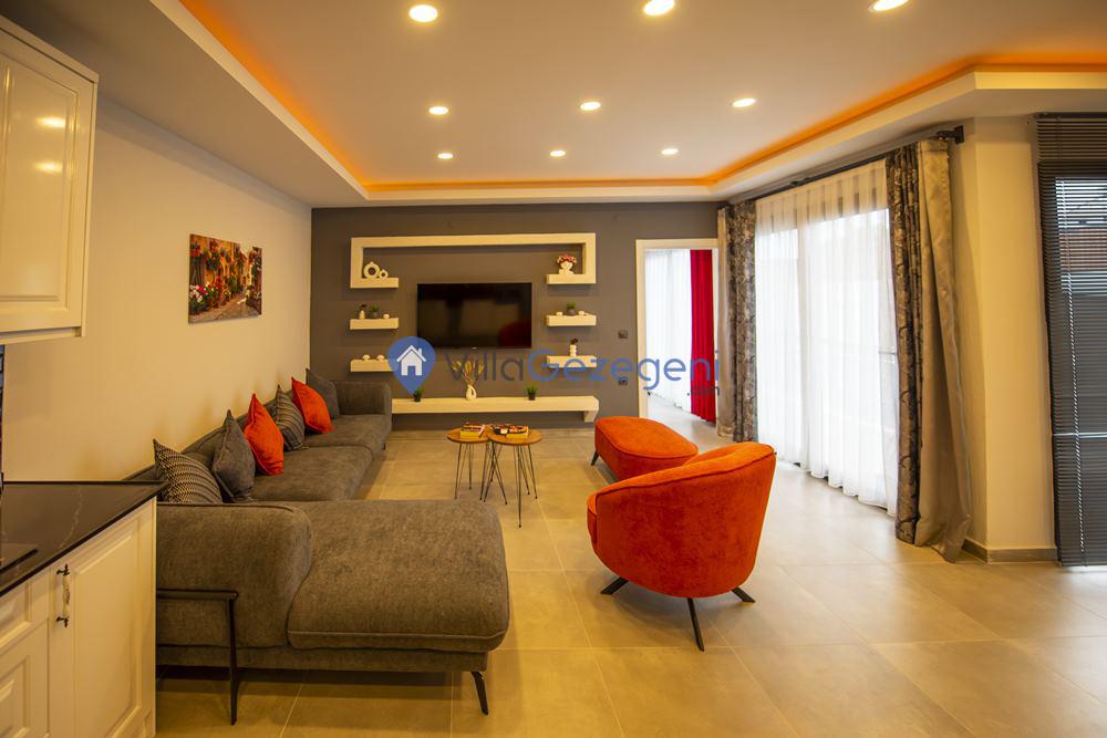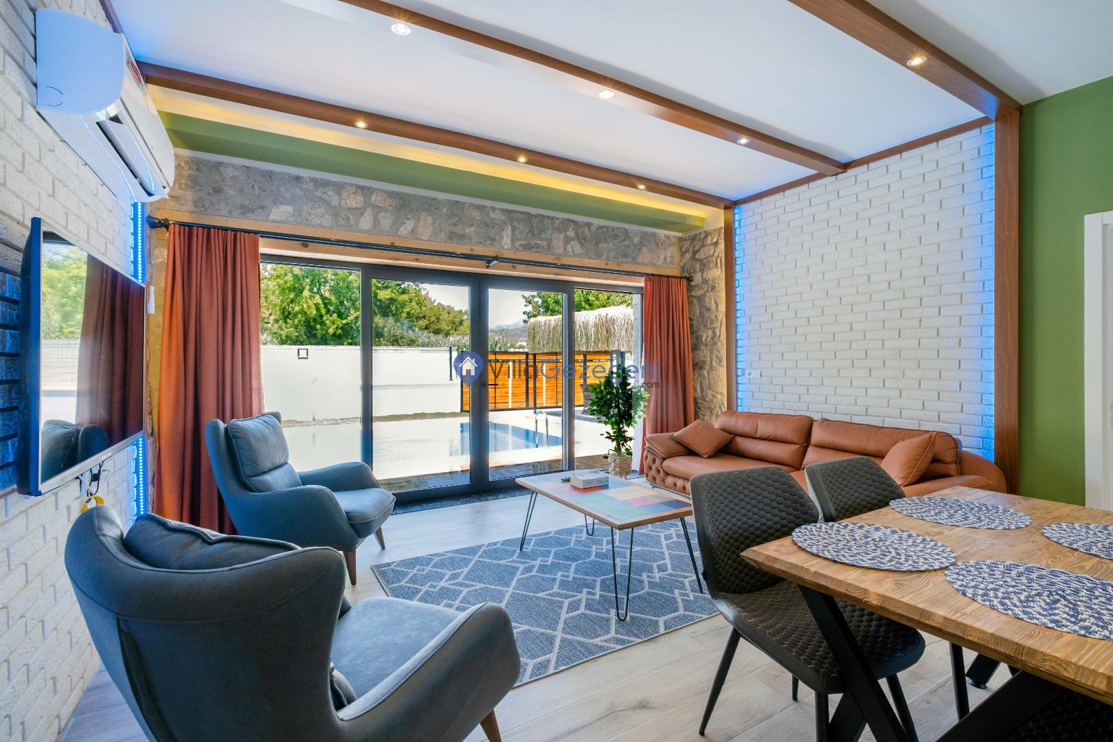 Fethiye/Çiftlik Bölgesinde yer alan 3 yatak odalı 6 kişi kapasiteli geniş aile ve arkadaş grupları için uygun kiralık tatil villası.