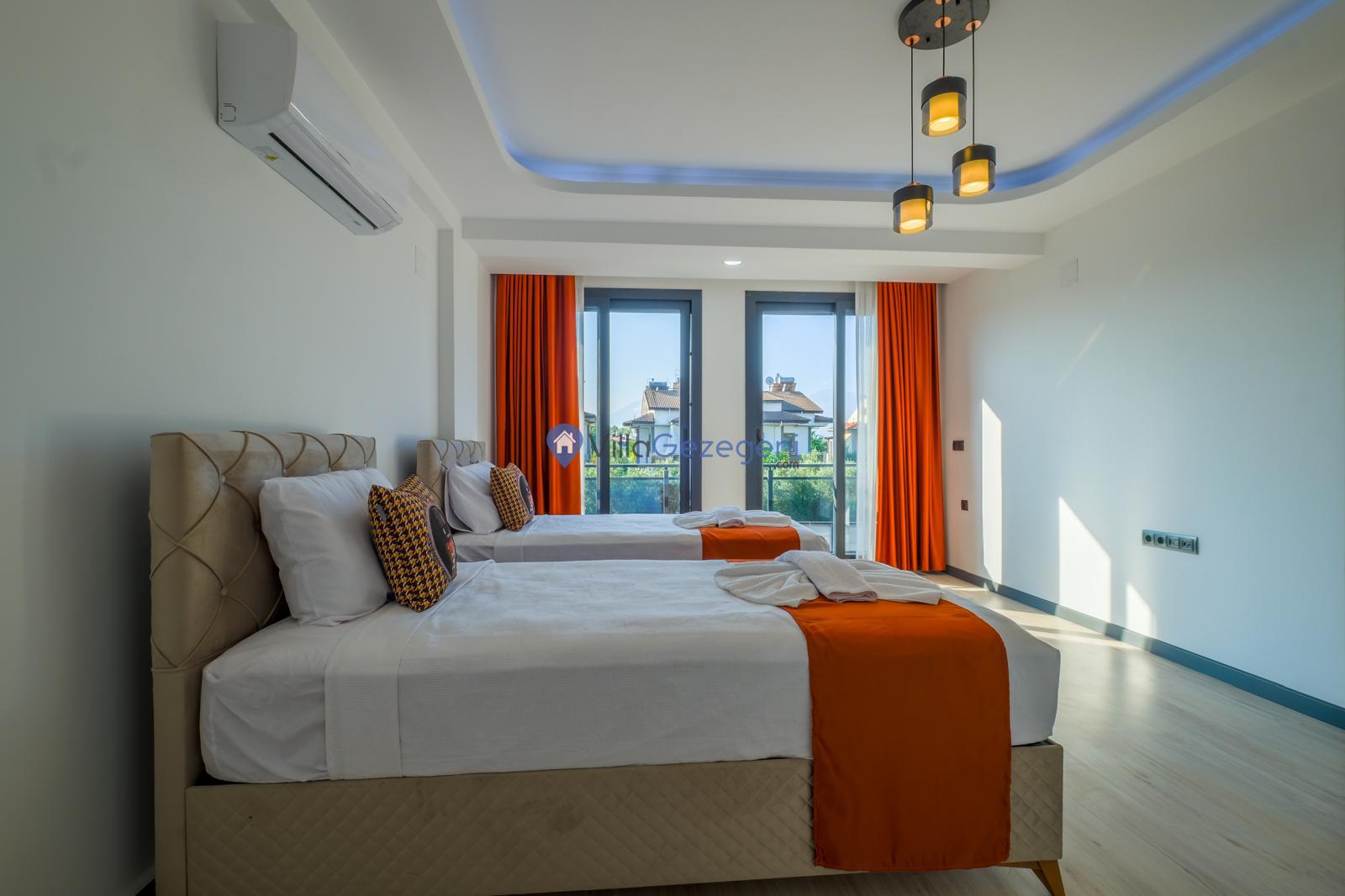 Fethiye Çiftlik bölgesinde yer alan 4 yatak odalı 8 kişi kapasiteli geniş aile ve arkadaş grupları için uygun kiralık tatil villası.