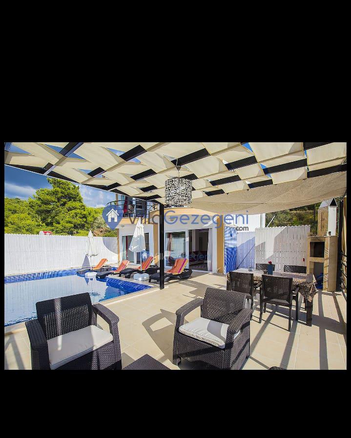 Kaş/Kalkan/Sarıbelen Bölgesinde yer alan 2 yatak odalı 4 kişi kapasiteli; doğa içerisinde havuzu korunaklı tatil villası