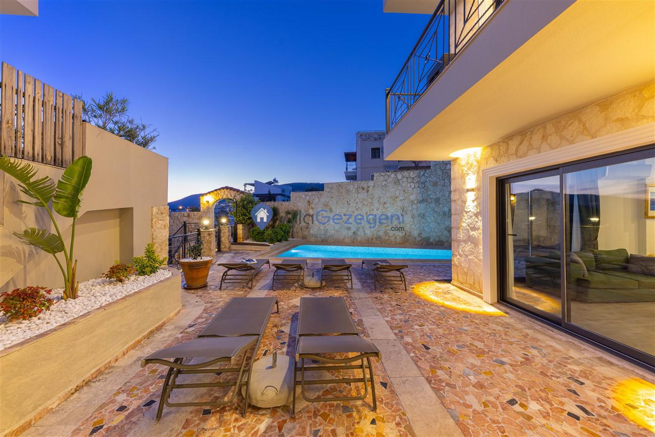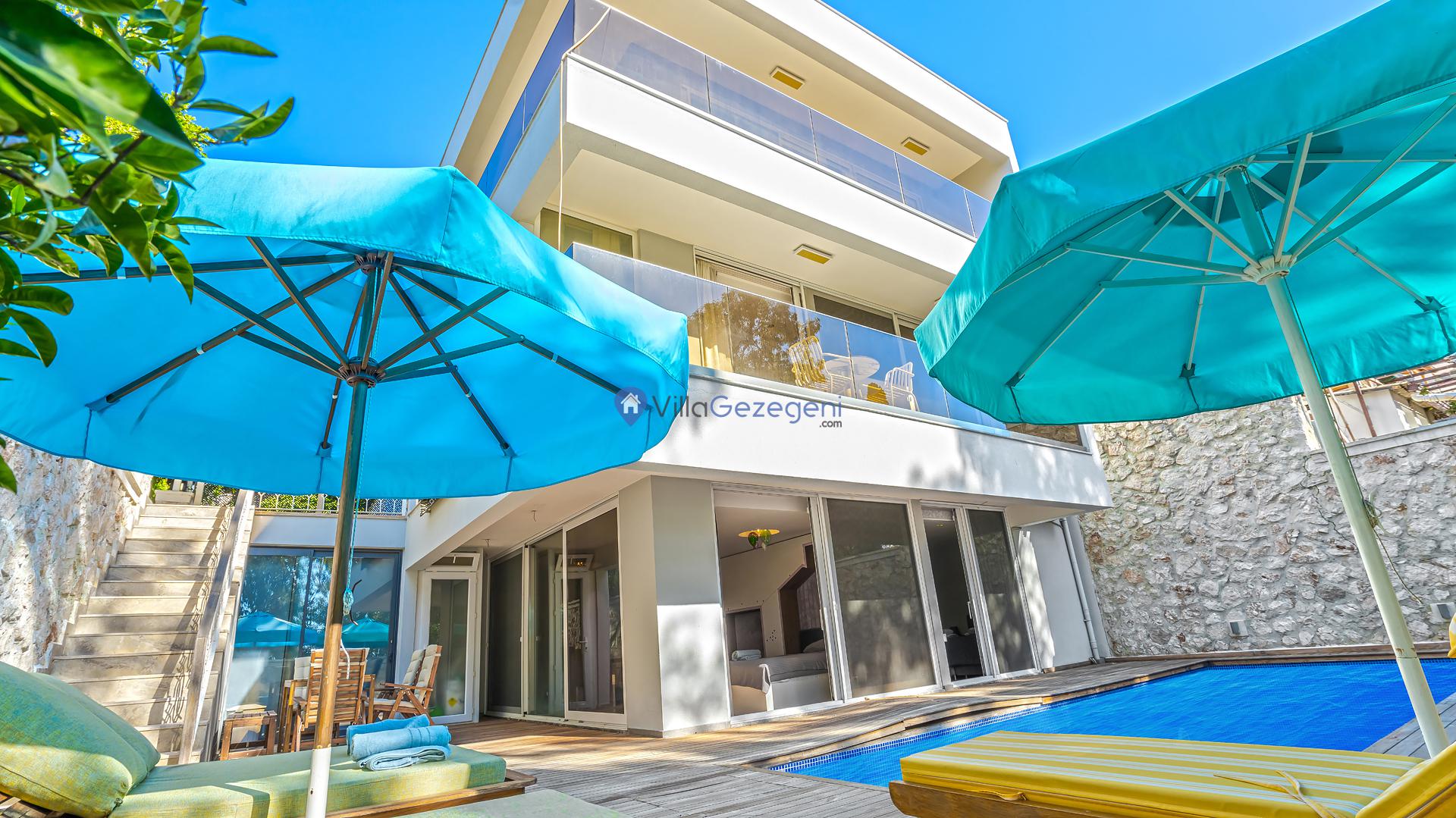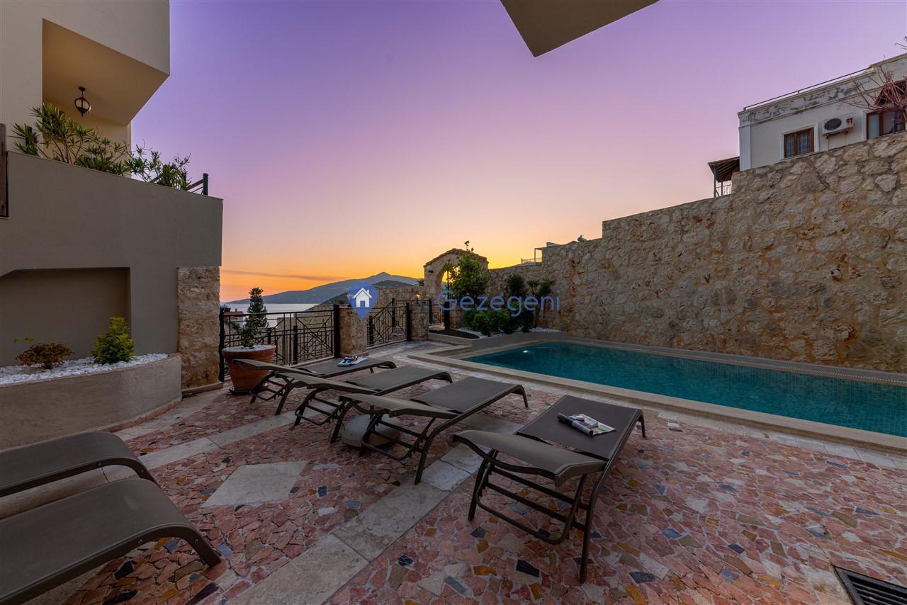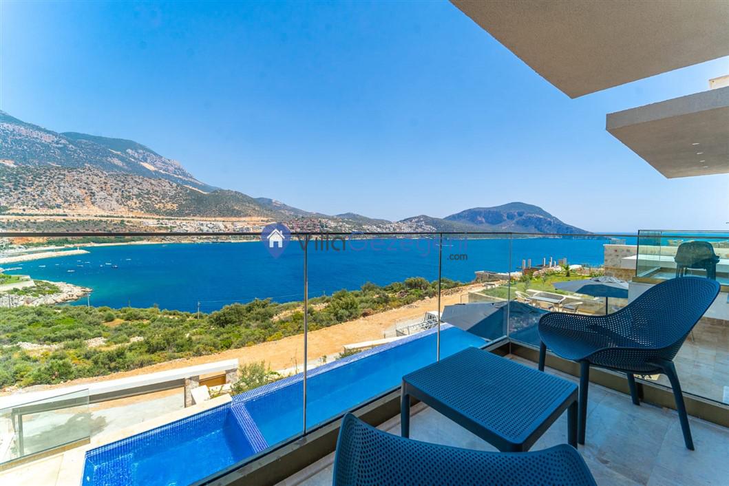 Kaş Kalkan Merkezde yer alan 4 yatak odalı 8 kişi kapasiteli deniz manzaralı lüks tatil villası.