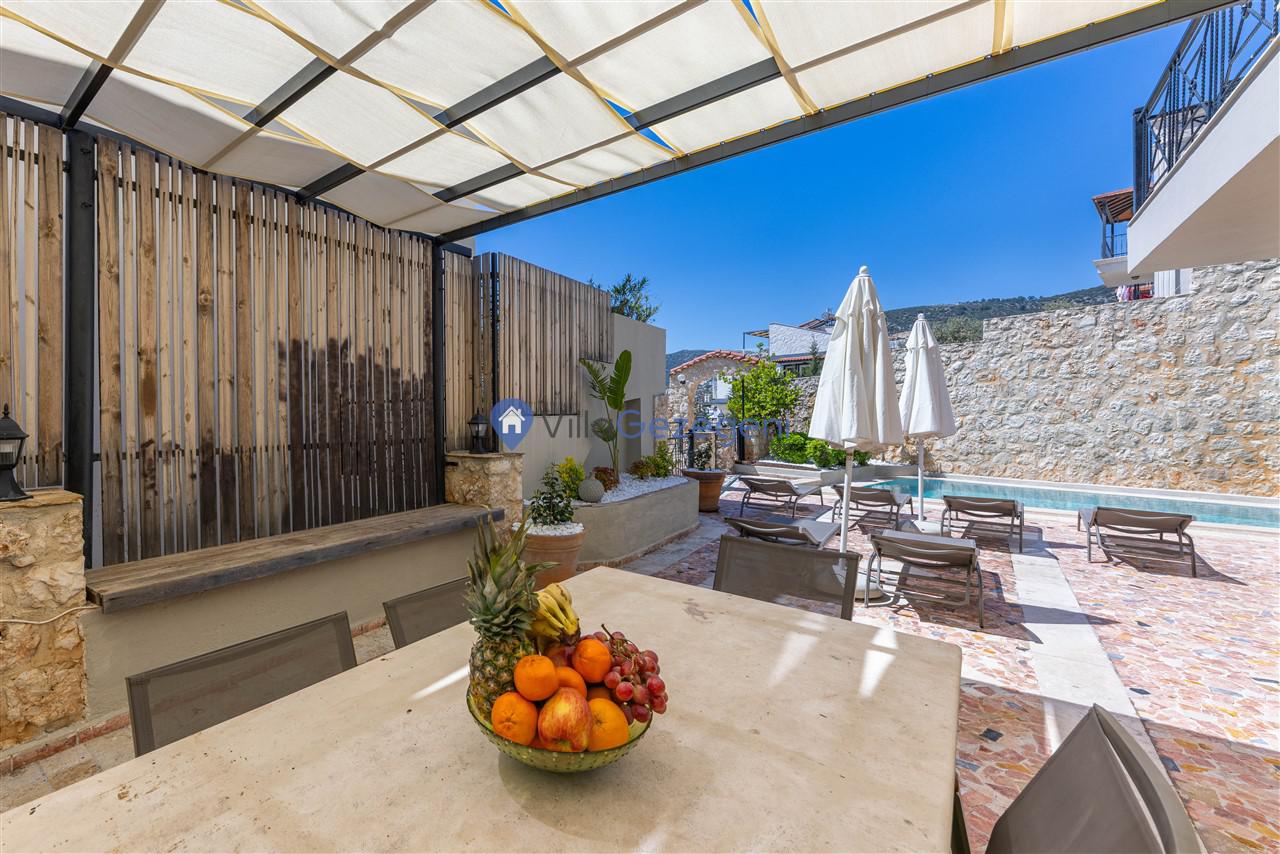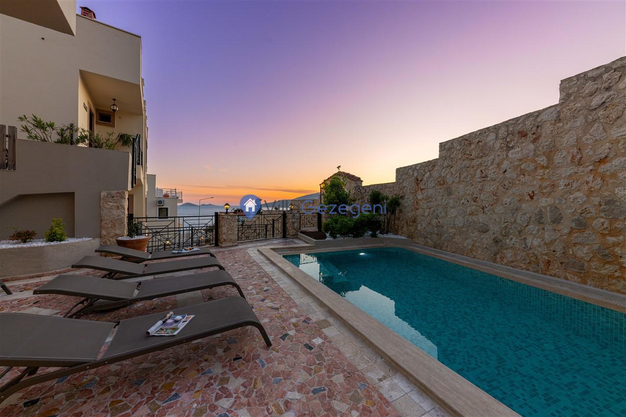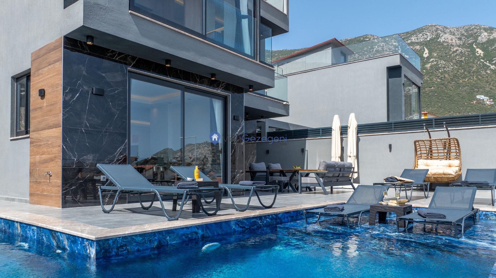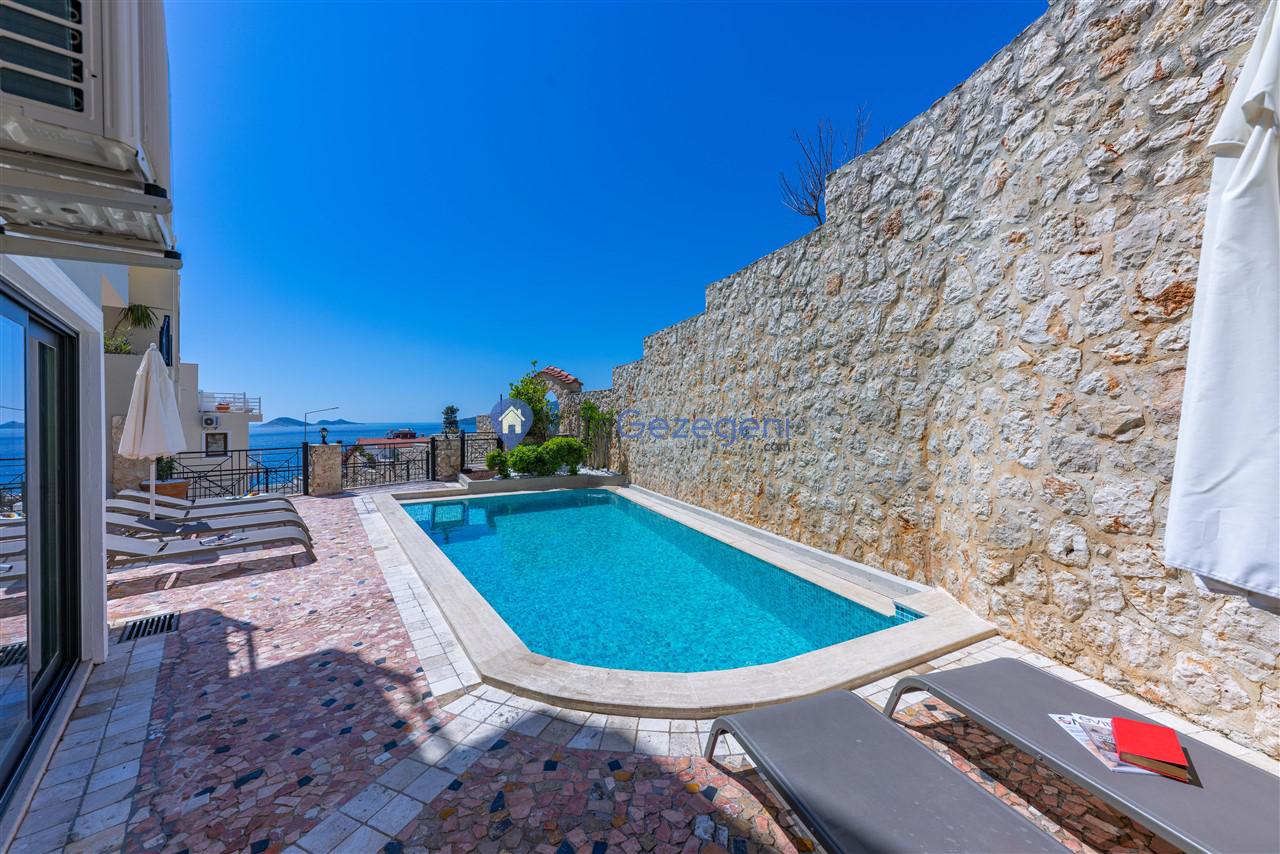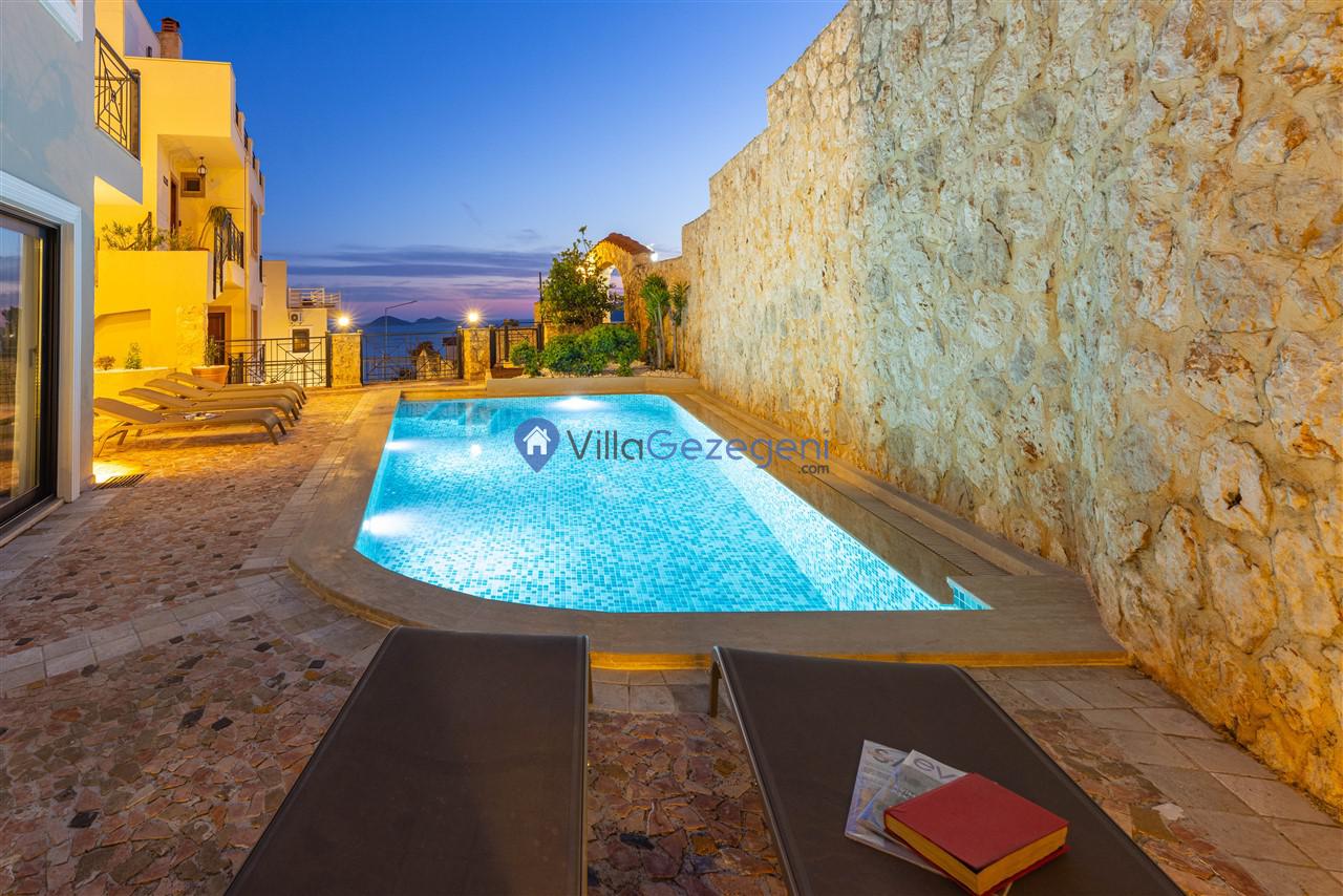 Kaş Kalkan Merkezde yer alan 4 yatak odalı 8 kişi kapasiteli deniz manzaralı lüks tatil villası.