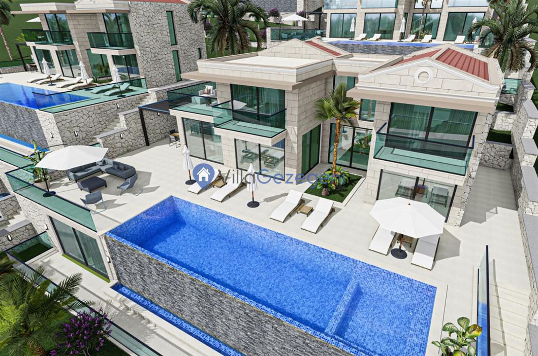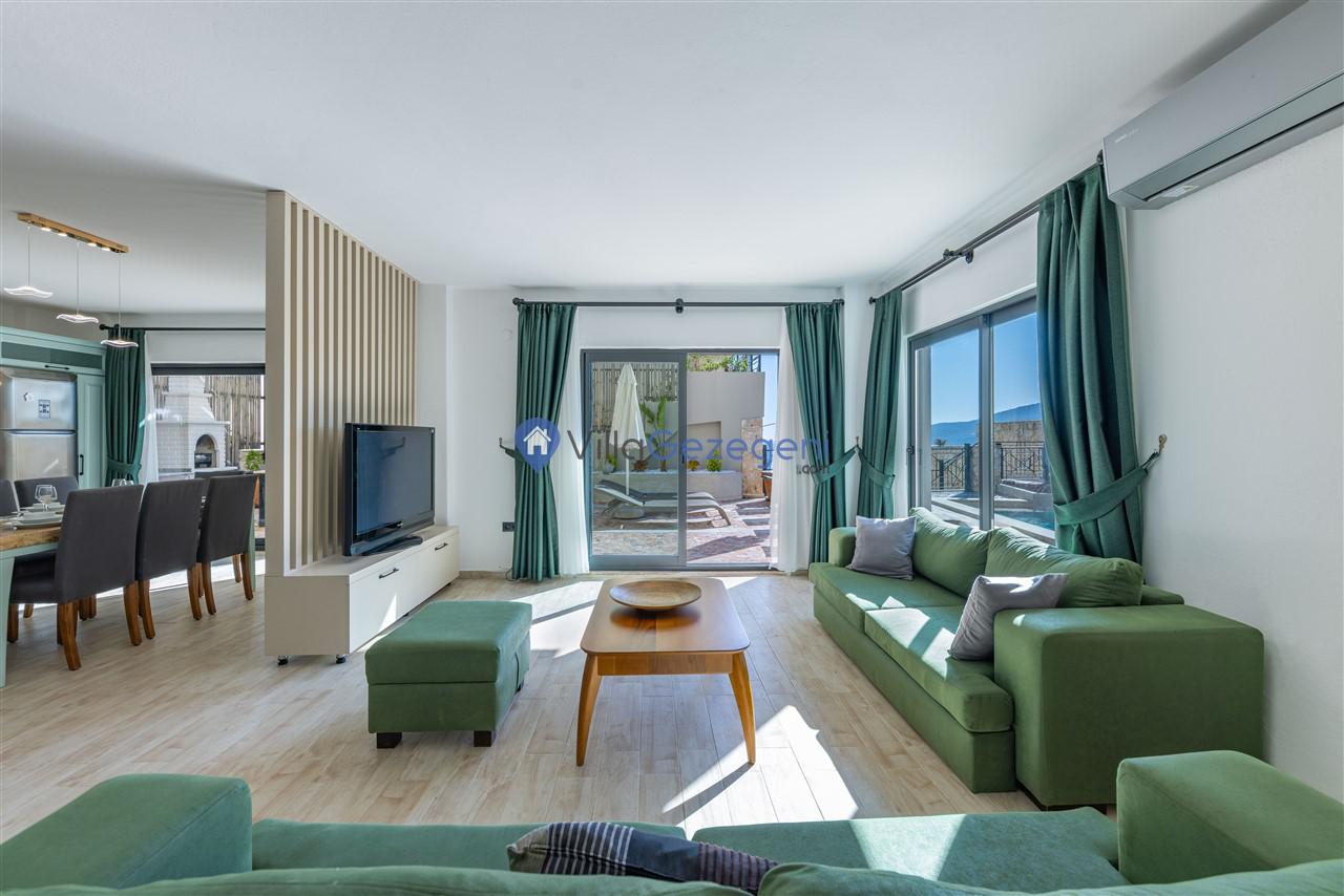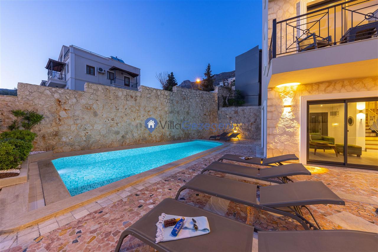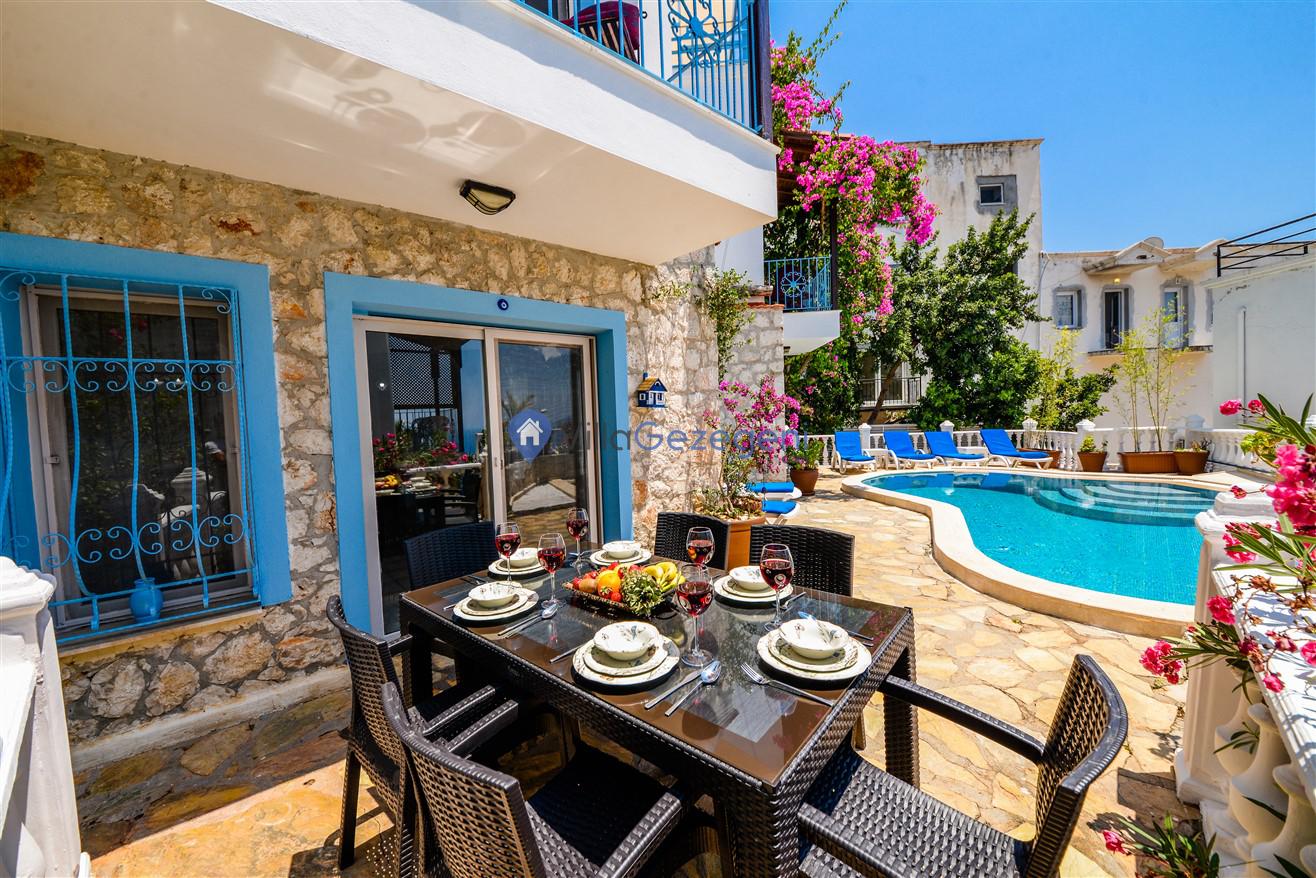 Kaş Kalkan Merkezde yer alan 4 yatak odalı 8 kişi kapasiteli deniz manzaralı lüks tatil villası.