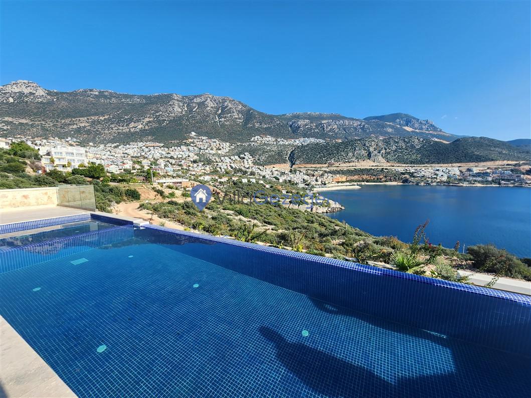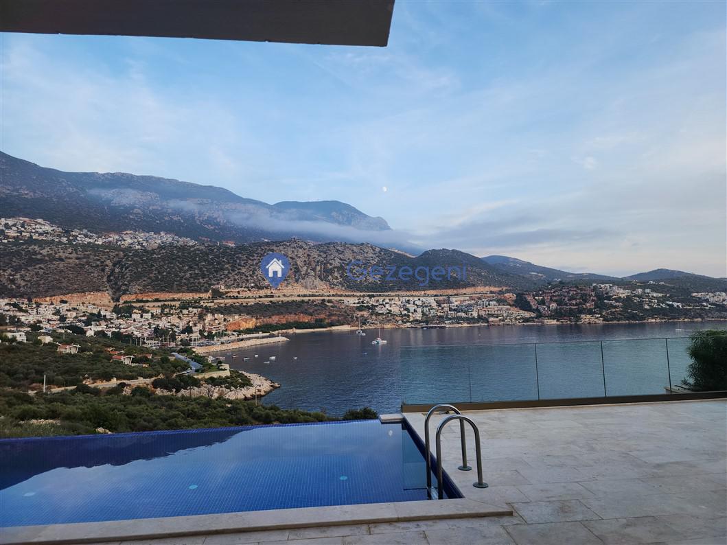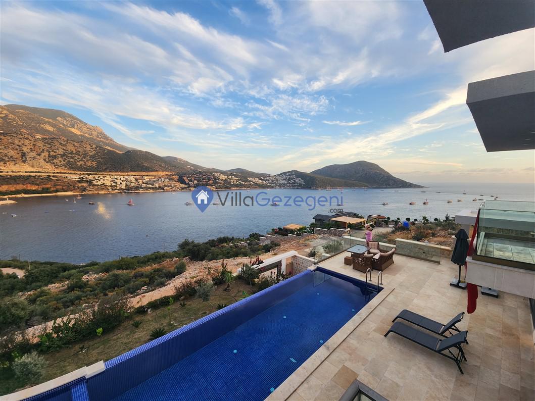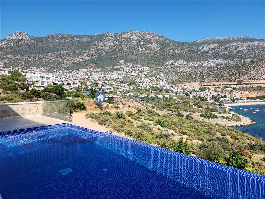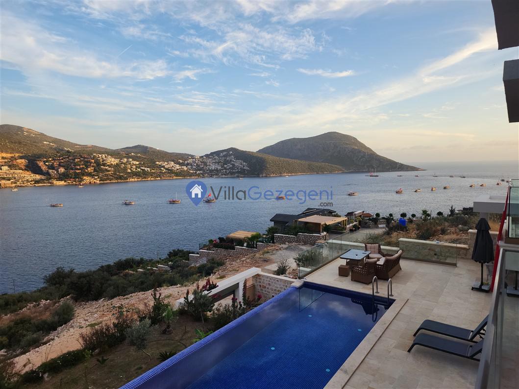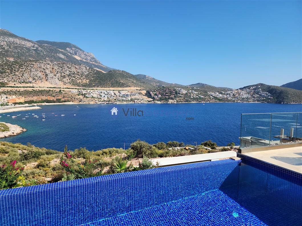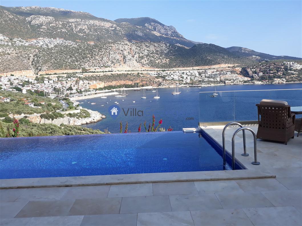Kaş/Kalkan Merkez Mevkii'nde yer alan 4 yatak odalı 8 kişi kapasiteli deniz manzaralı lüks kiralık villa.