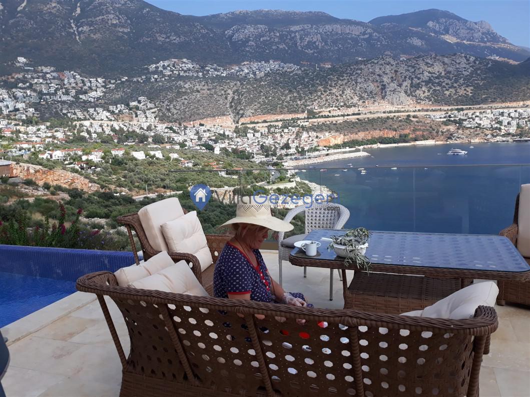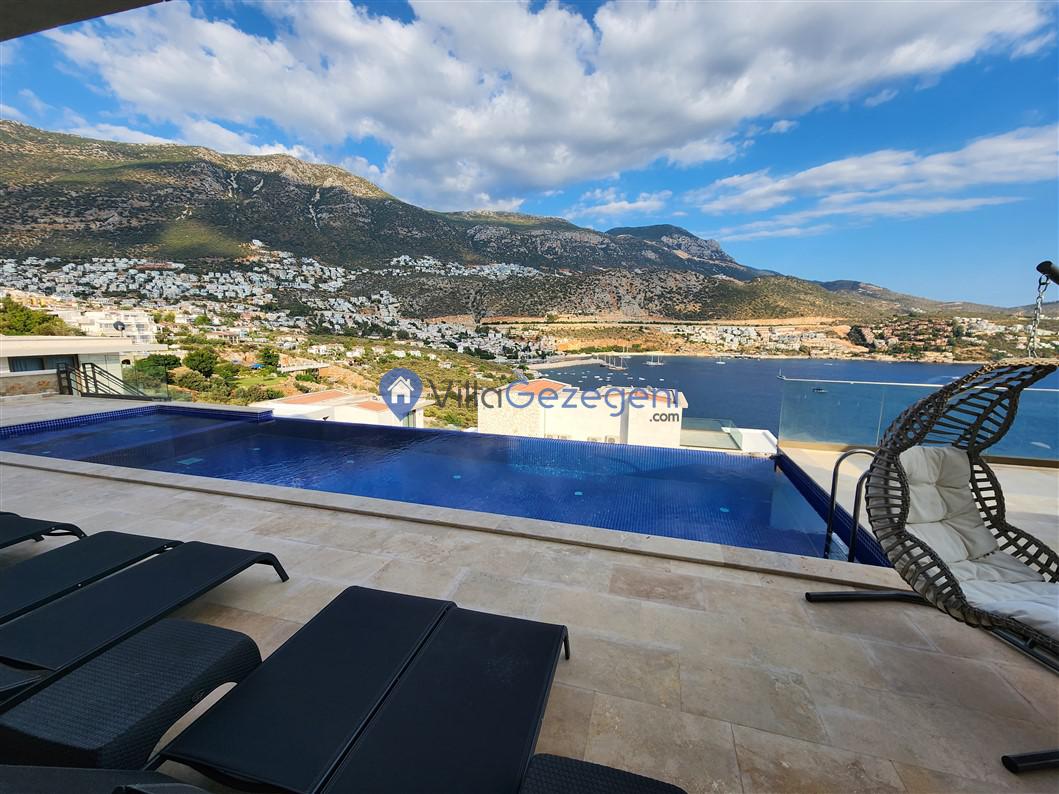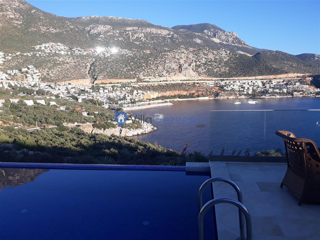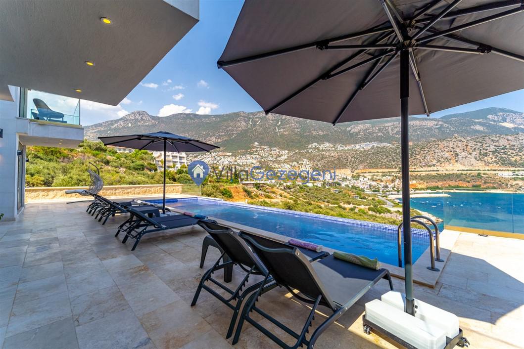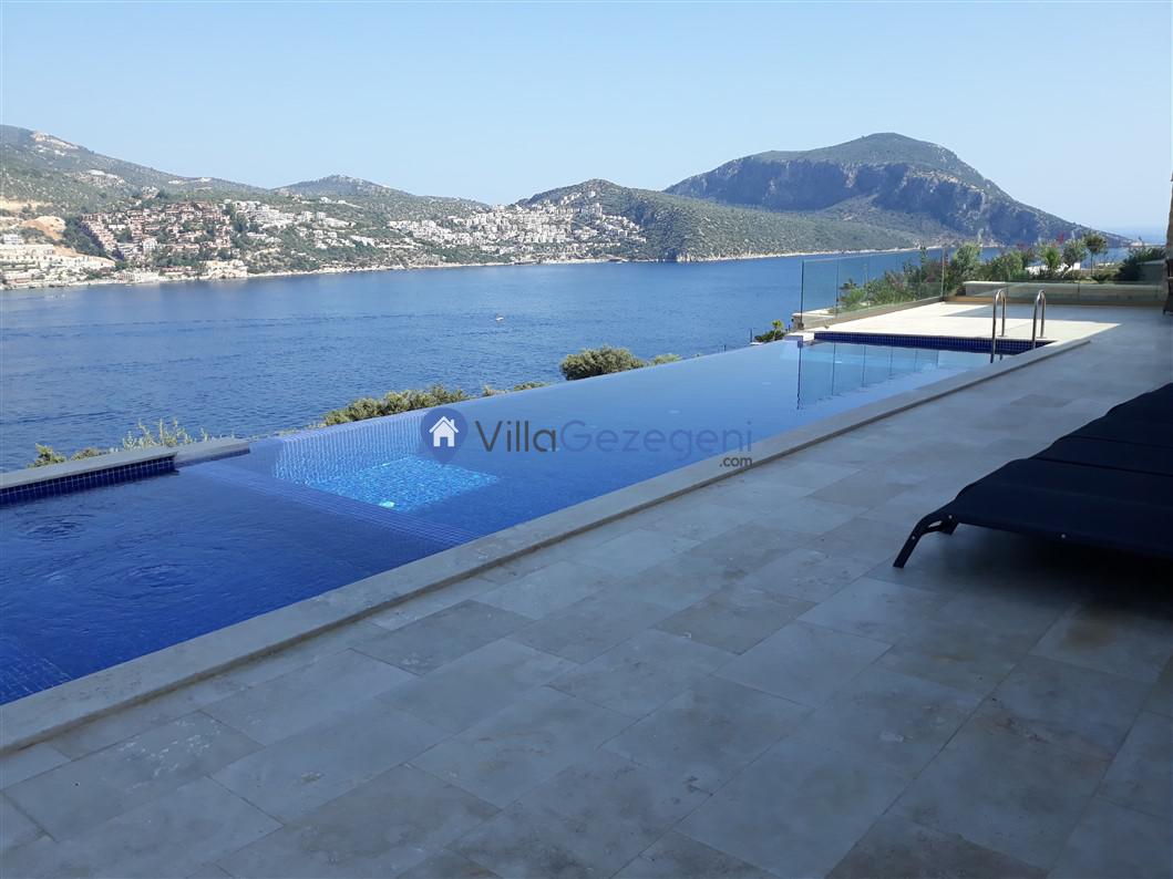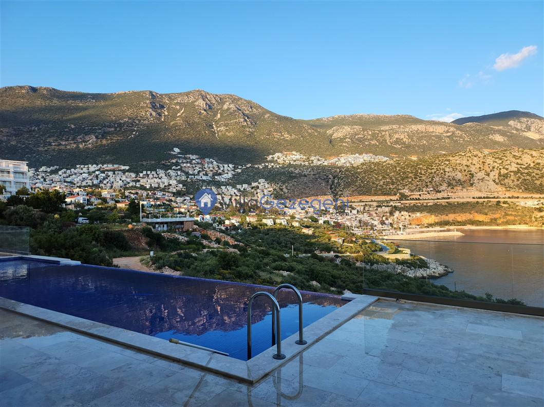 Kaş/Kalkan Merkez Mevkii'nde yer alan 4 yatak odalı 8 kişi kapasiteli deniz manzaralı lüks kiralık villa.