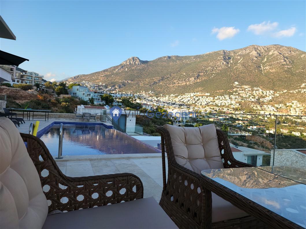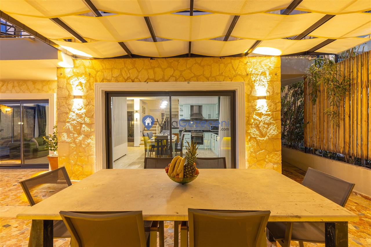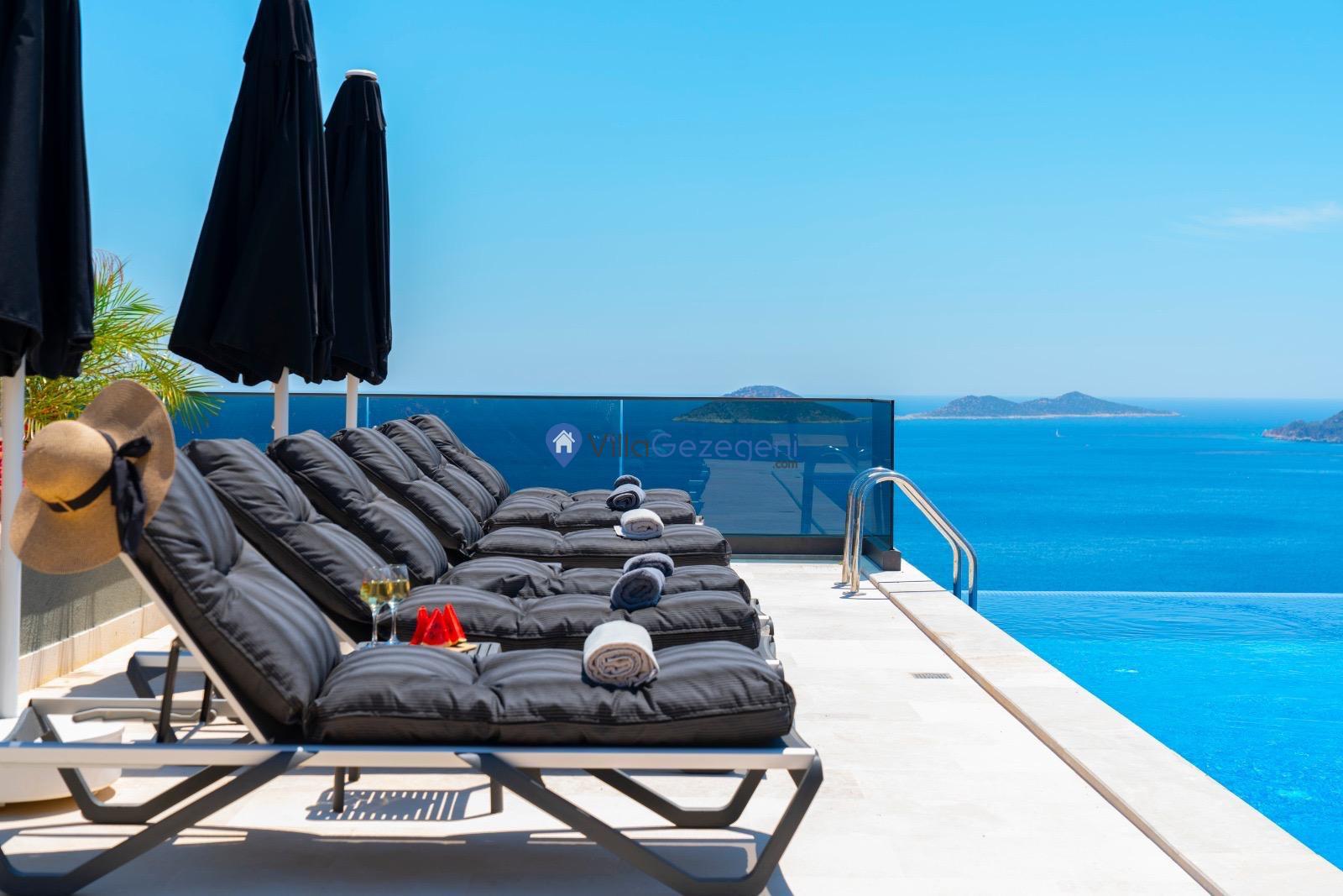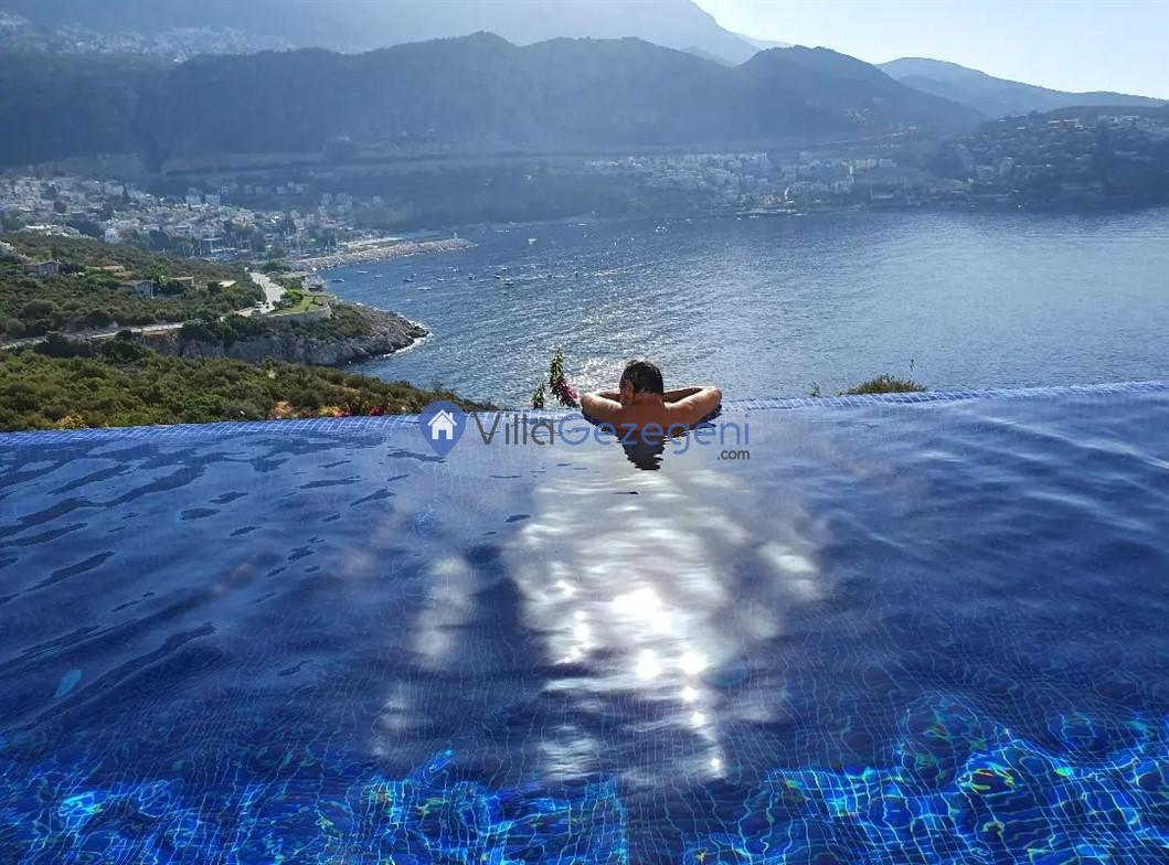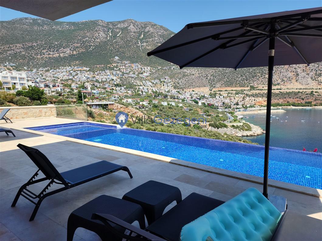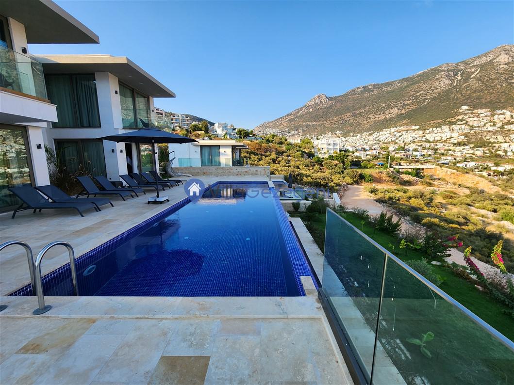 Kaş/Kalkan Merkez Mevkii'nde yer alan 4 yatak odalı 8 kişi kapasiteli deniz manzaralı lüks kiralık villa.