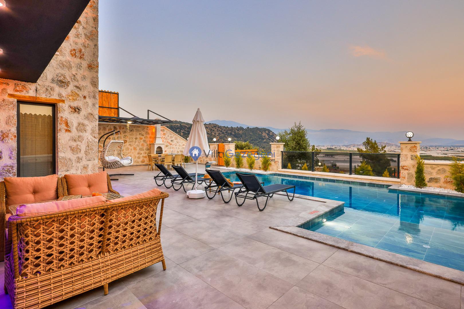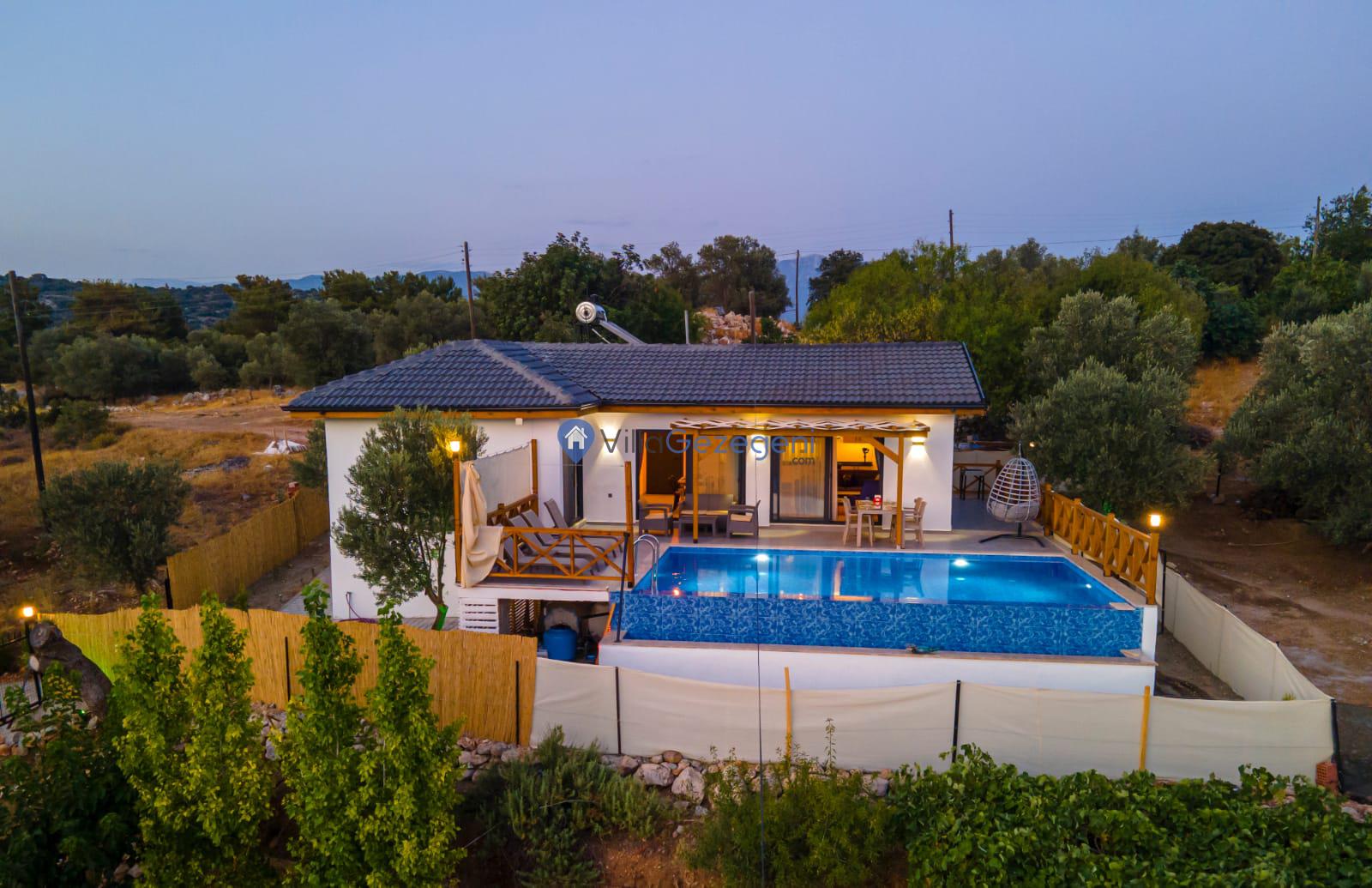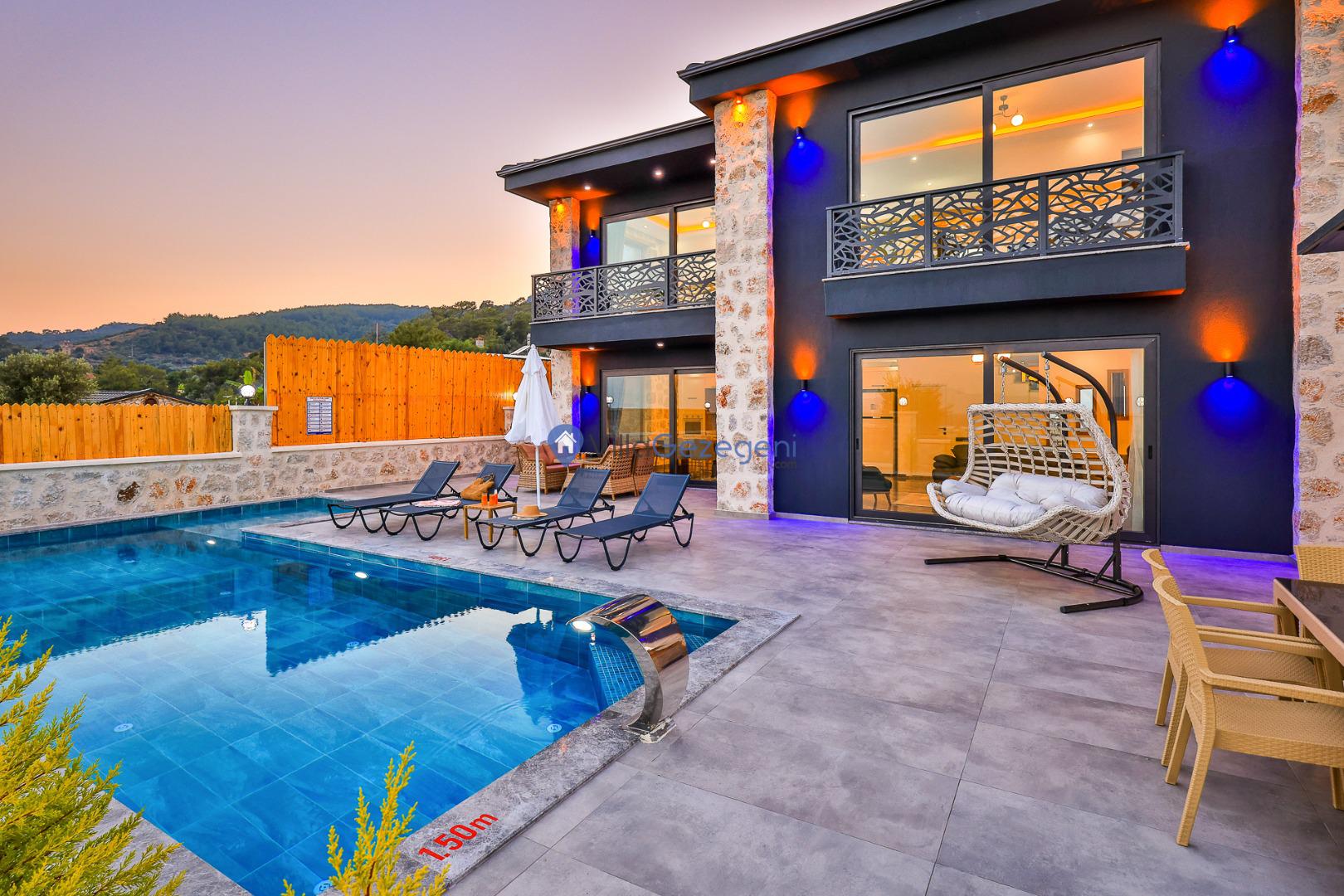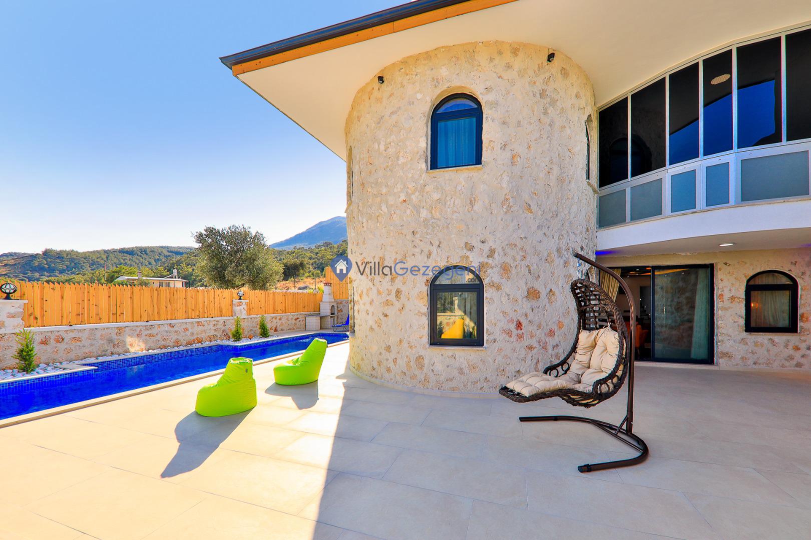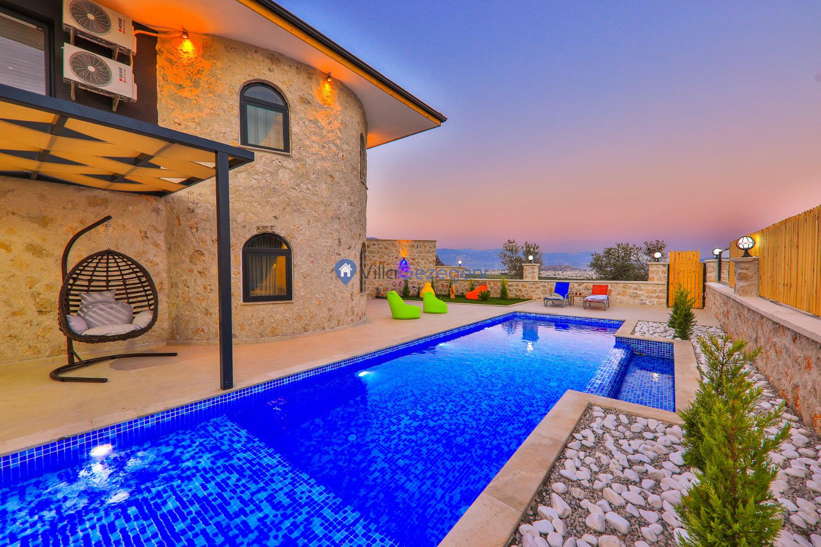 Villa Sandak 3, Kalkan Karadere'de 4 kişilik, doğa içerisinde, jakuzili, salıncaklı, lüks tasarımlı, muhafazakar, balayı çiftlerine uygun kiralık villa.