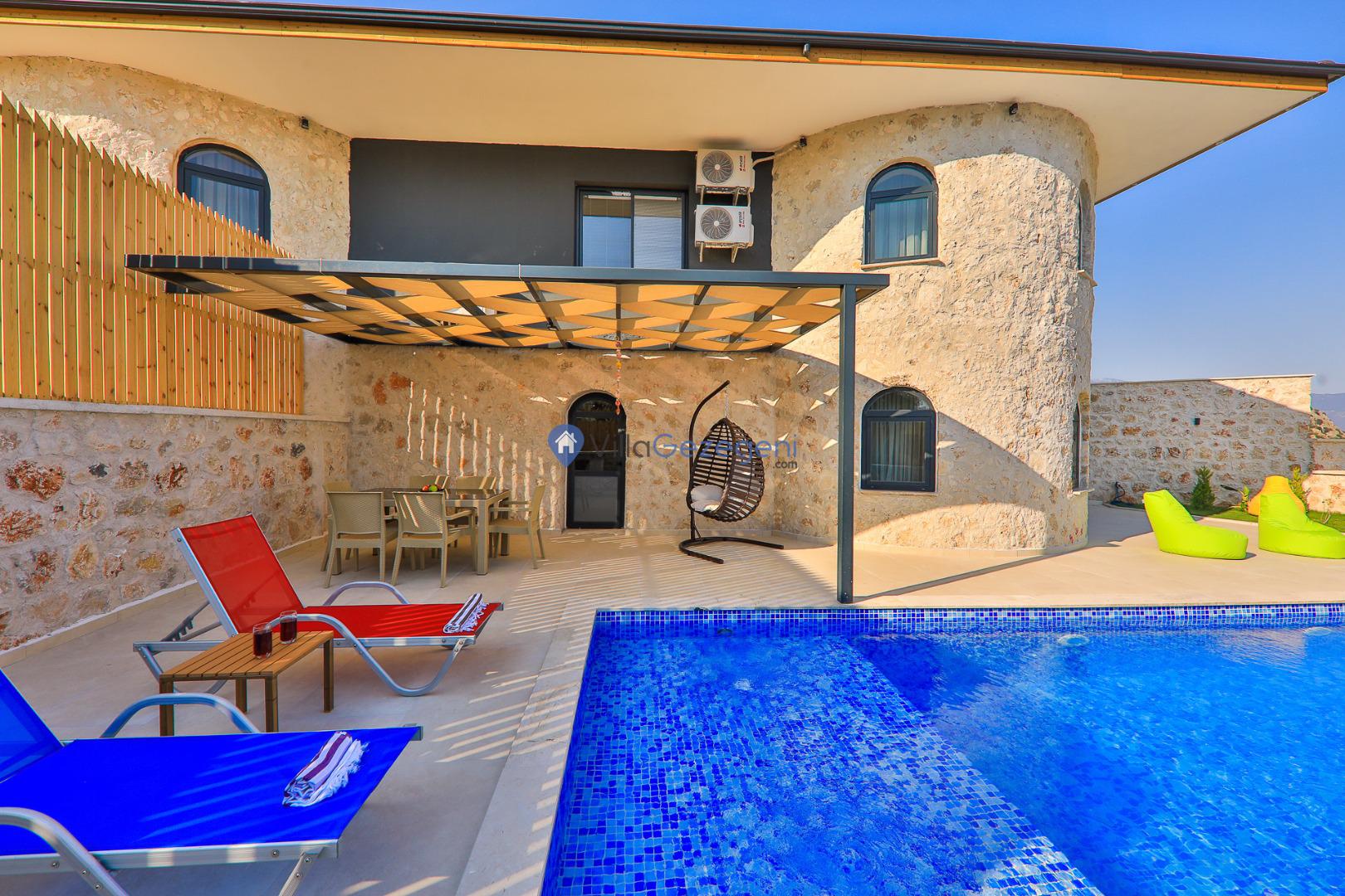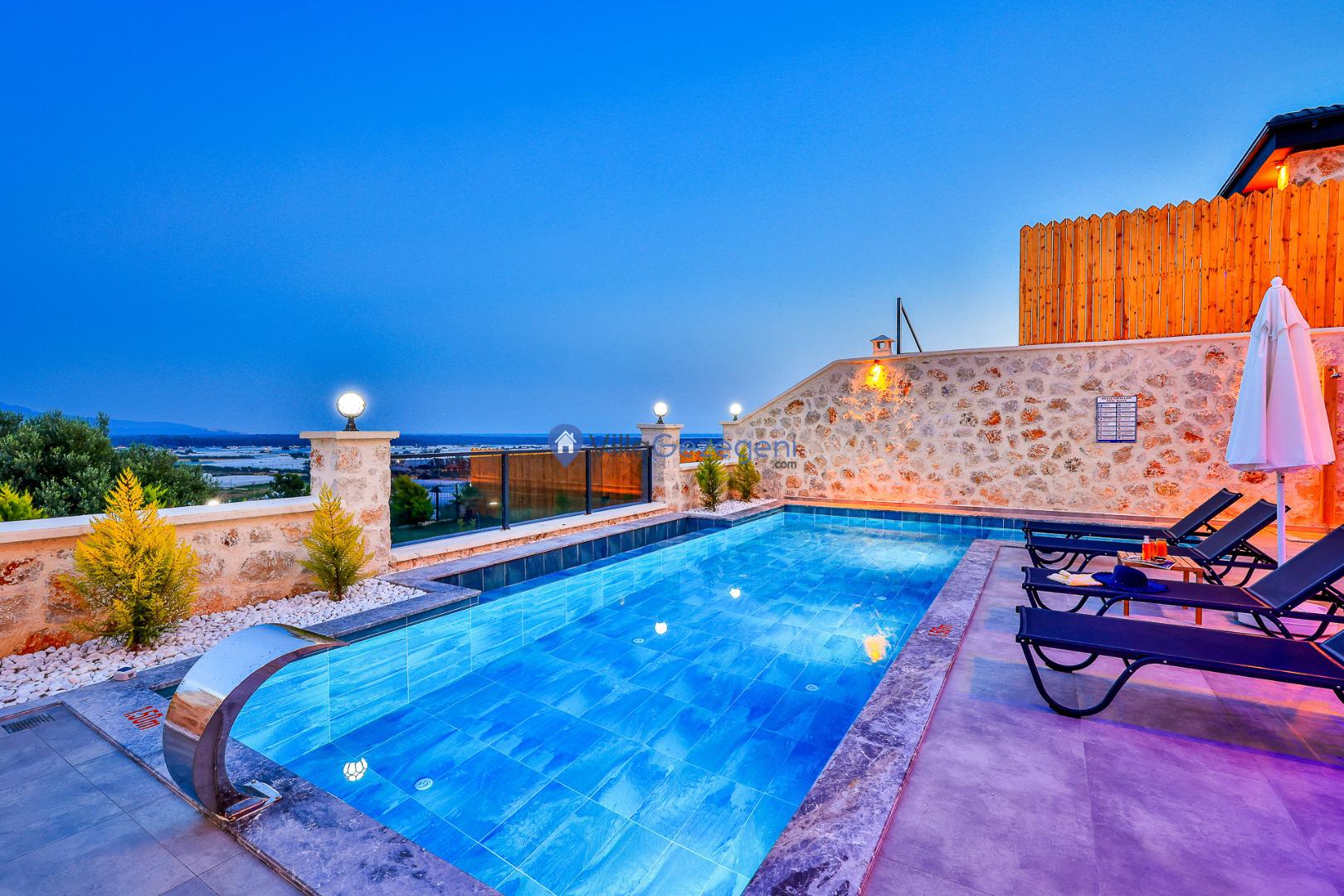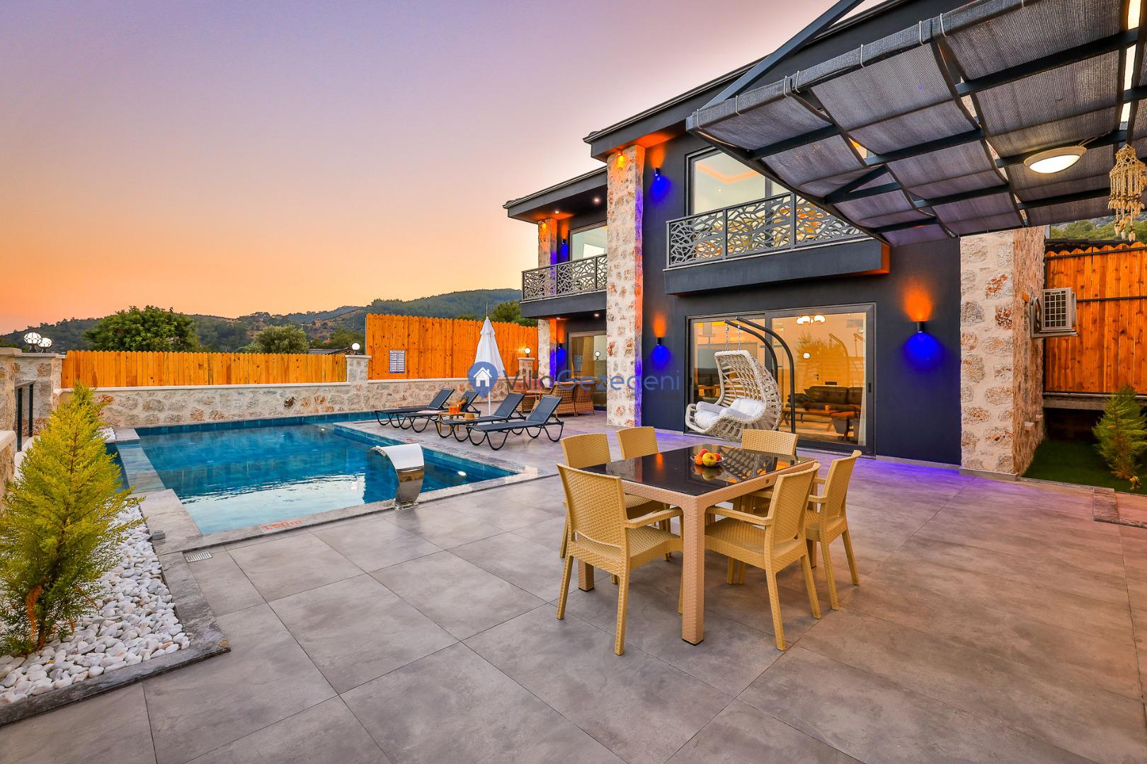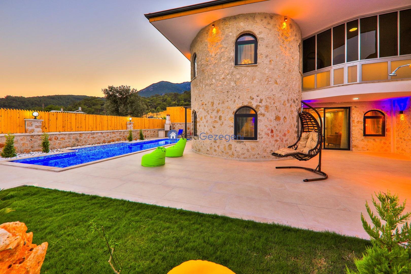 Villa Sandak 3, Kalkan Karadere'de 4 kişilik, doğa içerisinde, jakuzili, salıncaklı, lüks tasarımlı, muhafazakar, balayı çiftlerine uygun kiralık villa.
