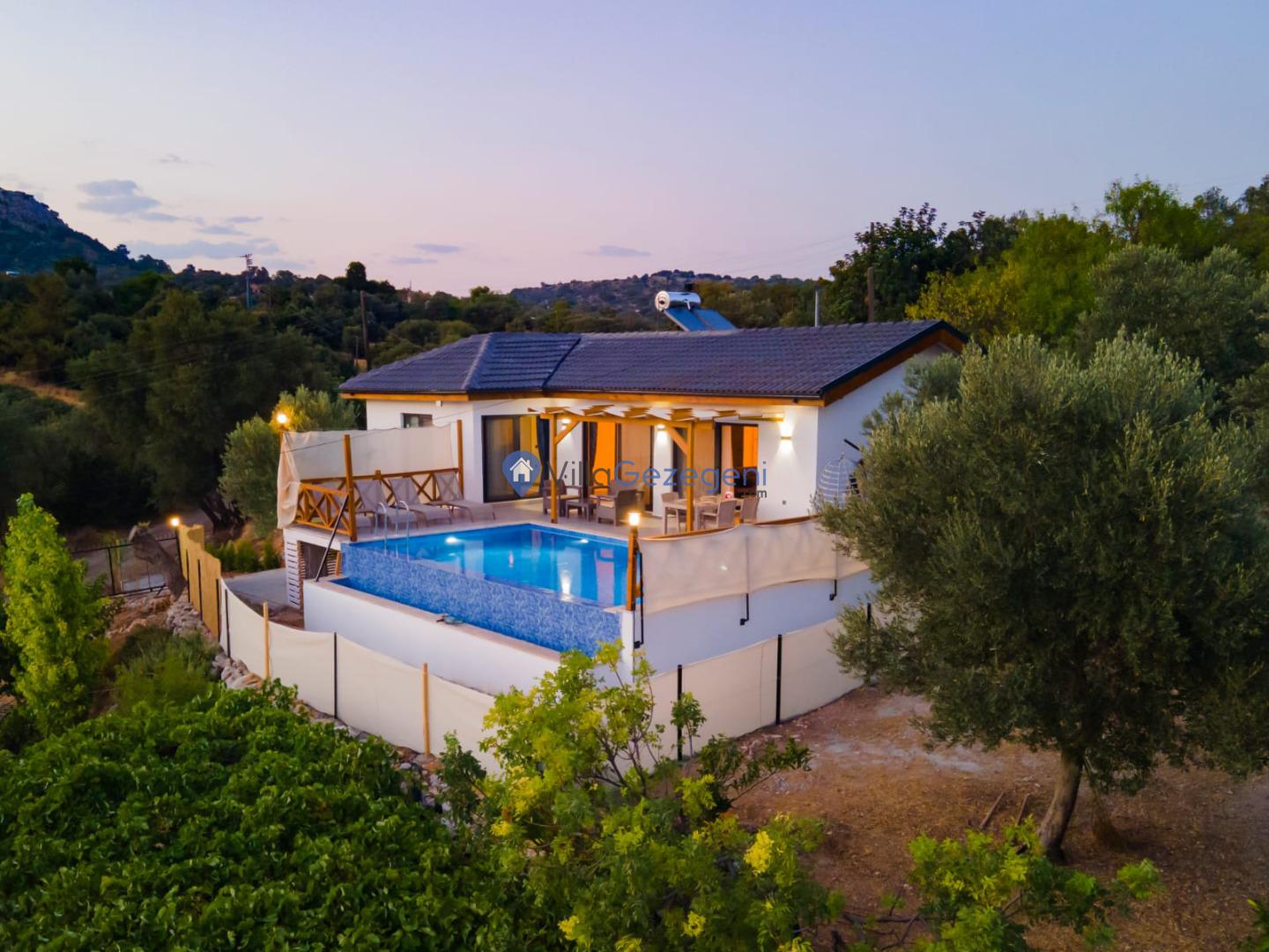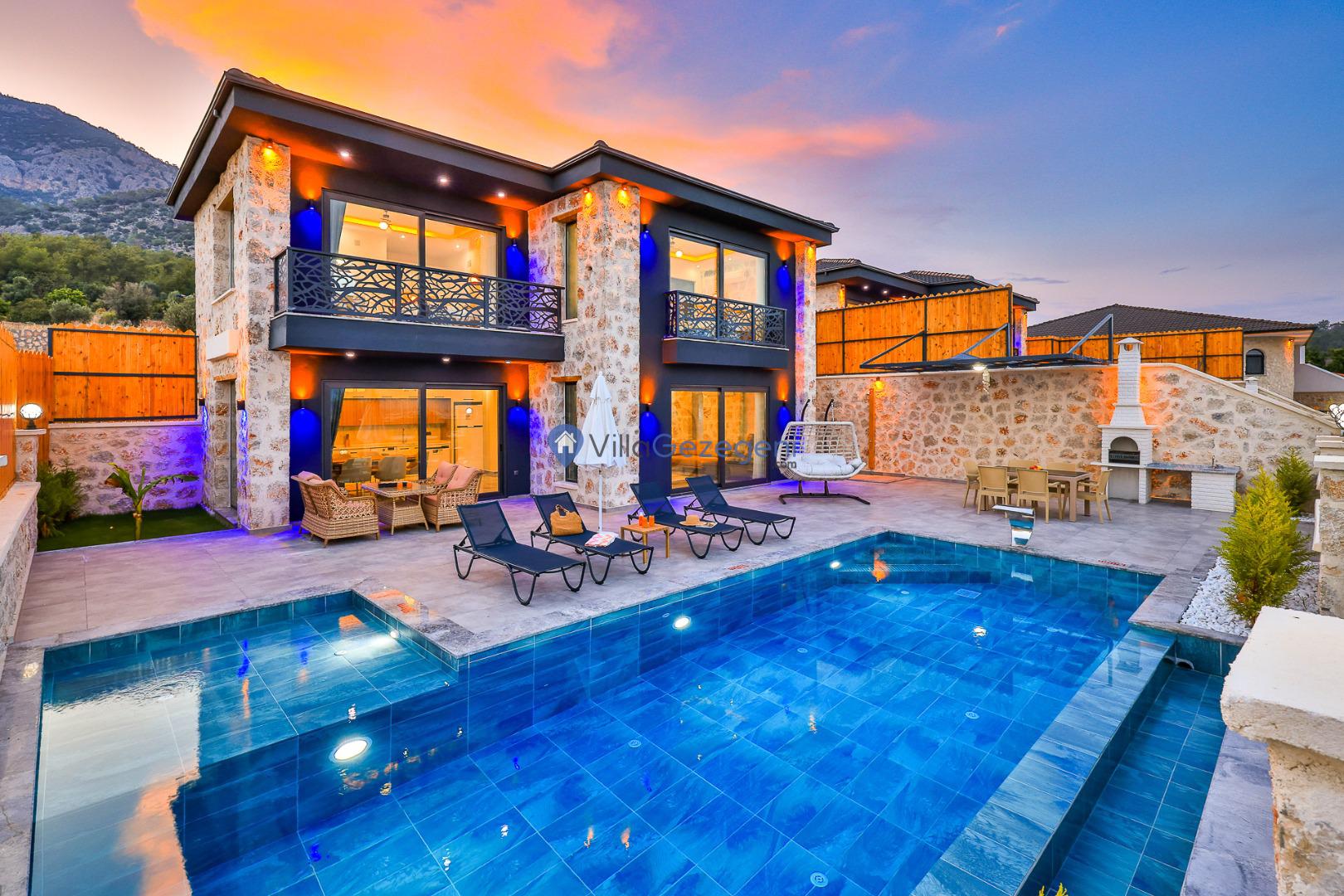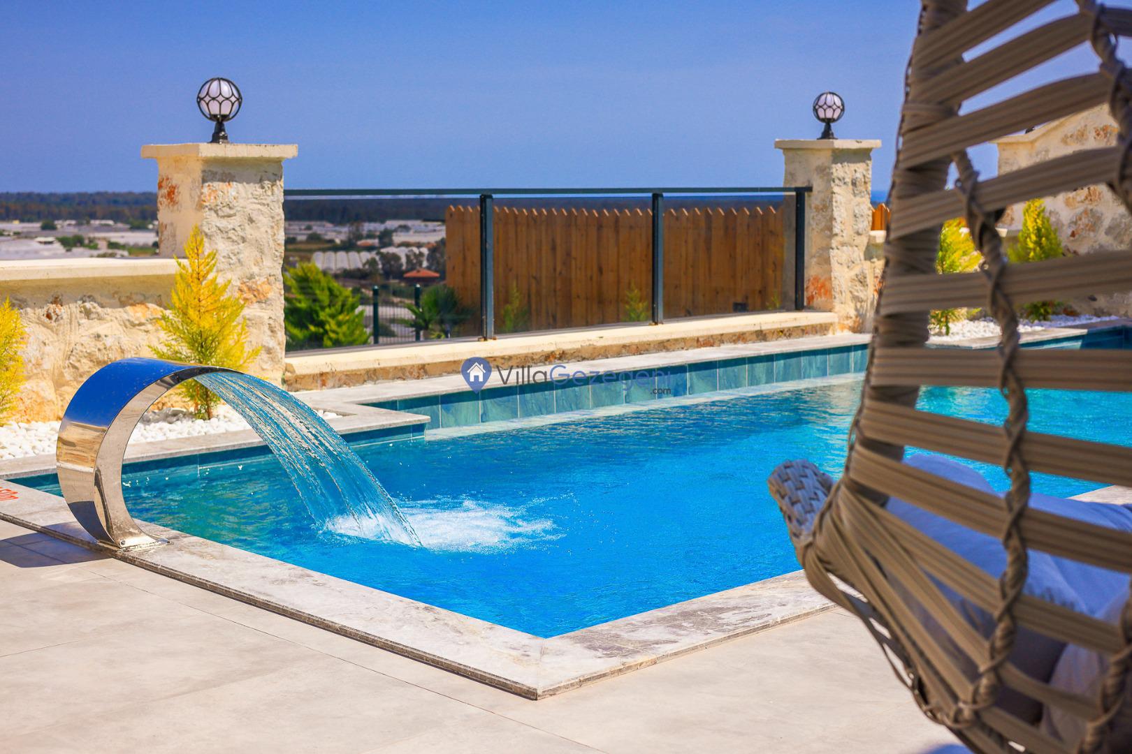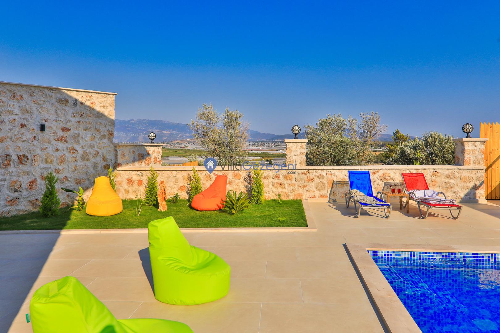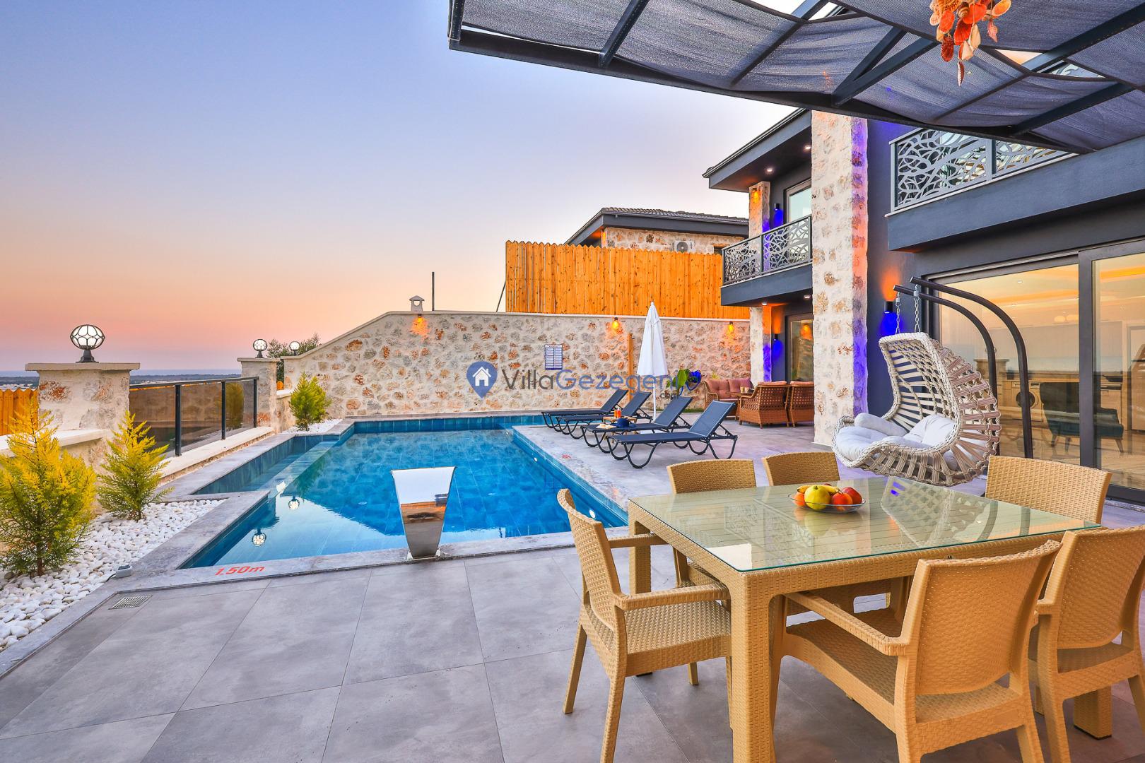 Villa Sandak 3, Kalkan Karadere'de 4 kişilik, doğa içerisinde, jakuzili, salıncaklı, lüks tasarımlı, muhafazakar, balayı çiftlerine uygun kiralık villa.