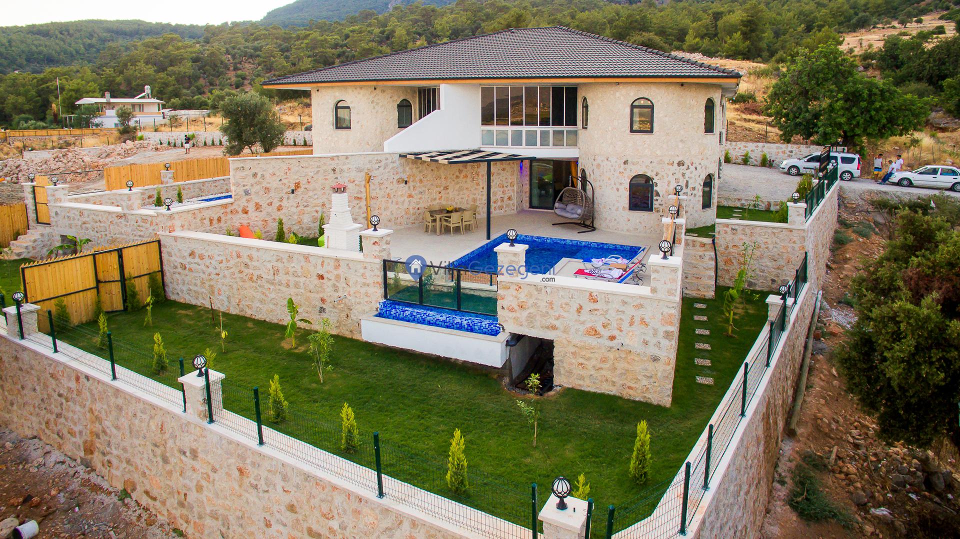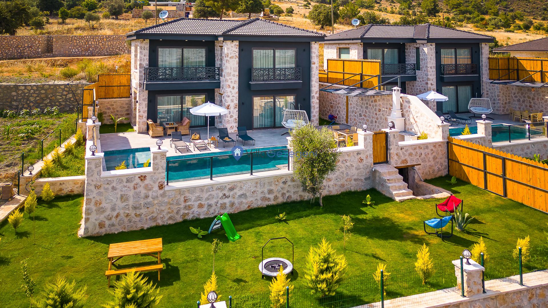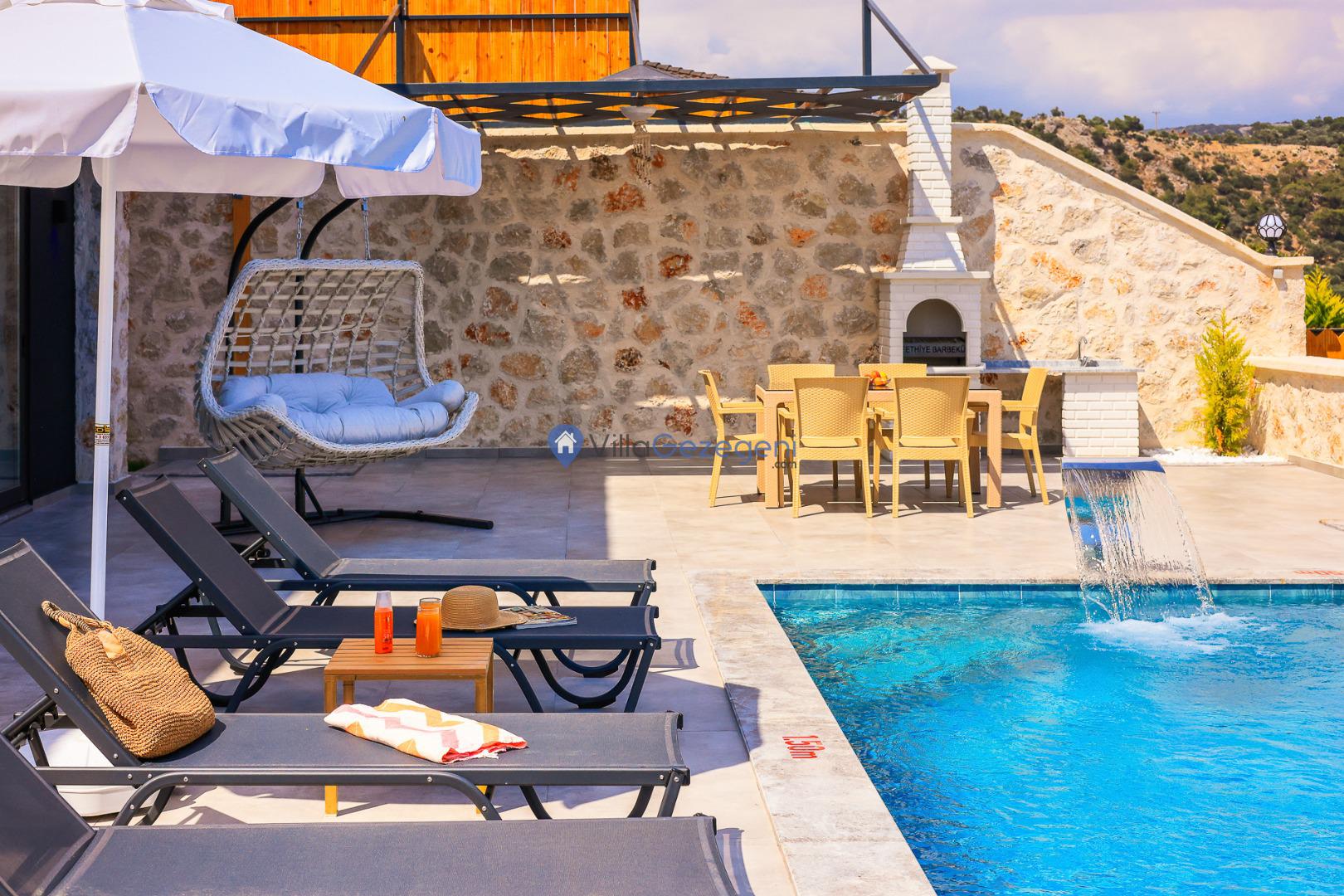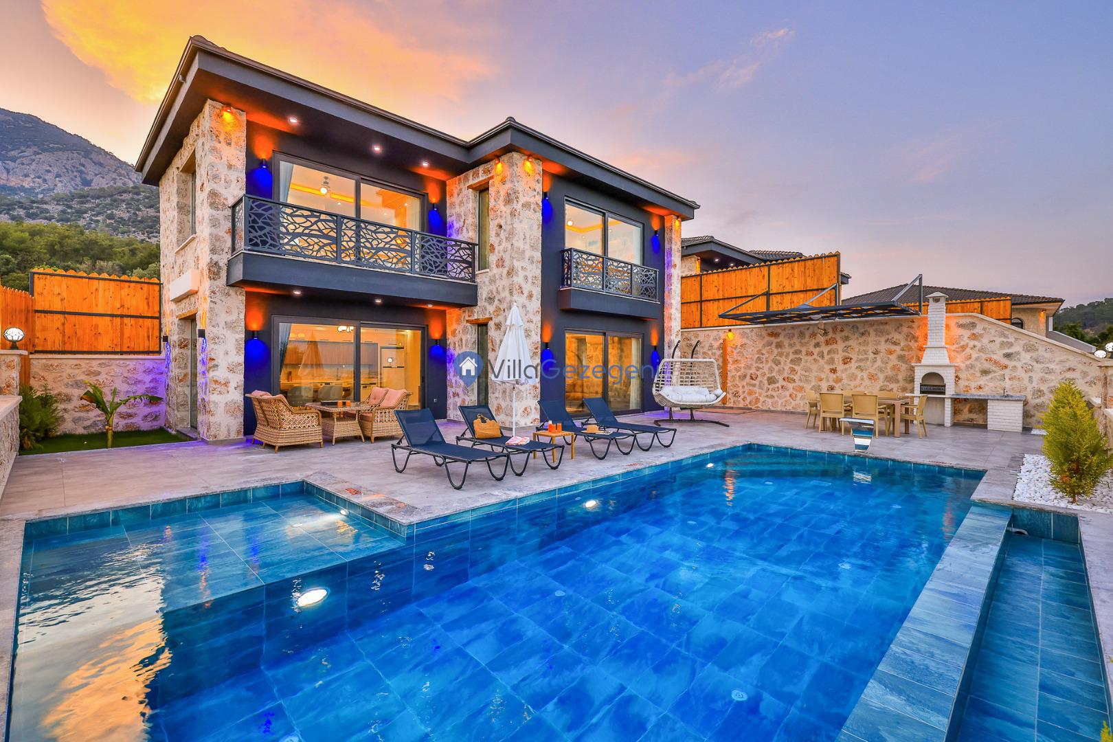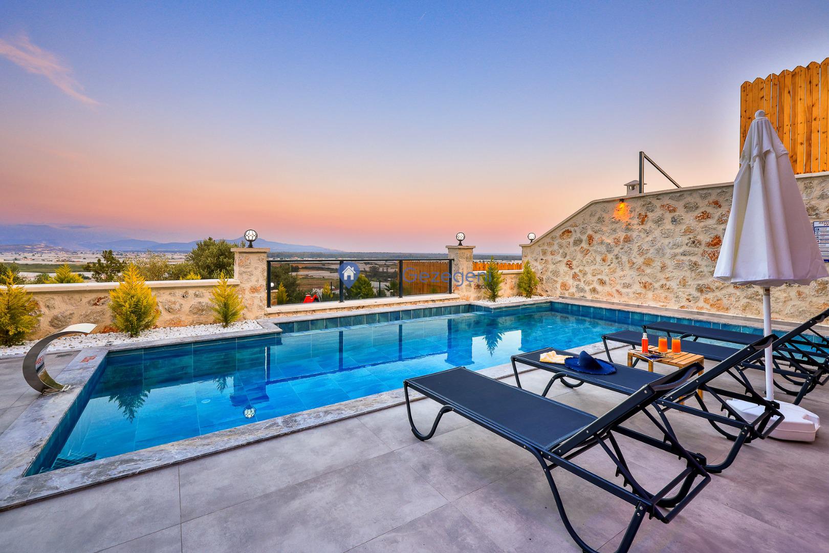 Villa Sandak 3, Kalkan Karadere'de 4 kişilik, doğa içerisinde, jakuzili, salıncaklı, lüks tasarımlı, muhafazakar, balayı çiftlerine uygun kiralık villa.