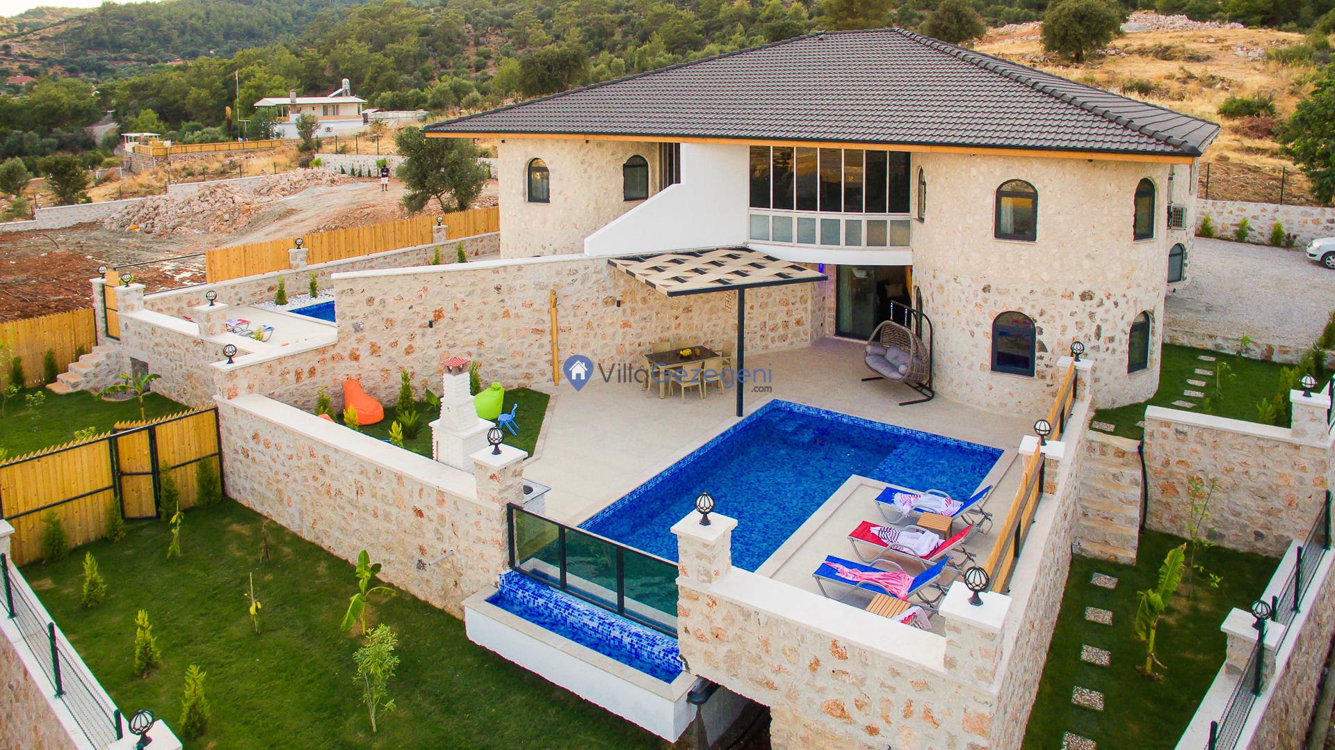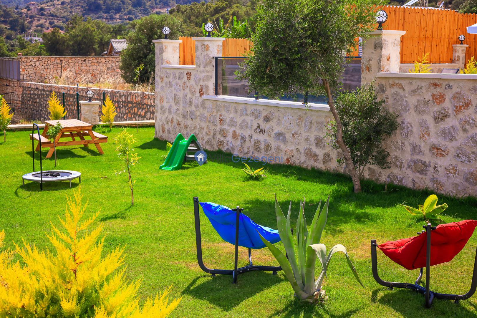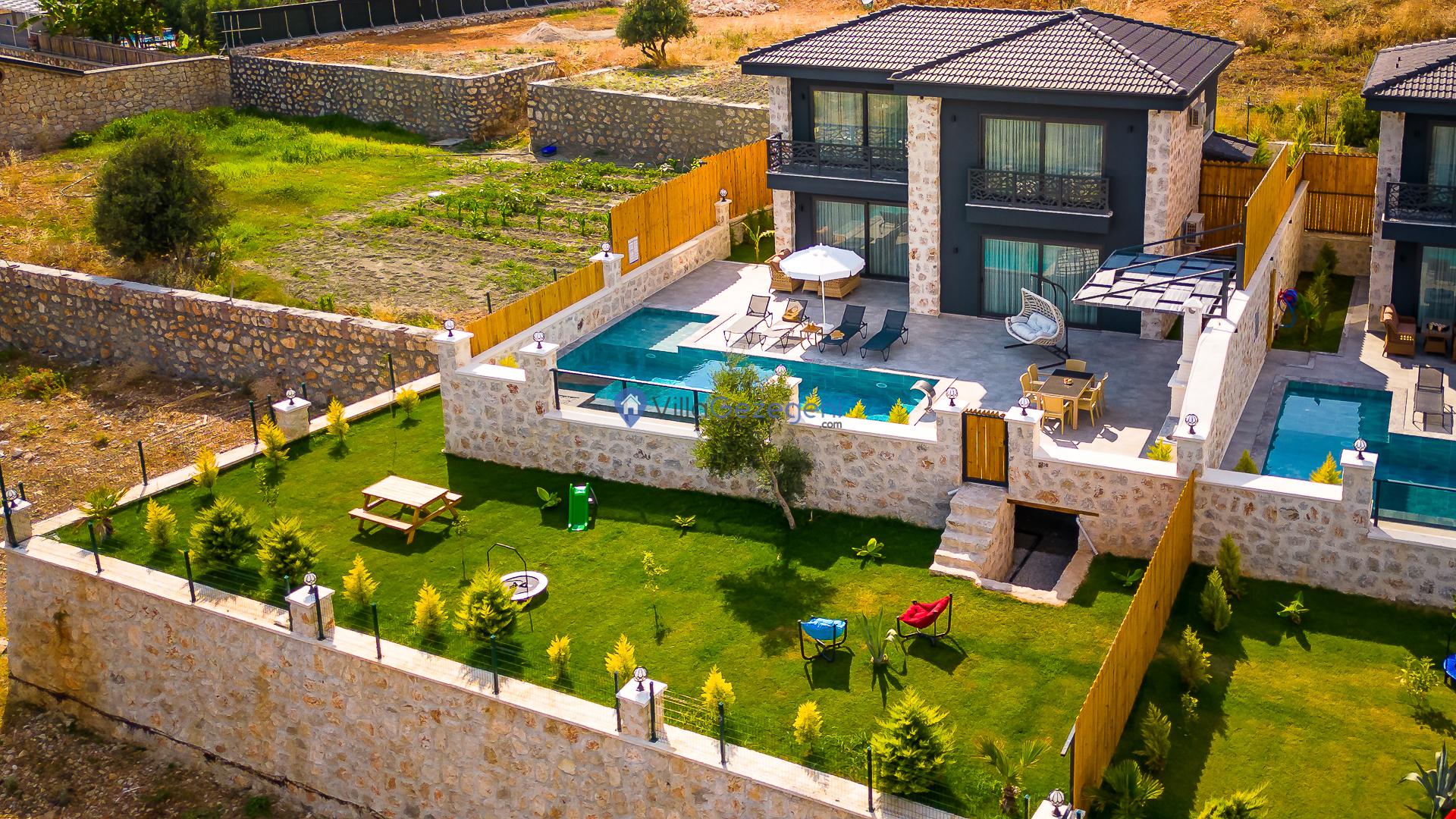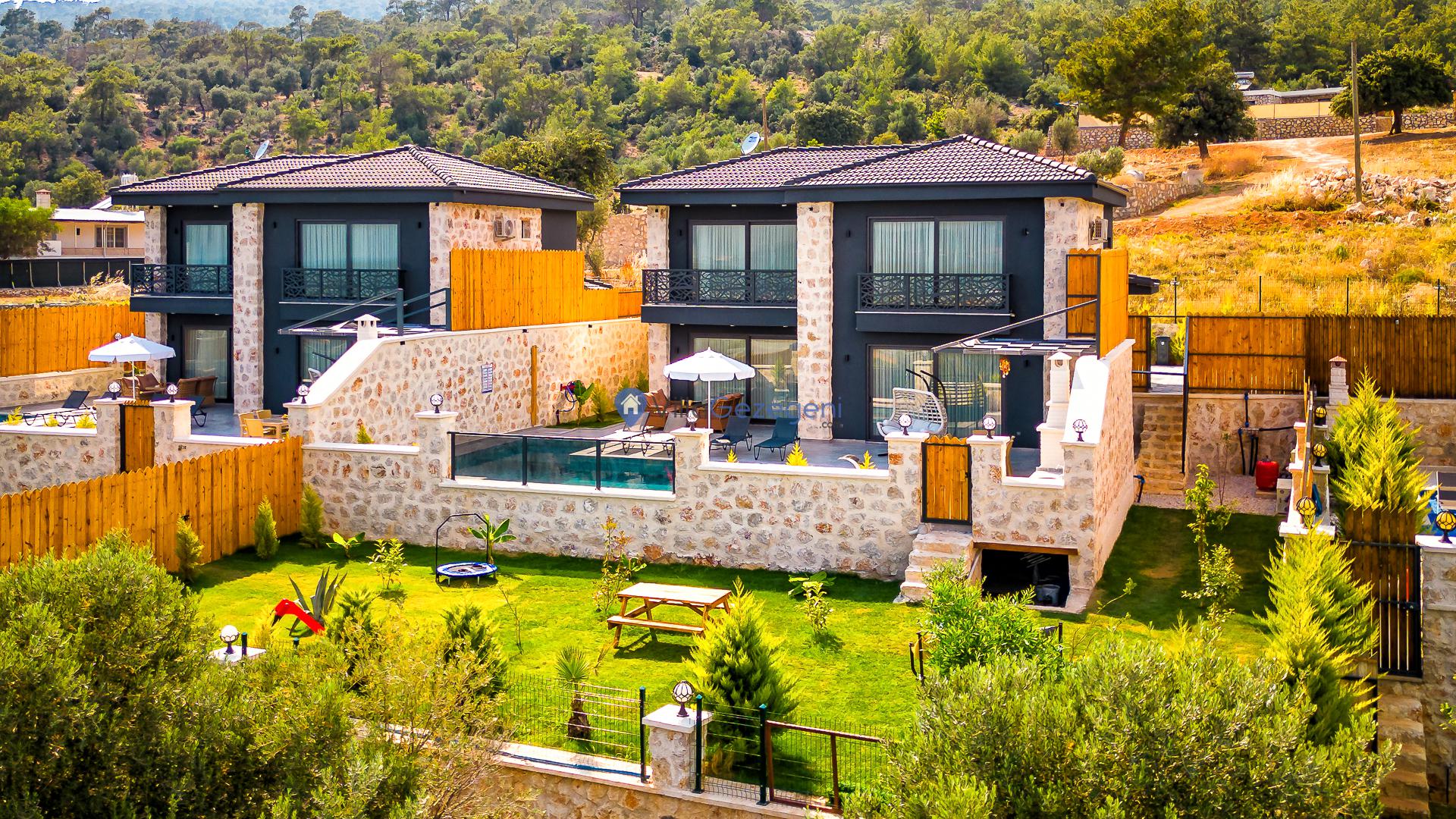 Villa Sandak 3, Kalkan Karadere'de 4 kişilik, doğa içerisinde, jakuzili, salıncaklı, lüks tasarımlı, muhafazakar, balayı çiftlerine uygun kiralık villa.