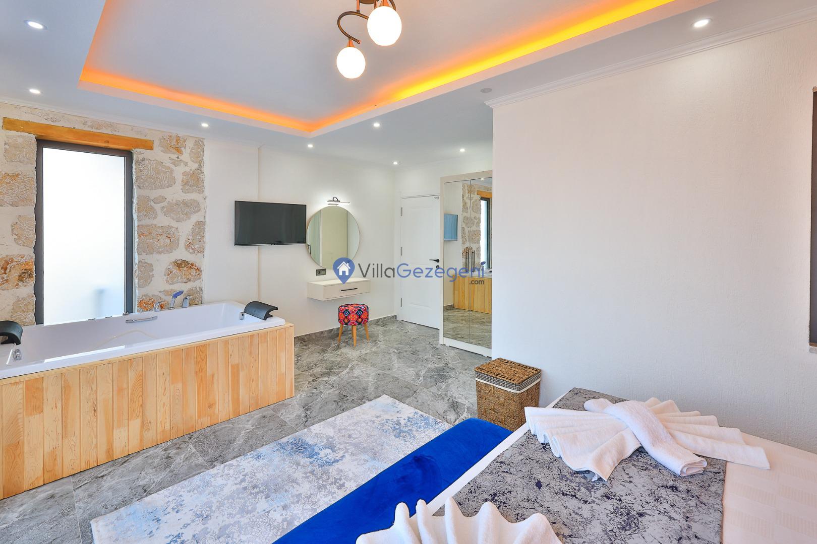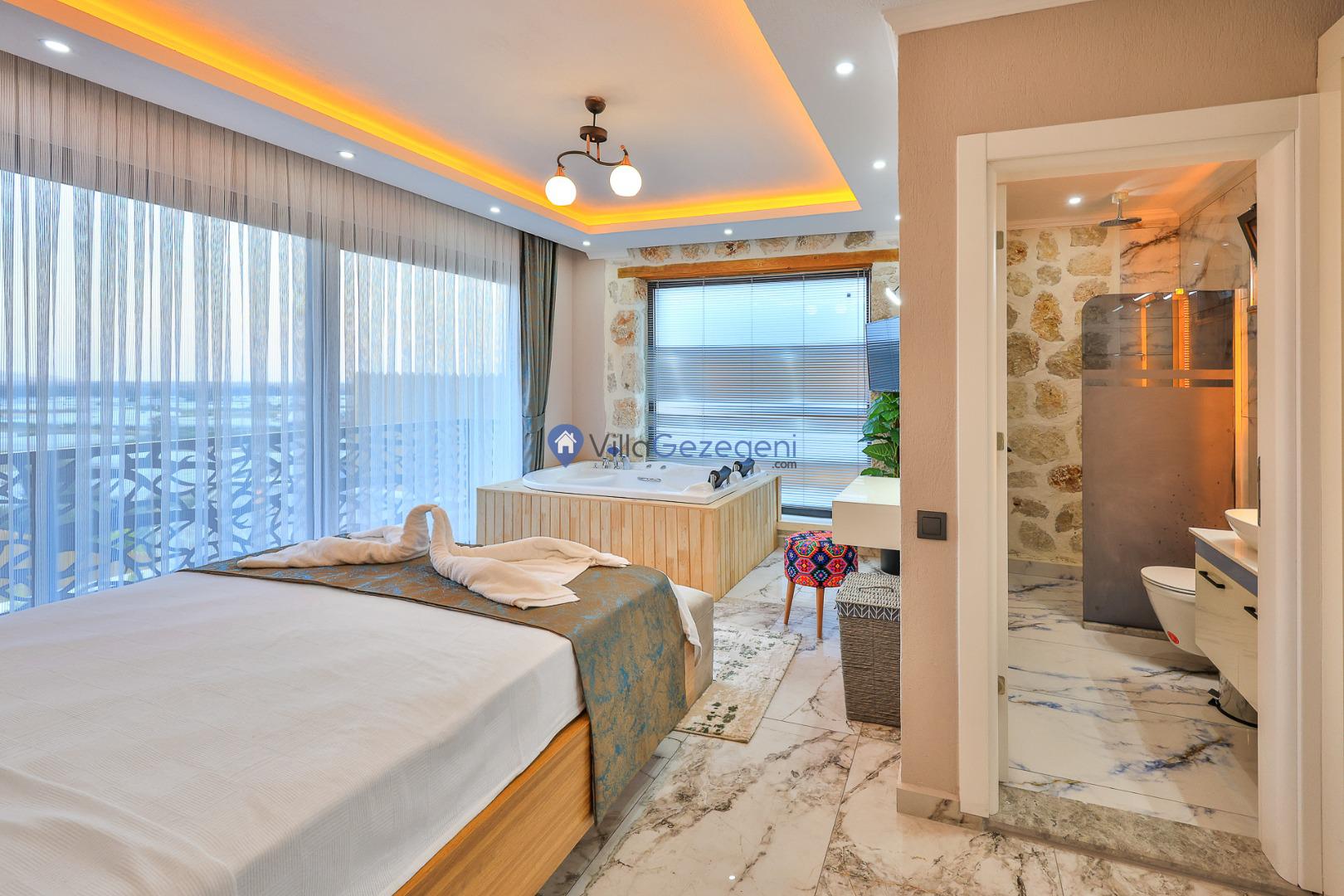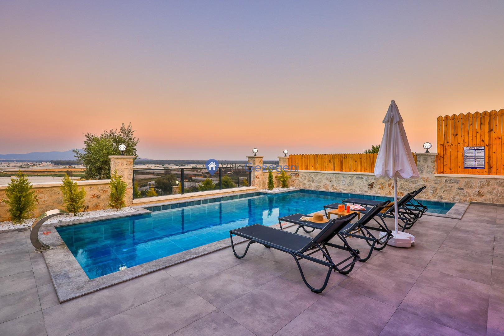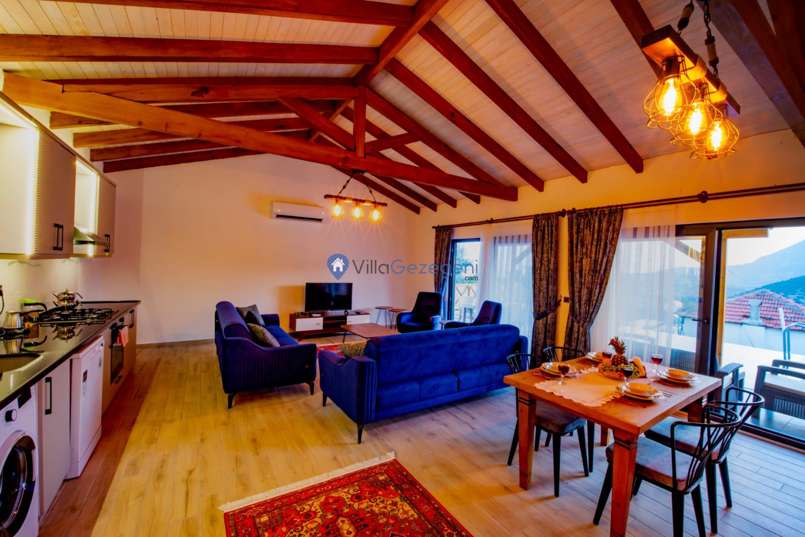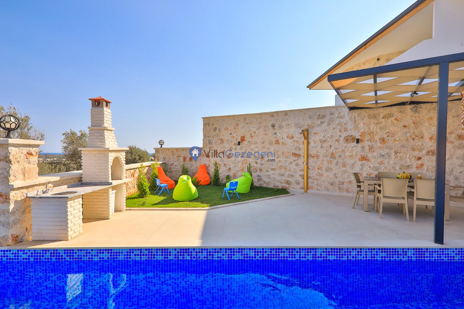 Villa Sandak 3, Kalkan Karadere'de 4 kişilik, doğa içerisinde, jakuzili, salıncaklı, lüks tasarımlı, muhafazakar, balayı çiftlerine uygun kiralık villa.