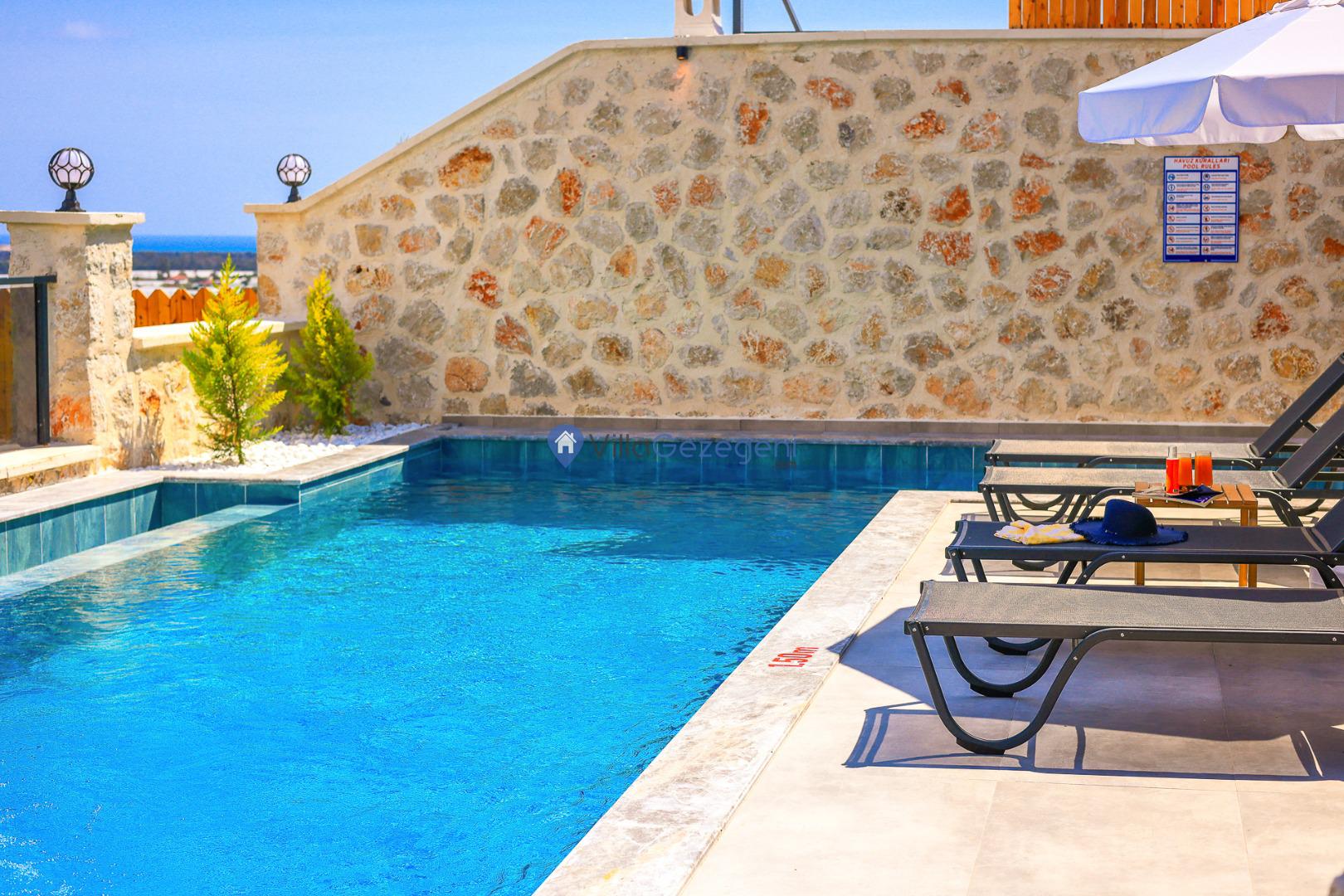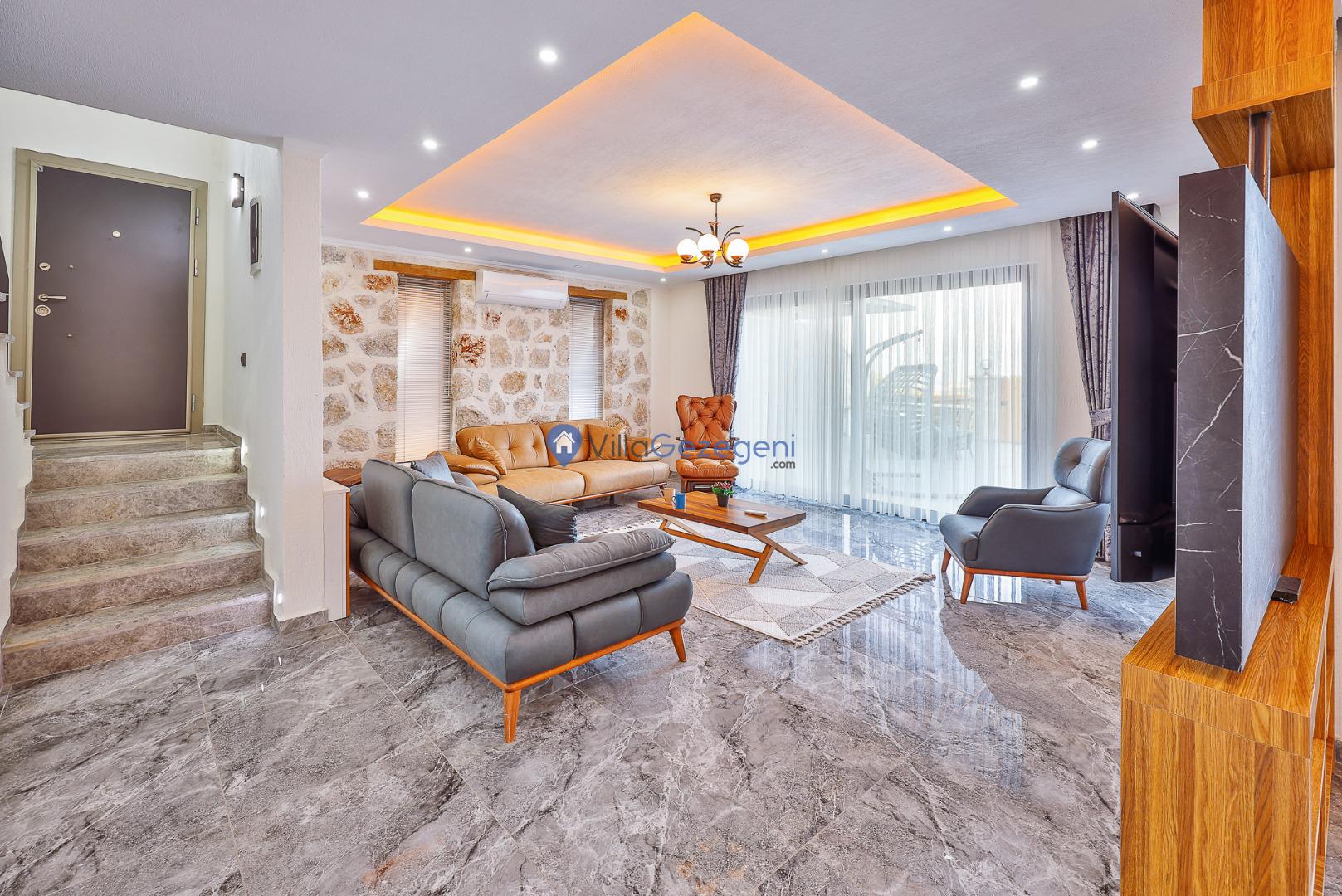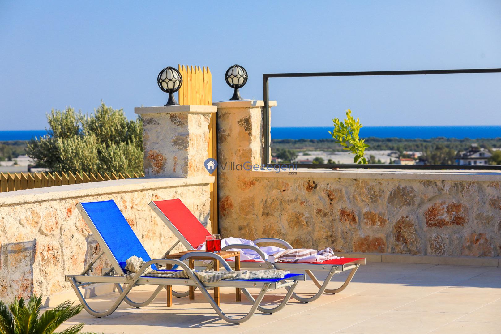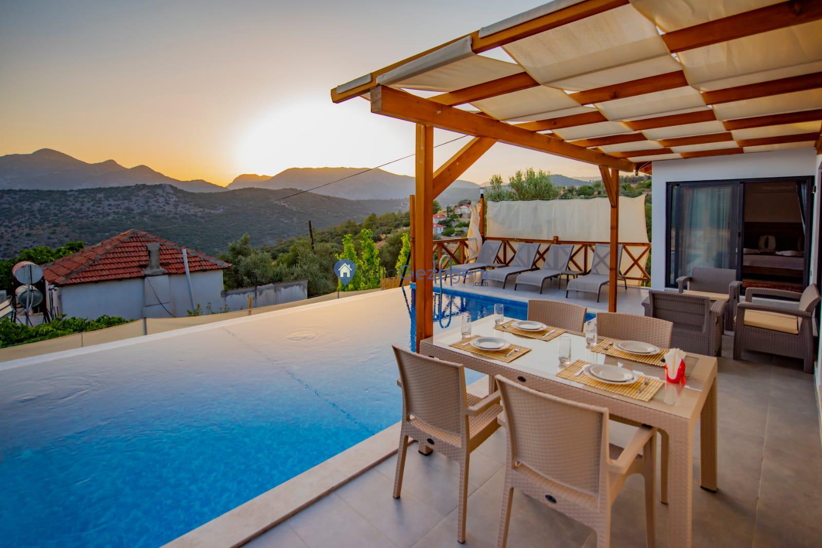 Kalkan Karadere' de bulunan, 3 yatak odalı, lüks tasarıma sahip, muhafazakar kiralık villa