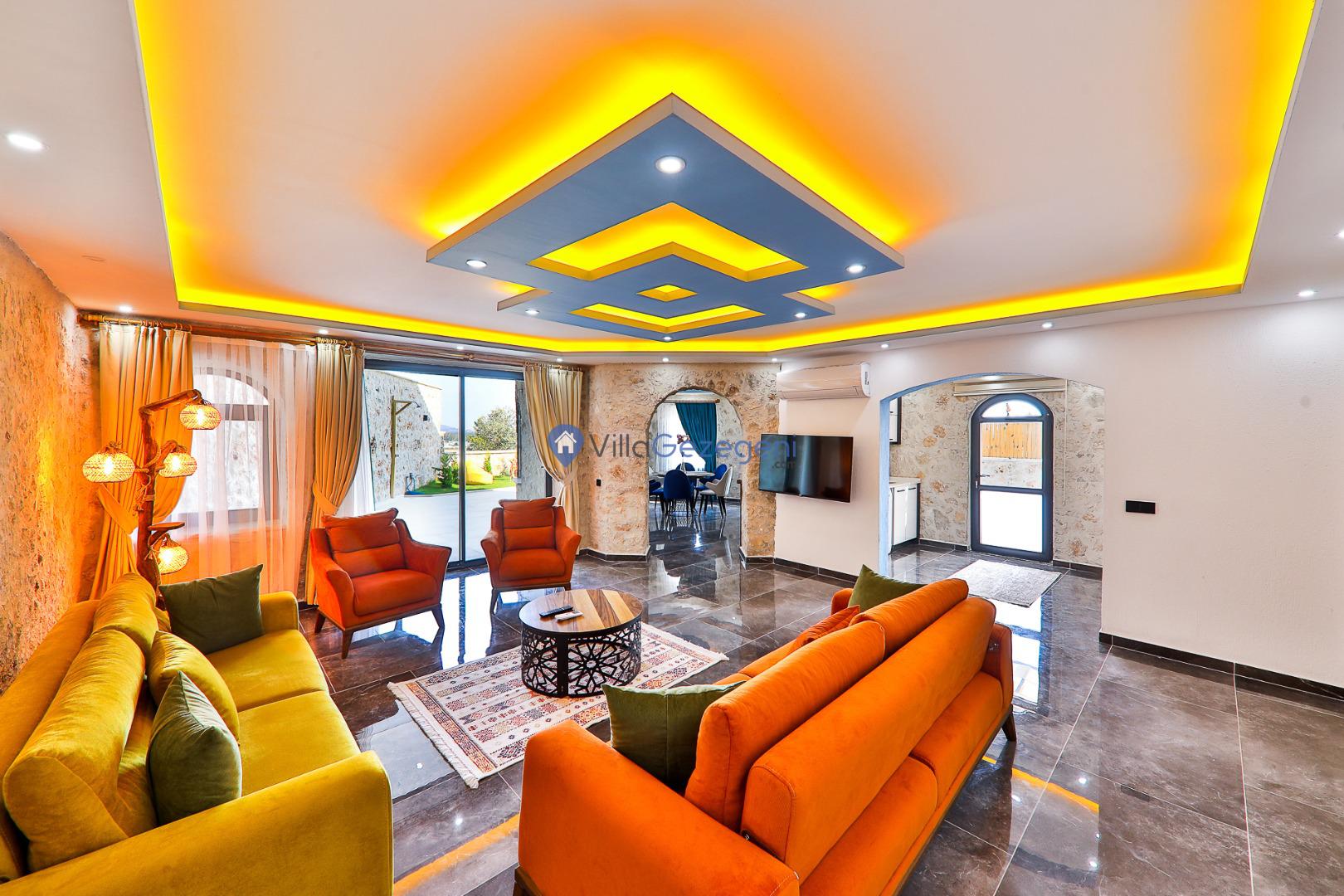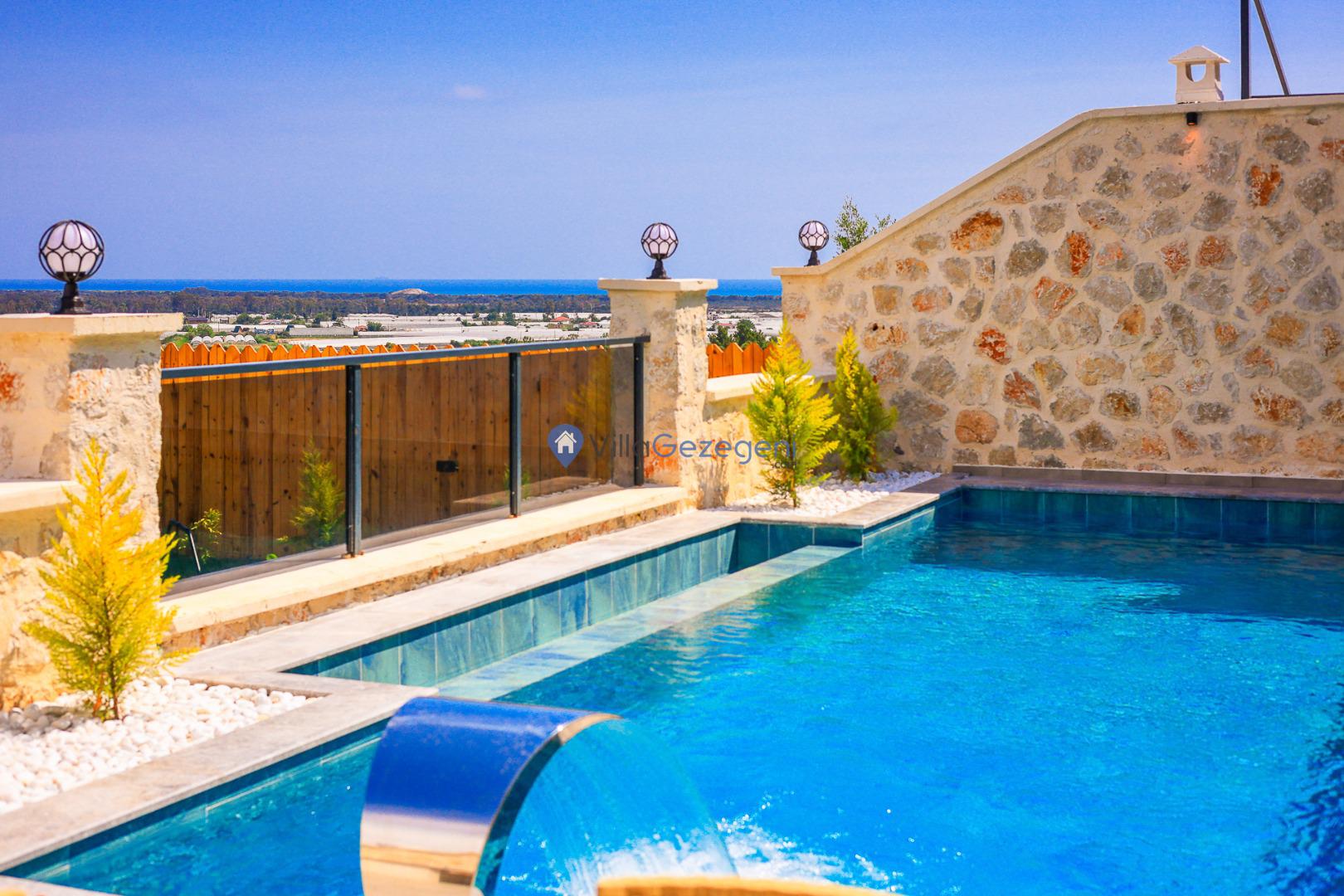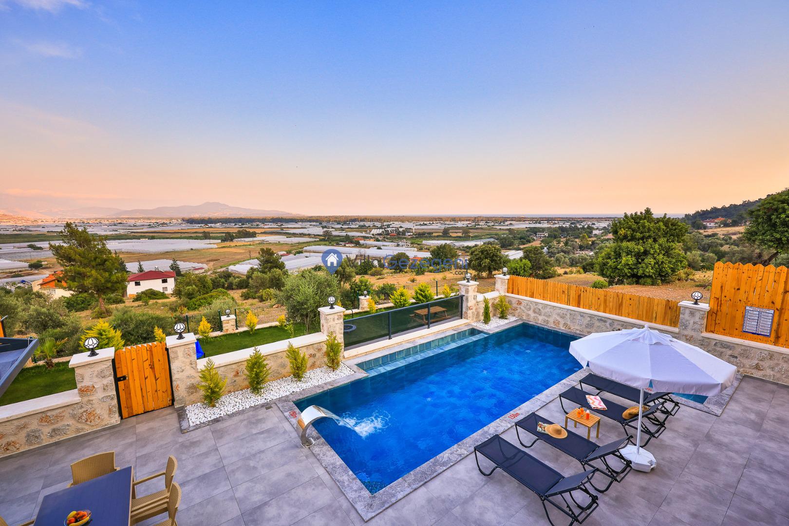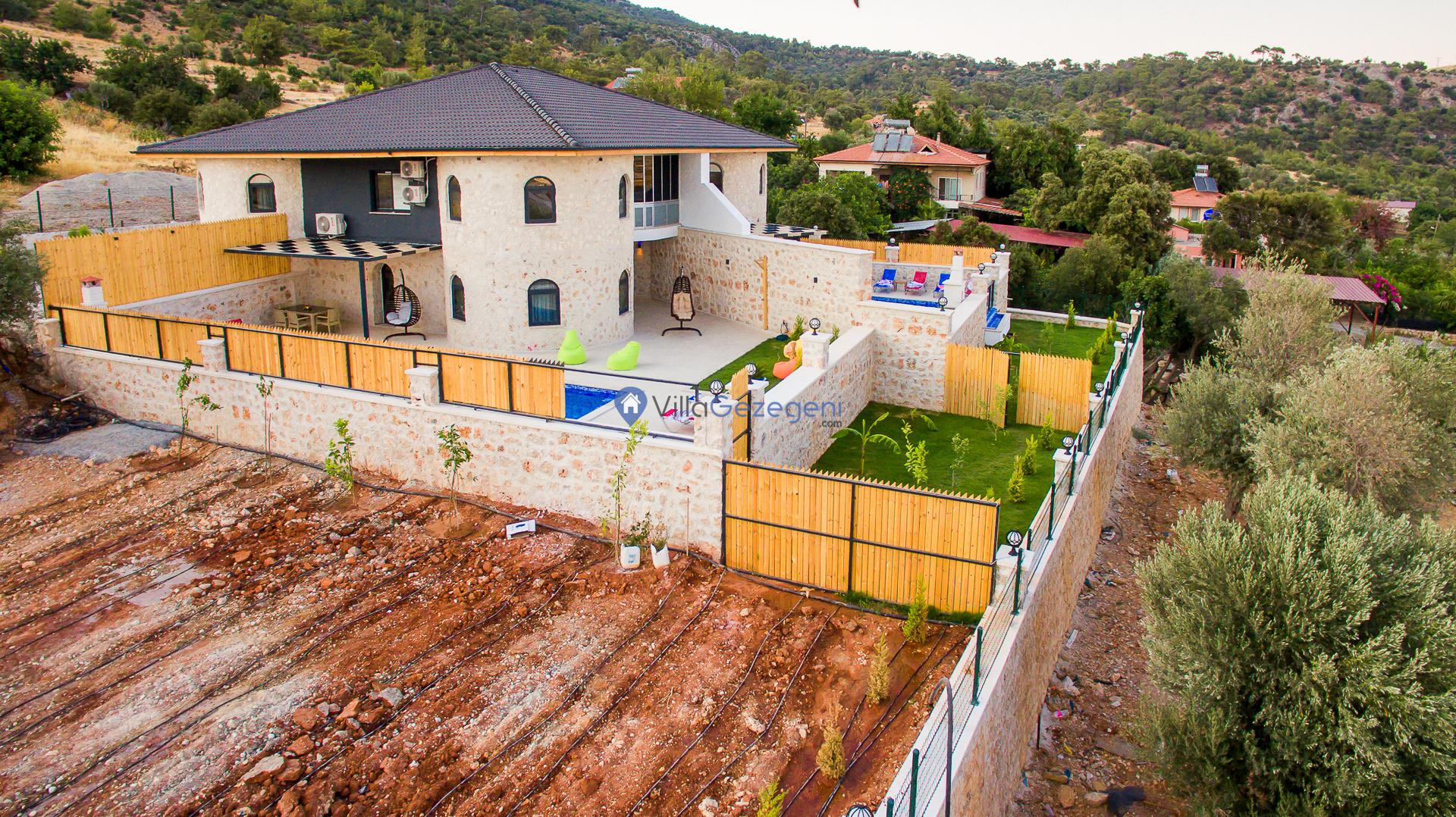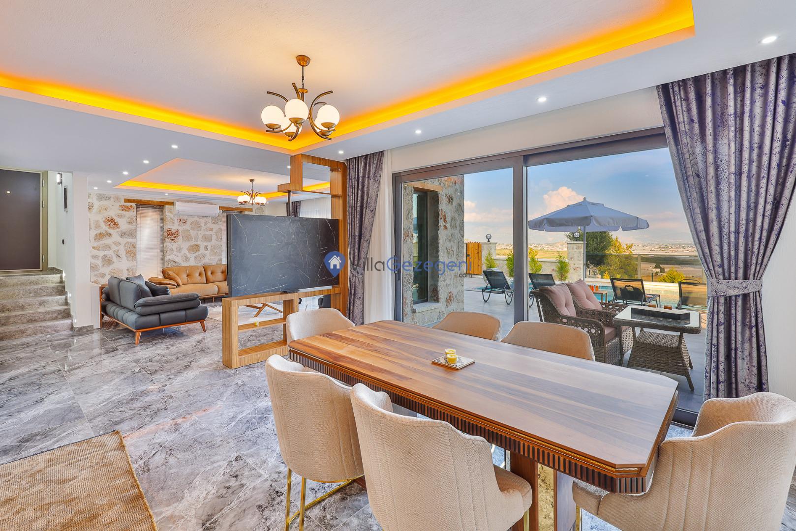 Kalkan Karadere' de bulunan, 3 yatak odalı, lüks tasarıma sahip, muhafazakar kiralık villa